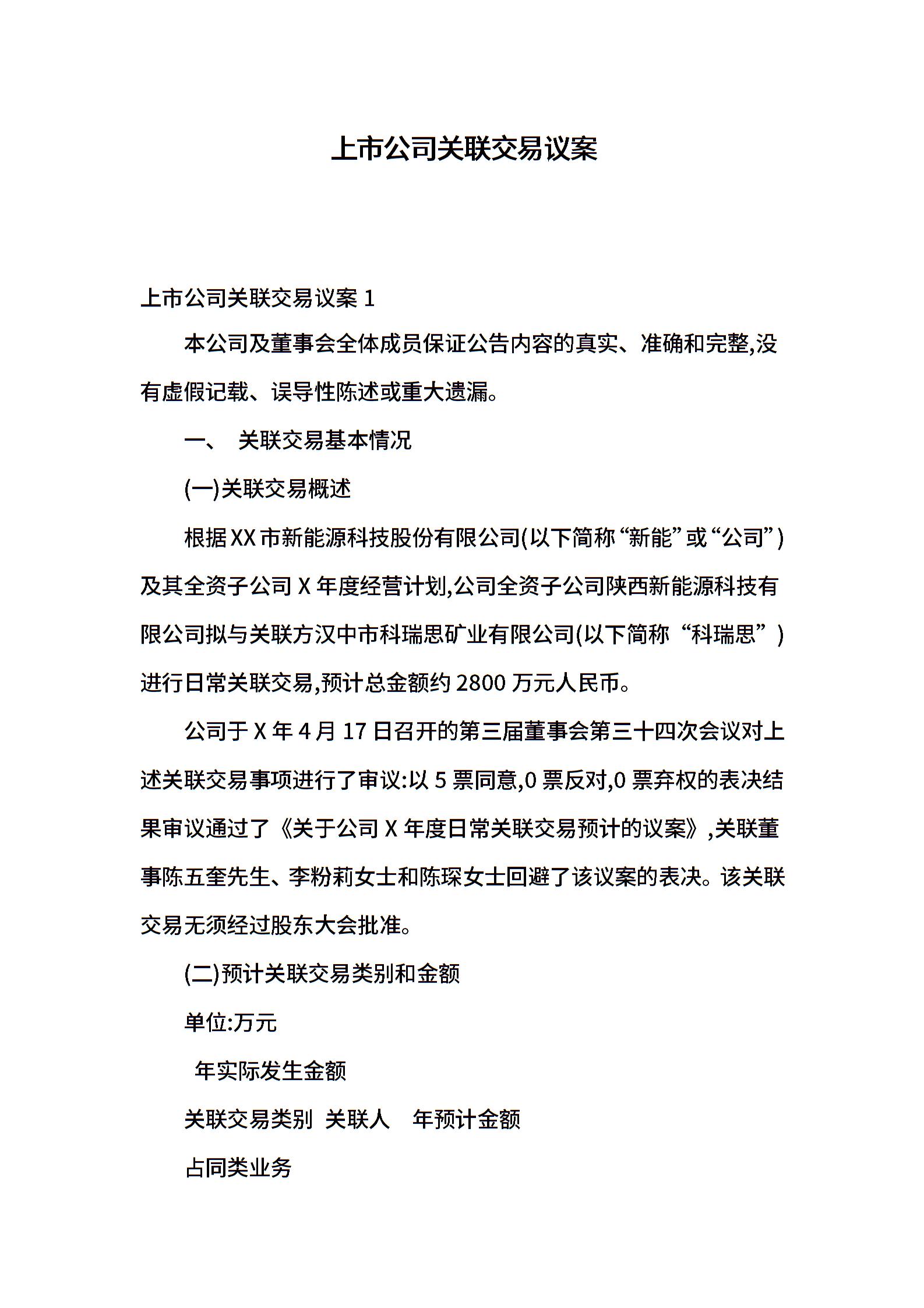 上市公司关联交易议案