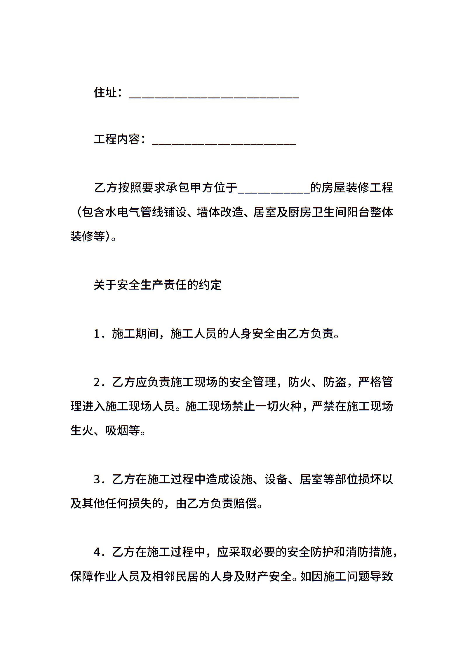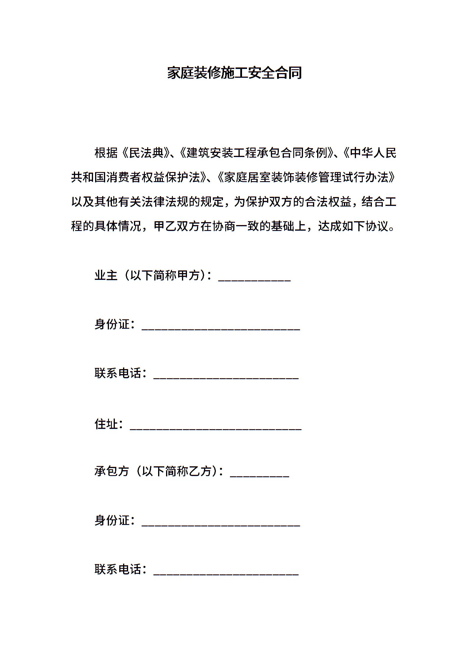 家庭装修施工安全合同
