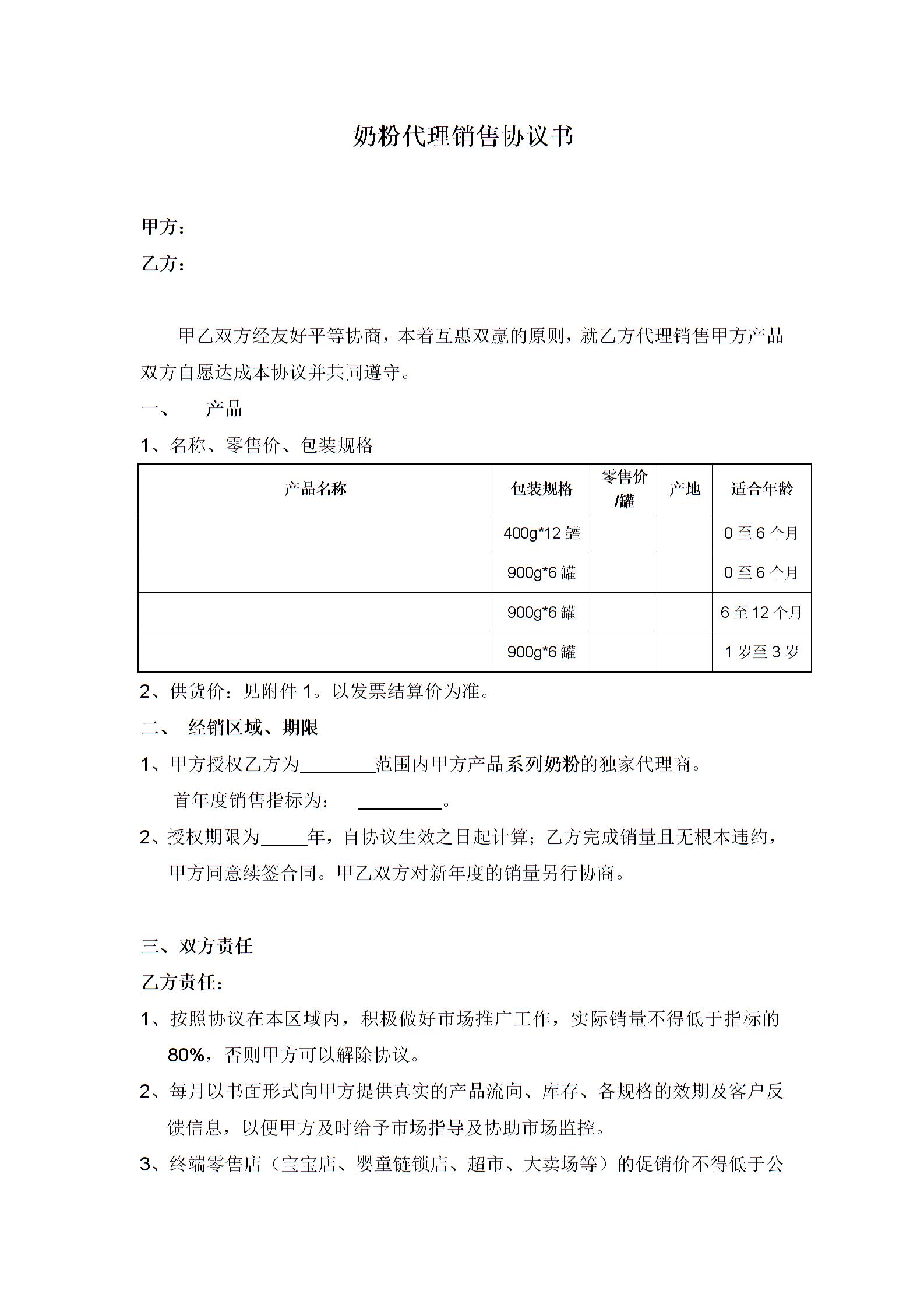 奶粉代理销售协议书.doc