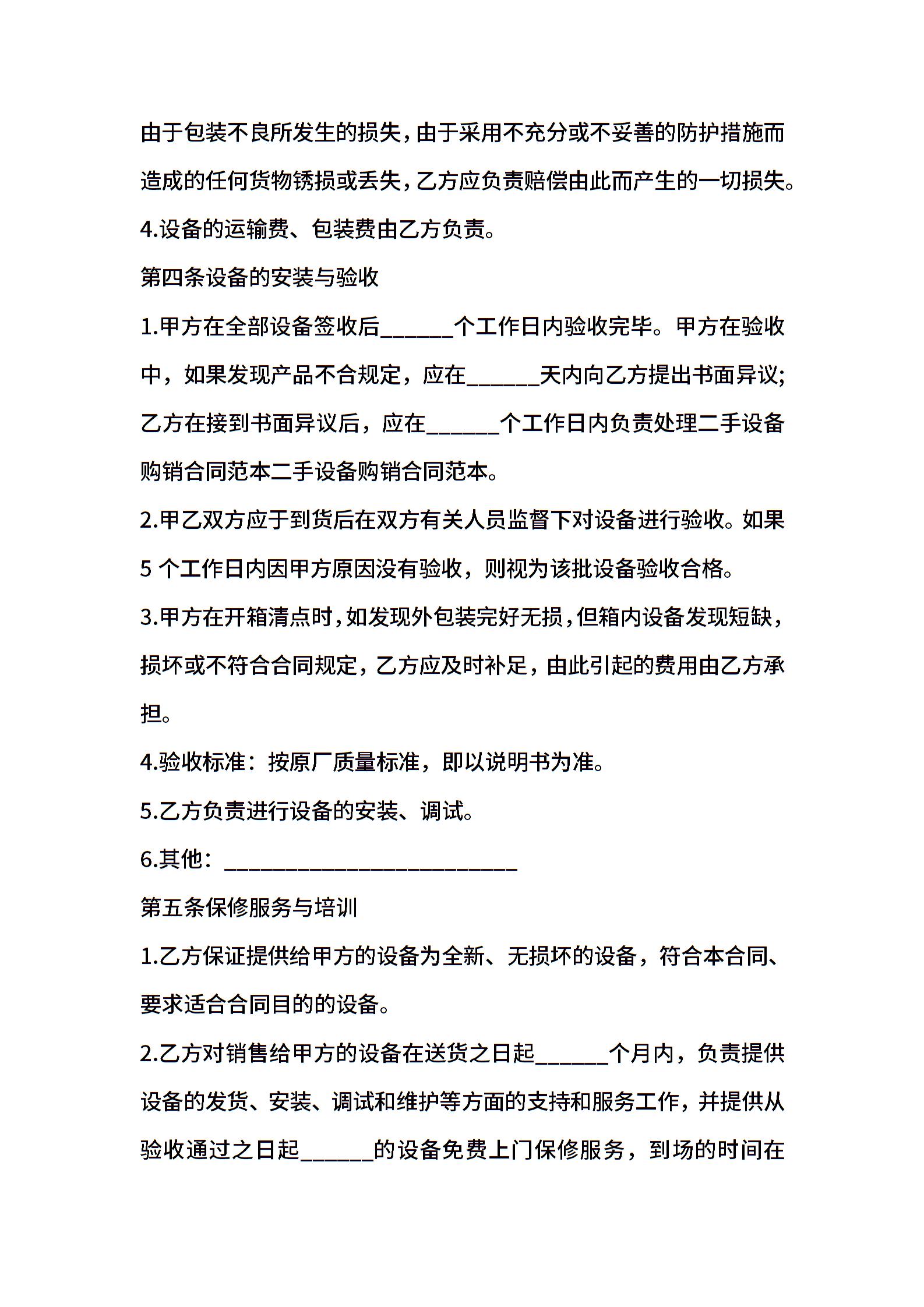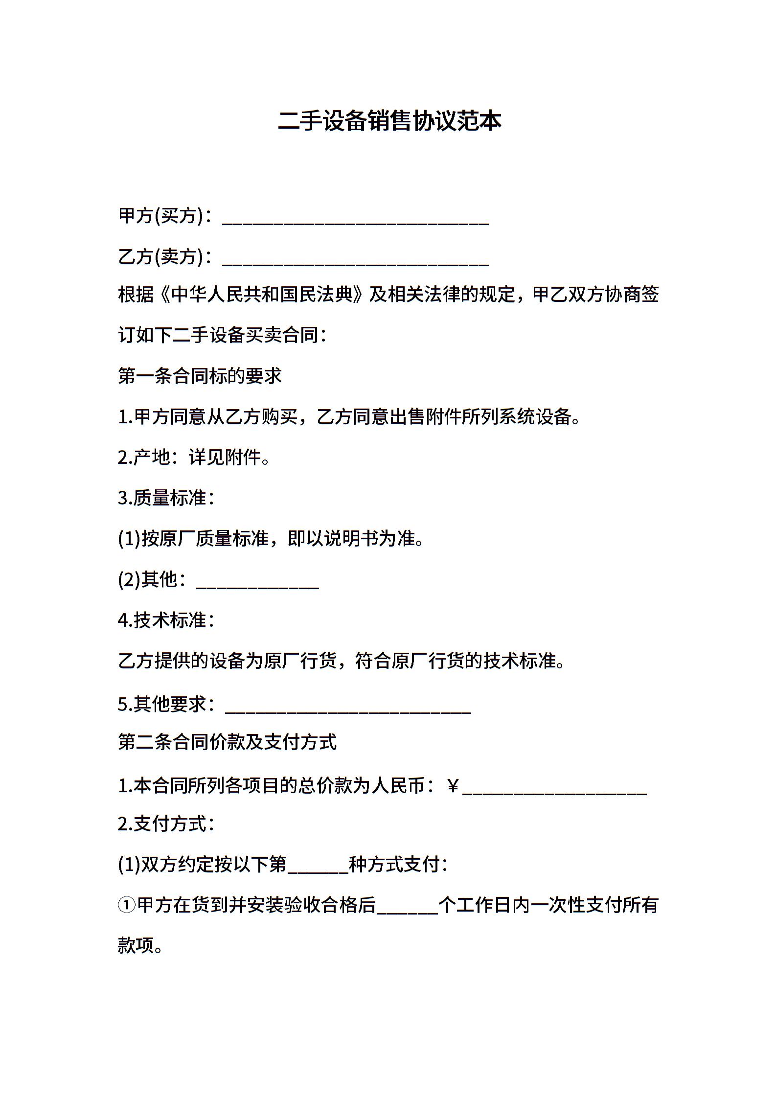 二手设备销售协议范本