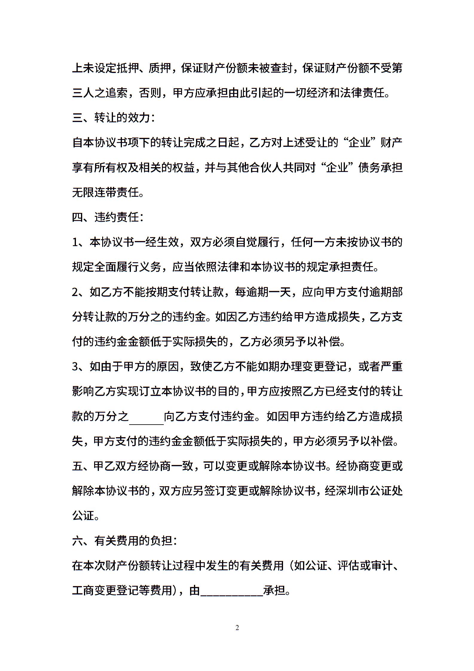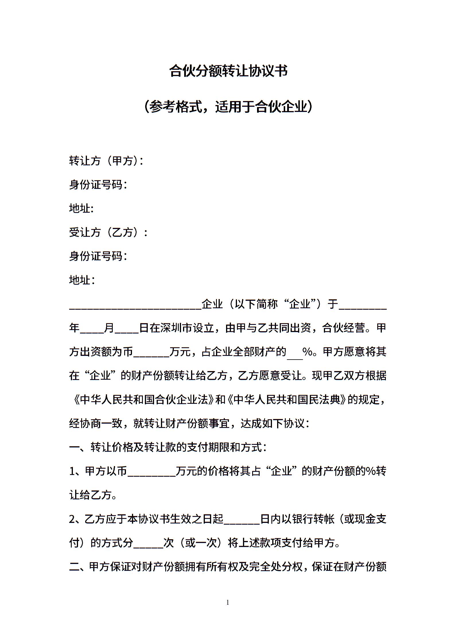 合伙分额转让协议书