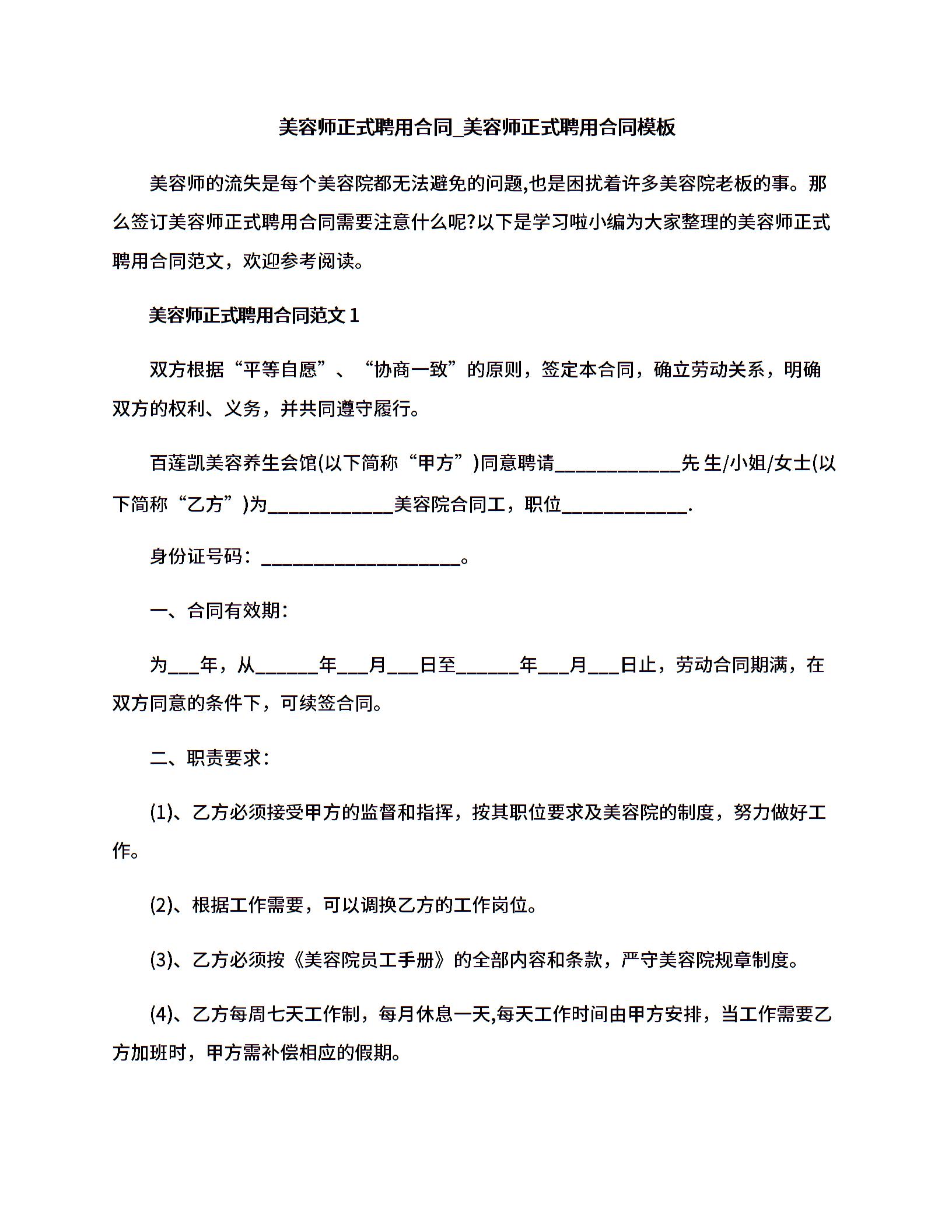 美容师正式聘用合同_美容师正式聘用合同模板.docx