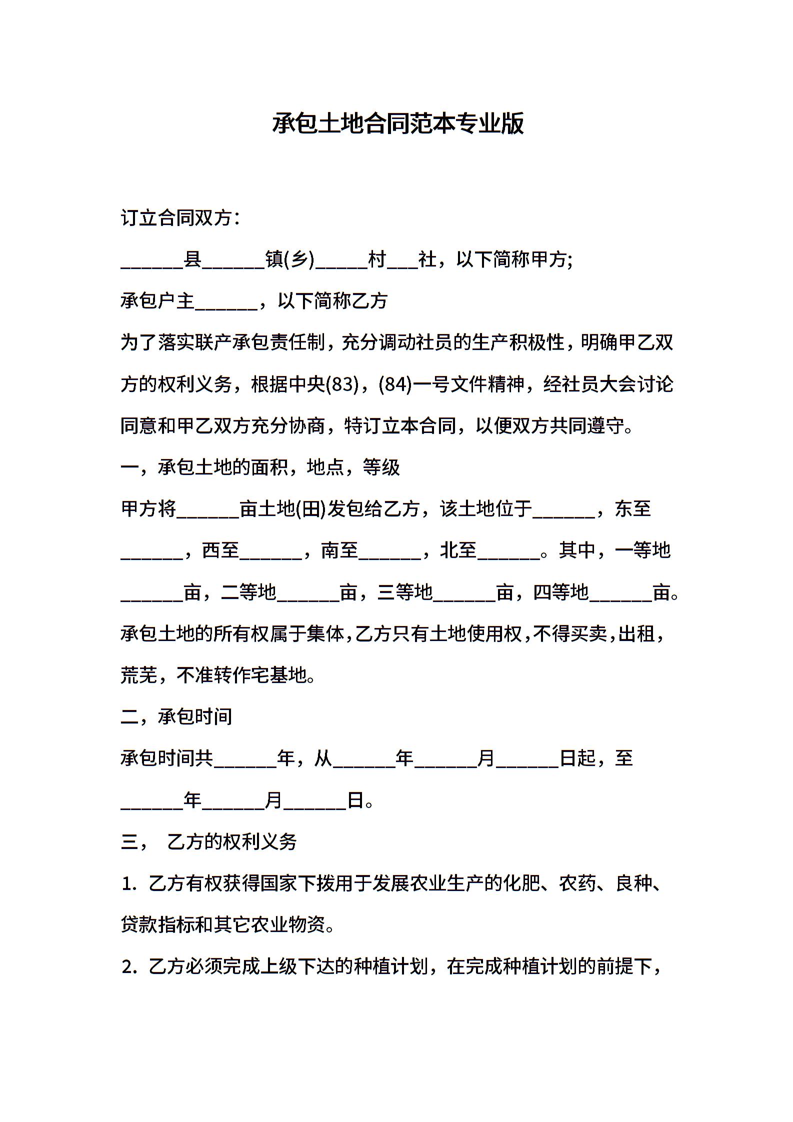 承包土地合同范本专业版