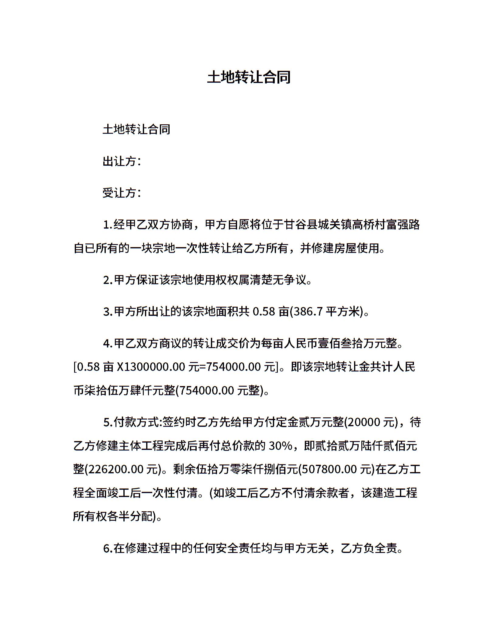 土地转让合同