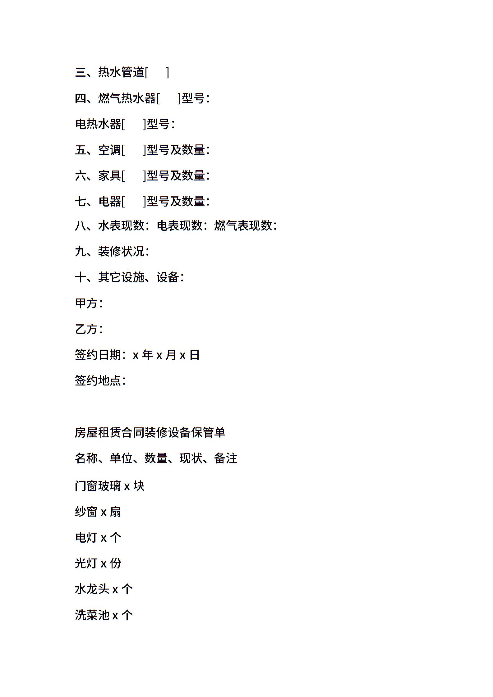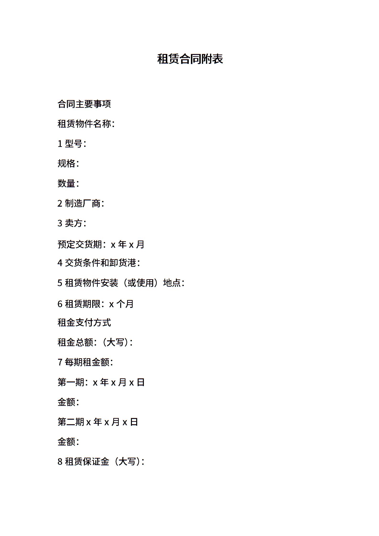 租赁合同附表