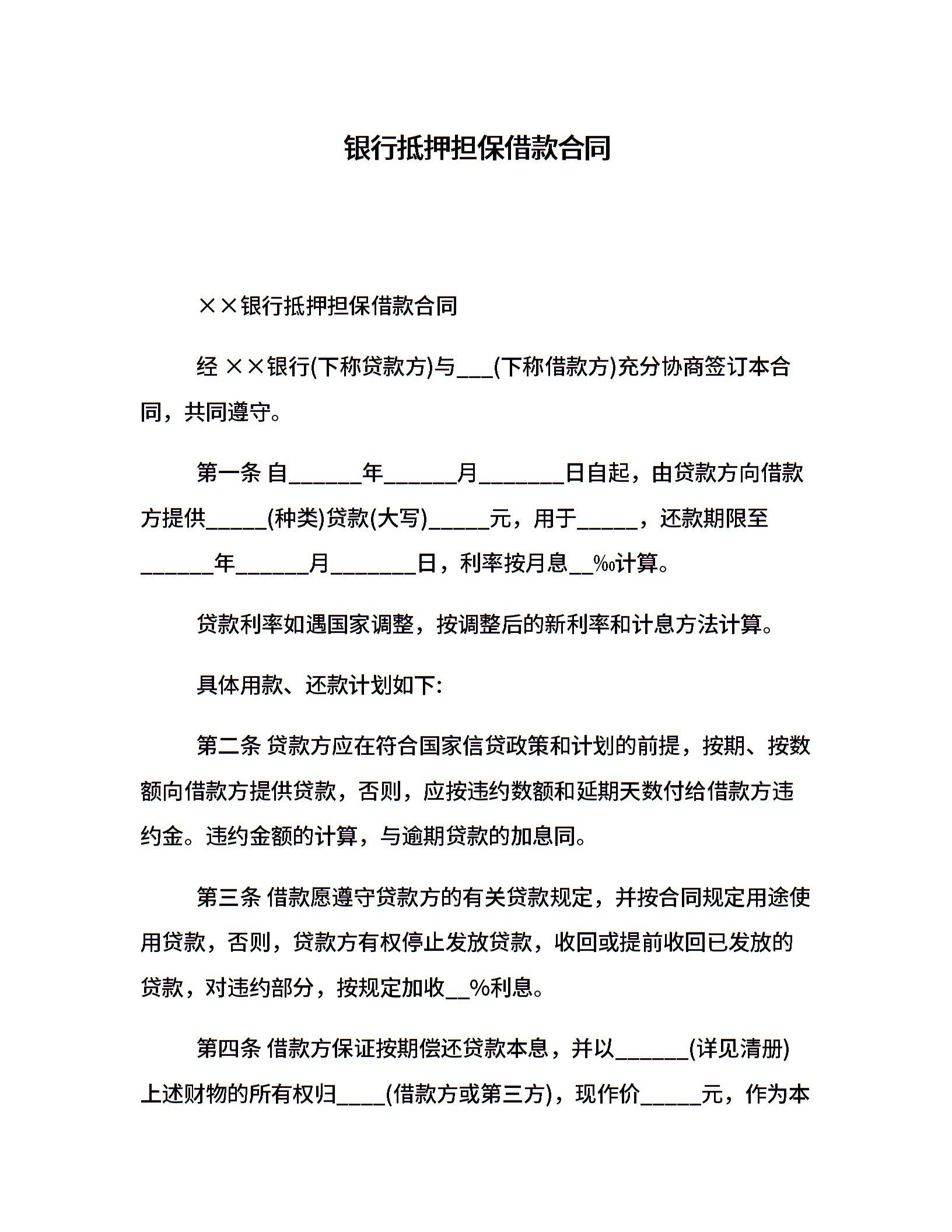 银行抵押担保借款合同