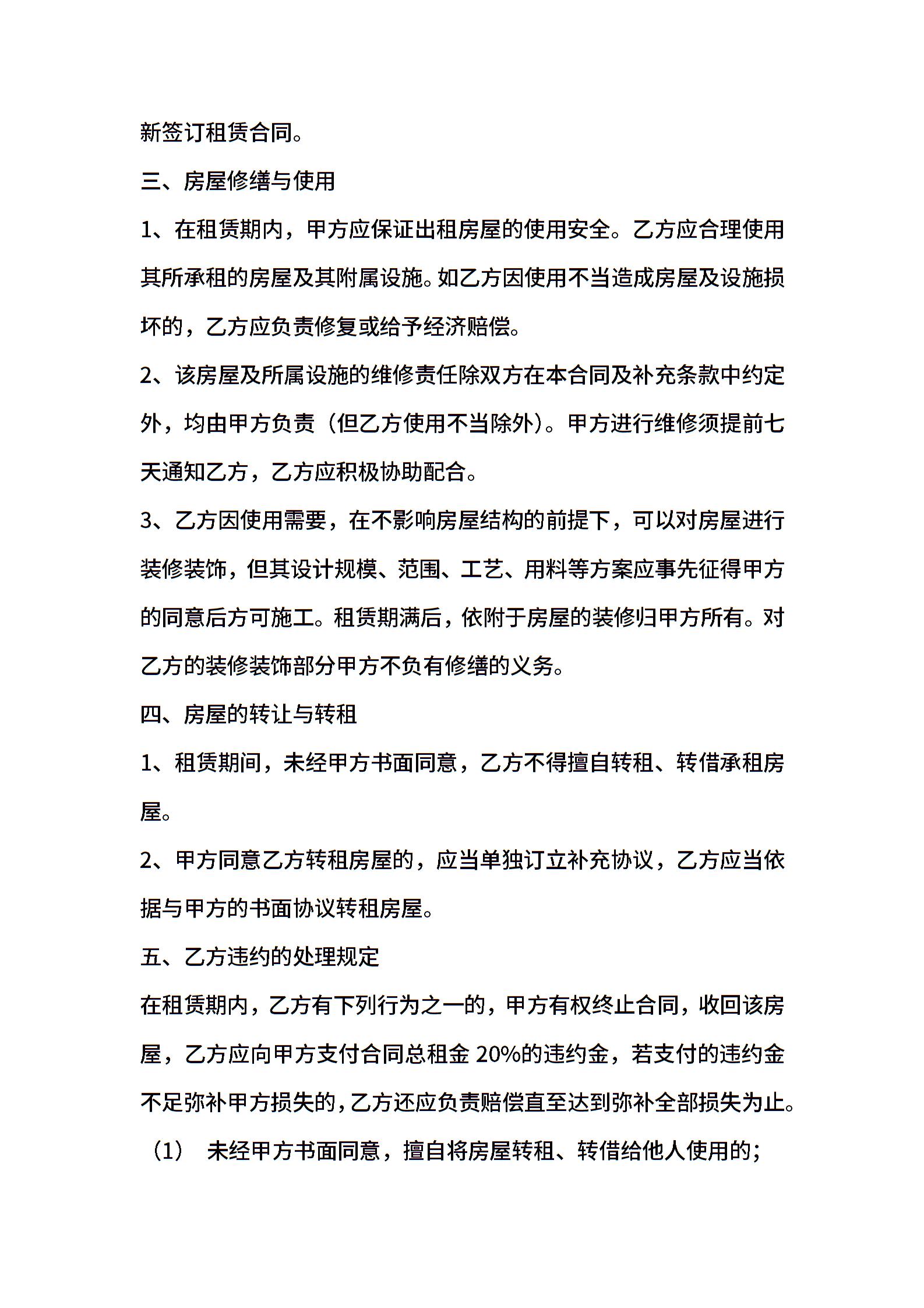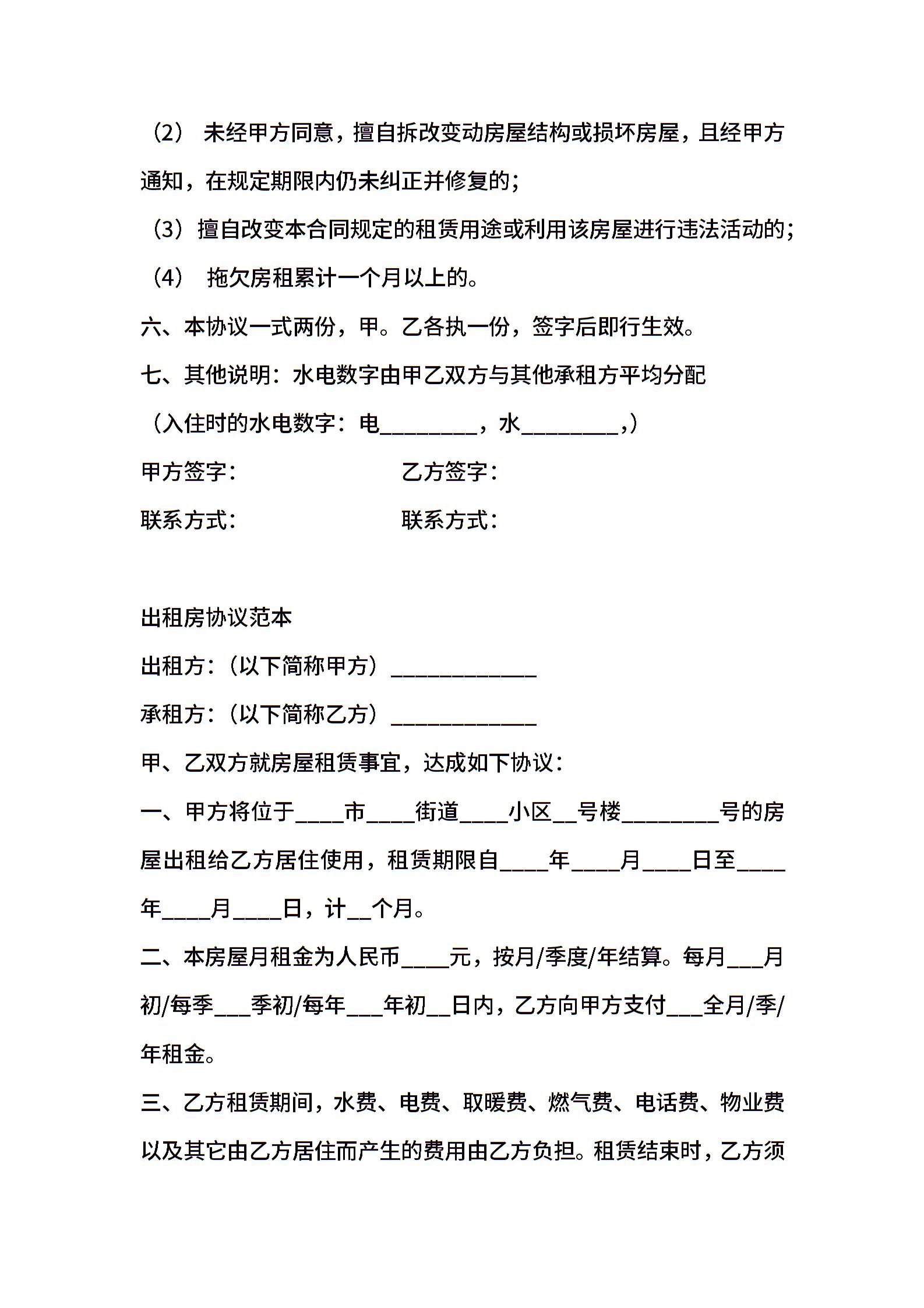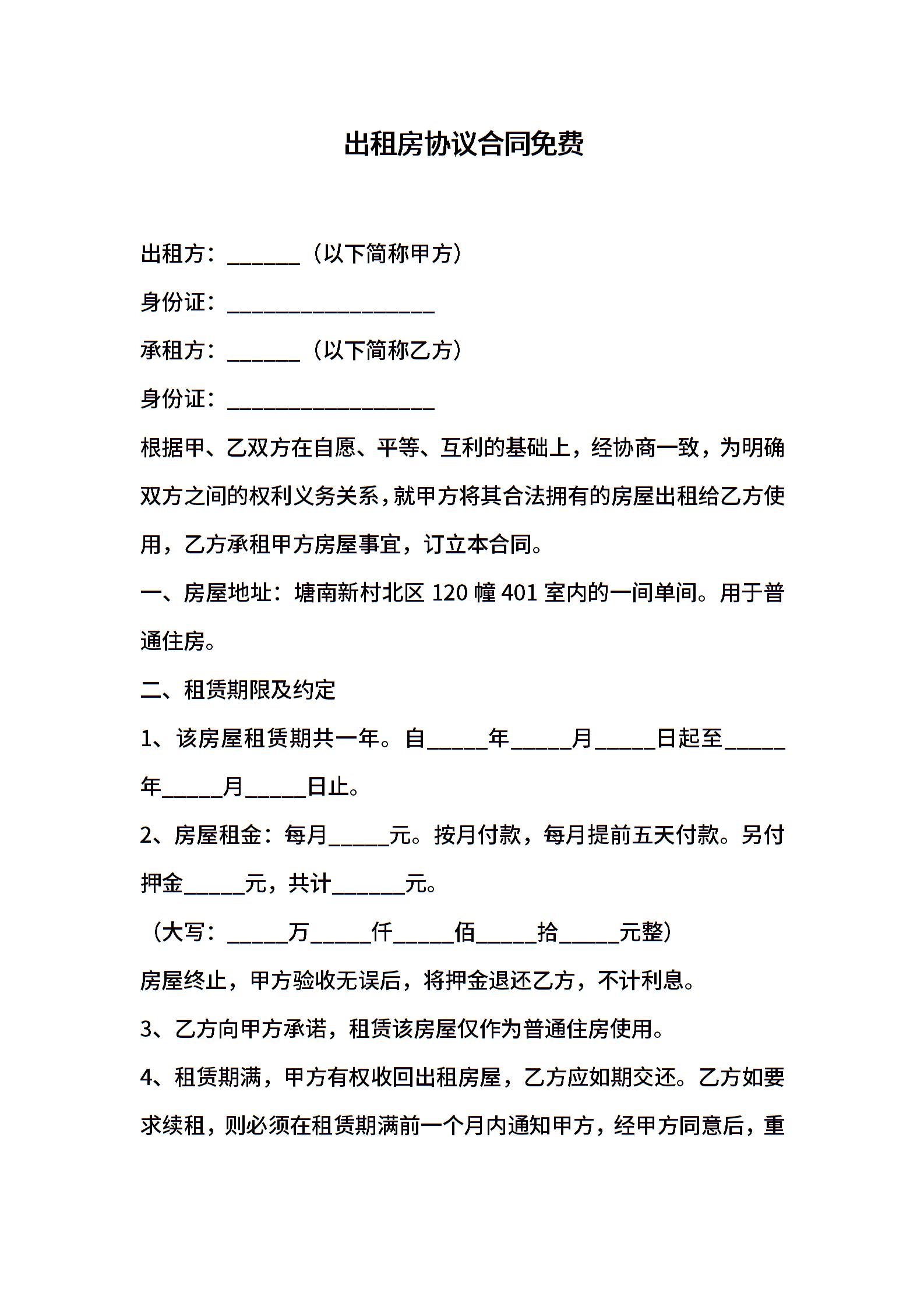 出租房协议合同