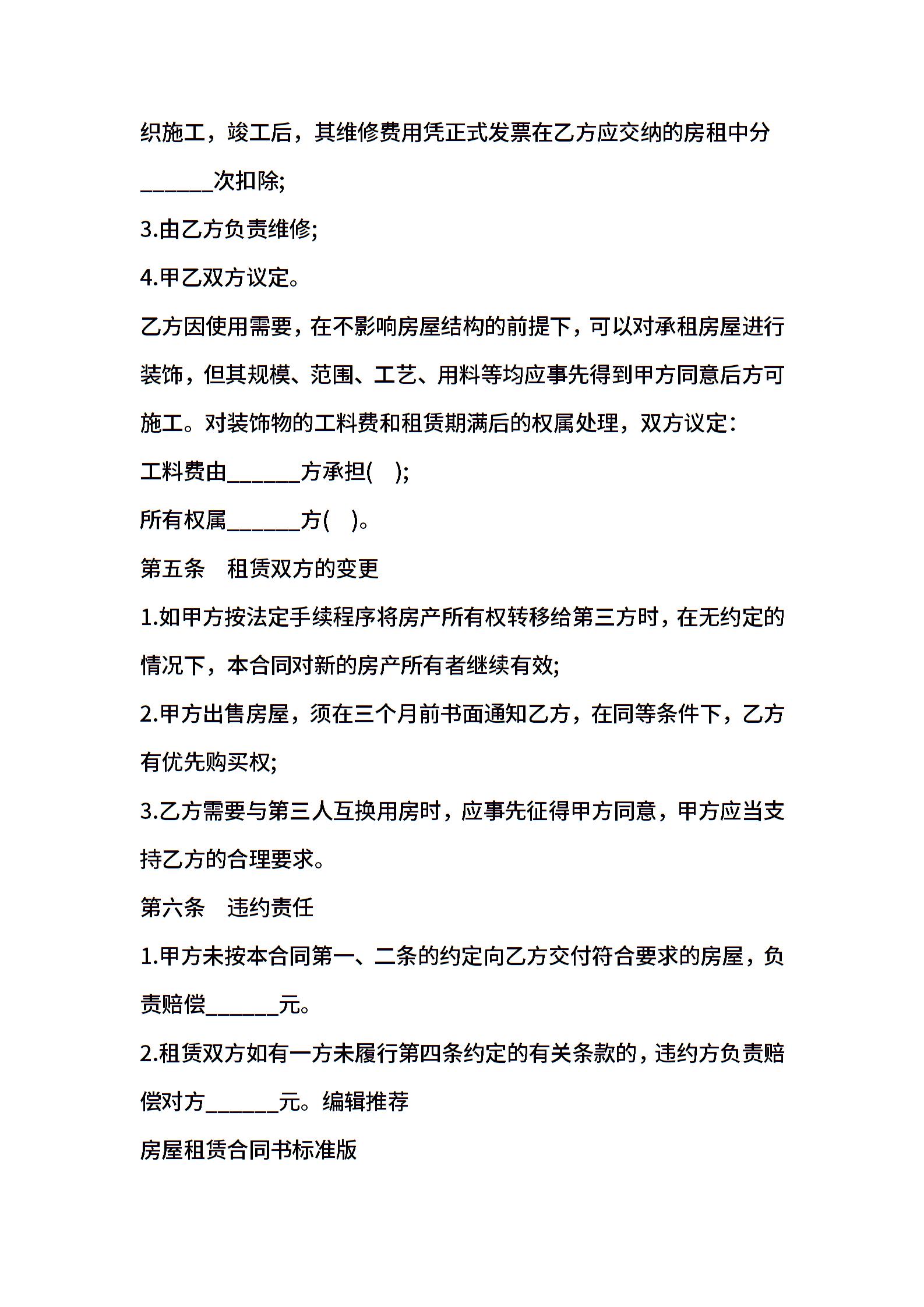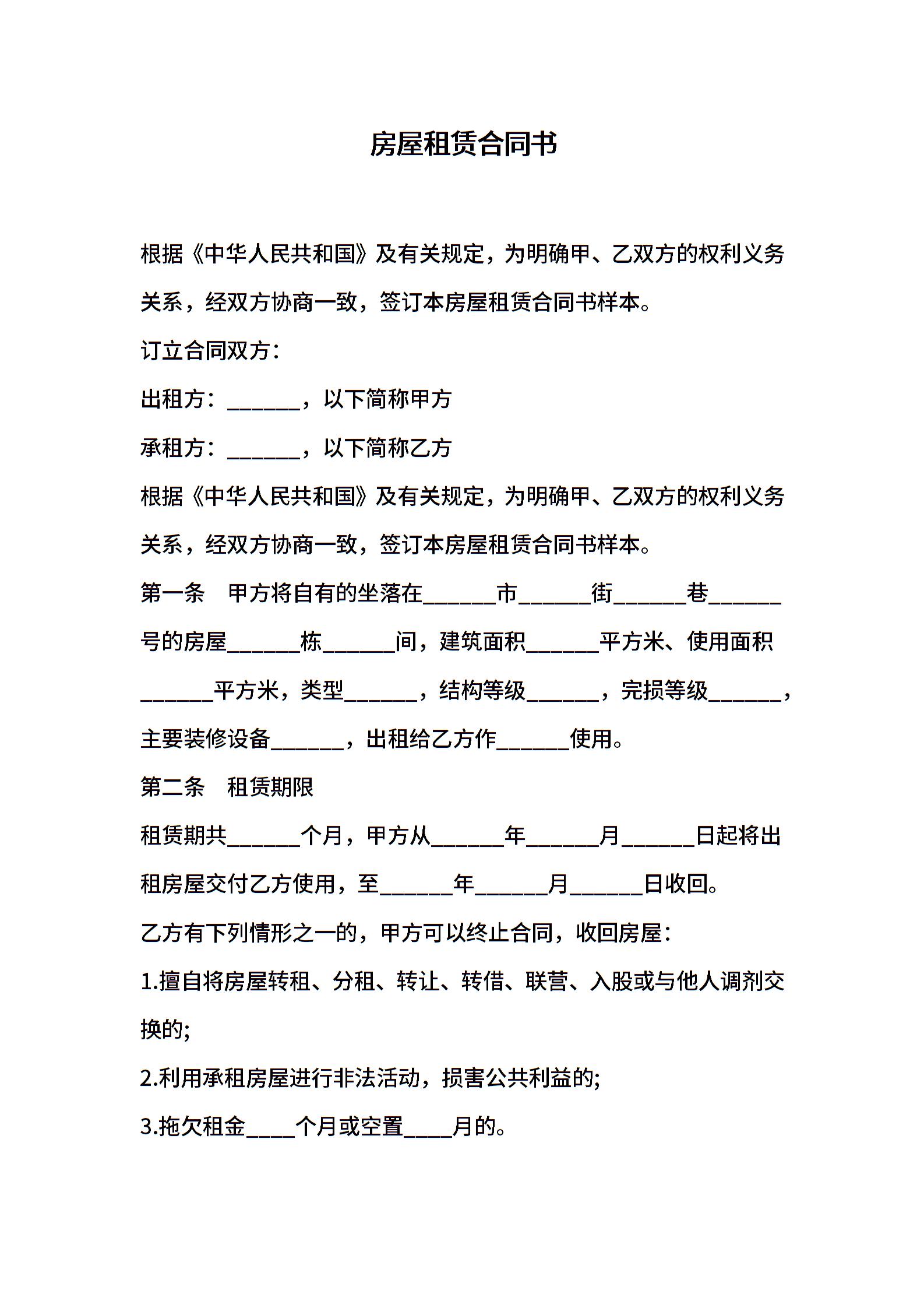 房屋租赁合同书 (4)