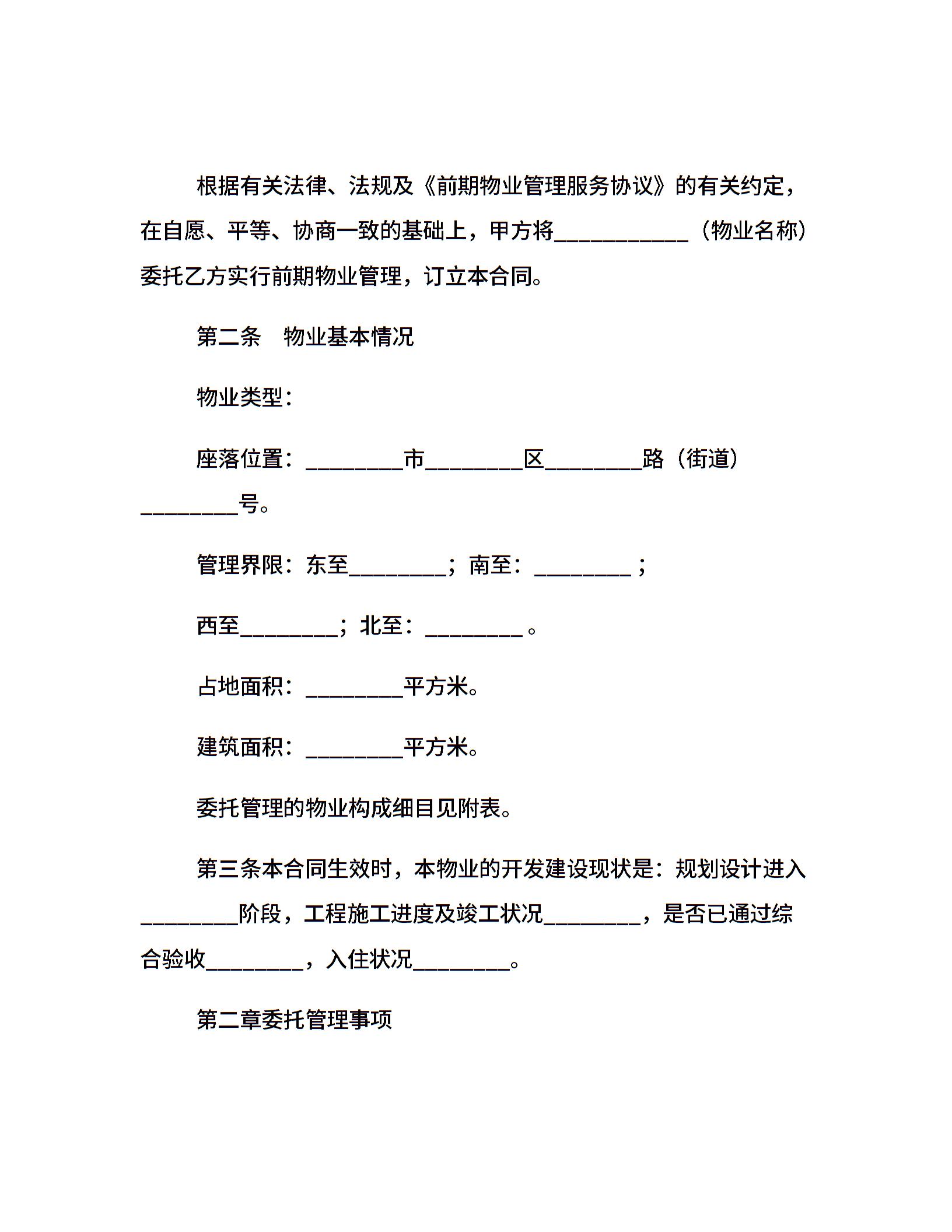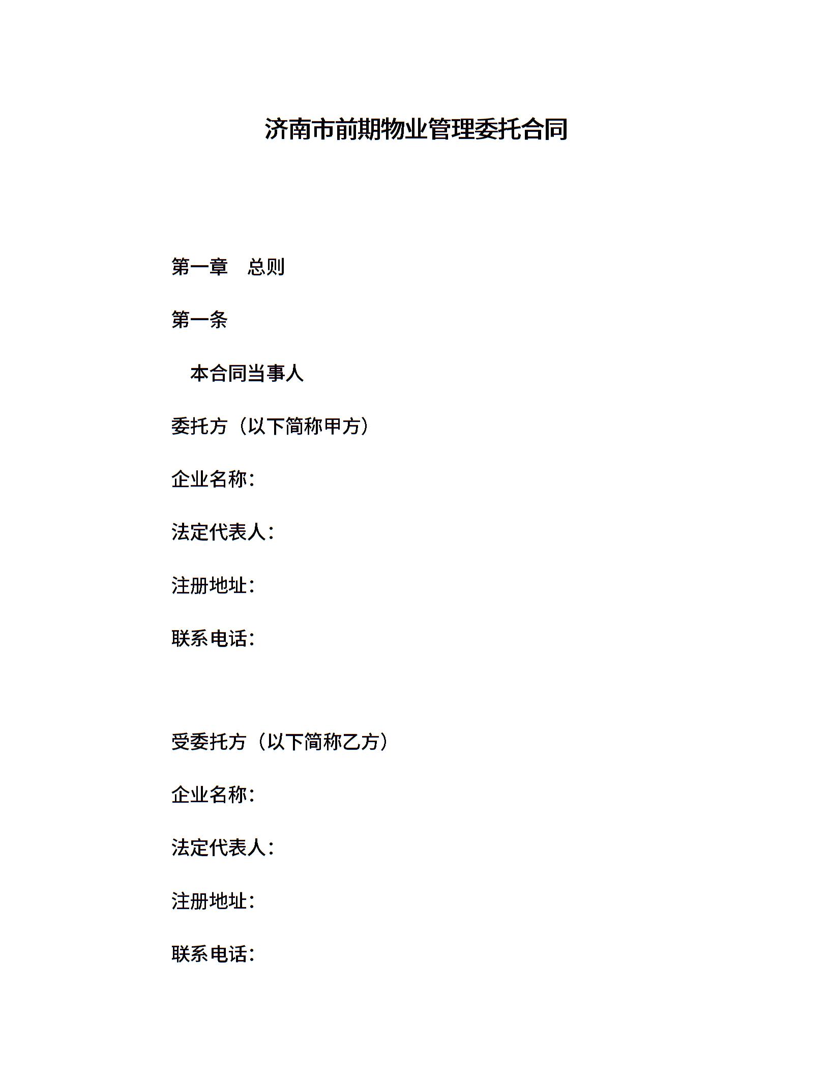 济南市前期物业管理委托合同