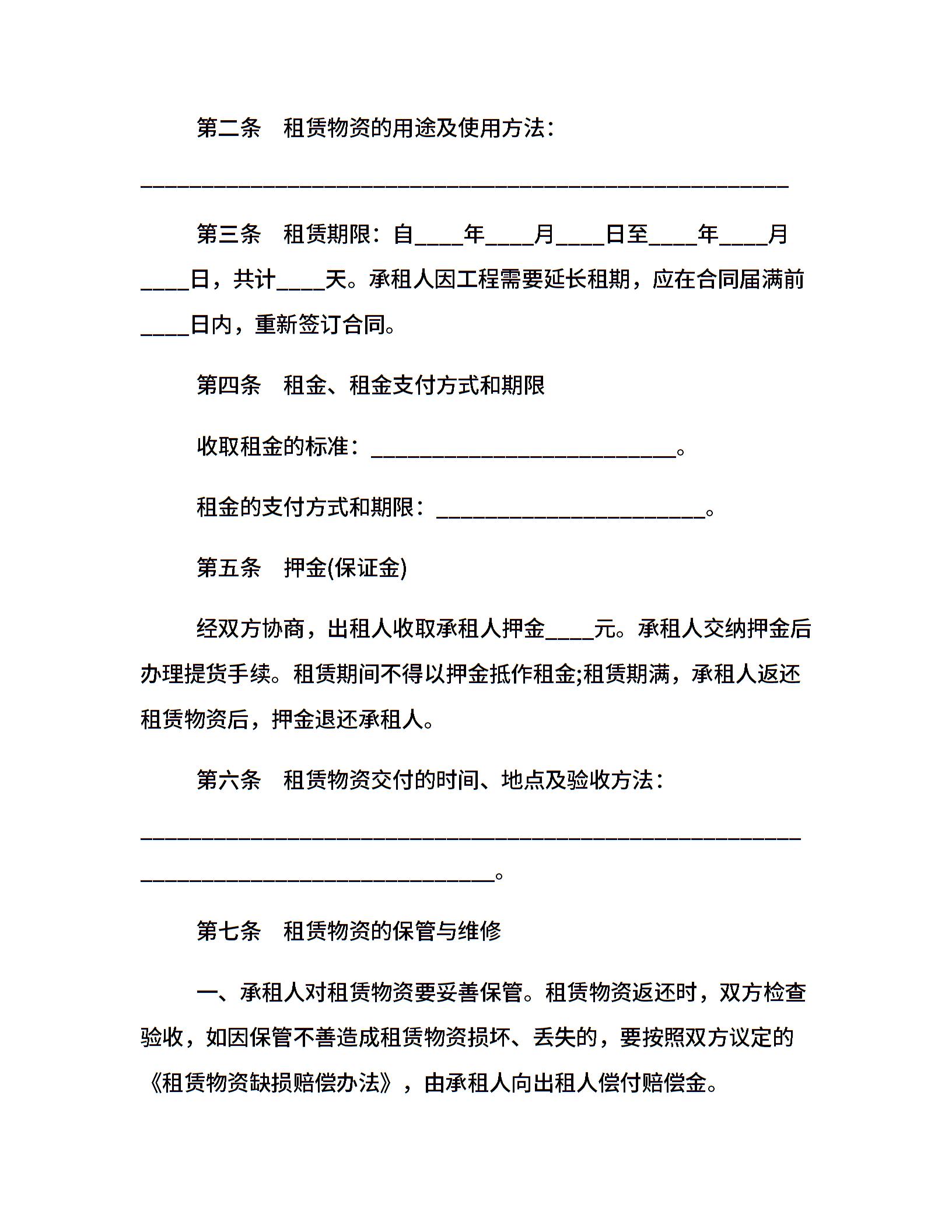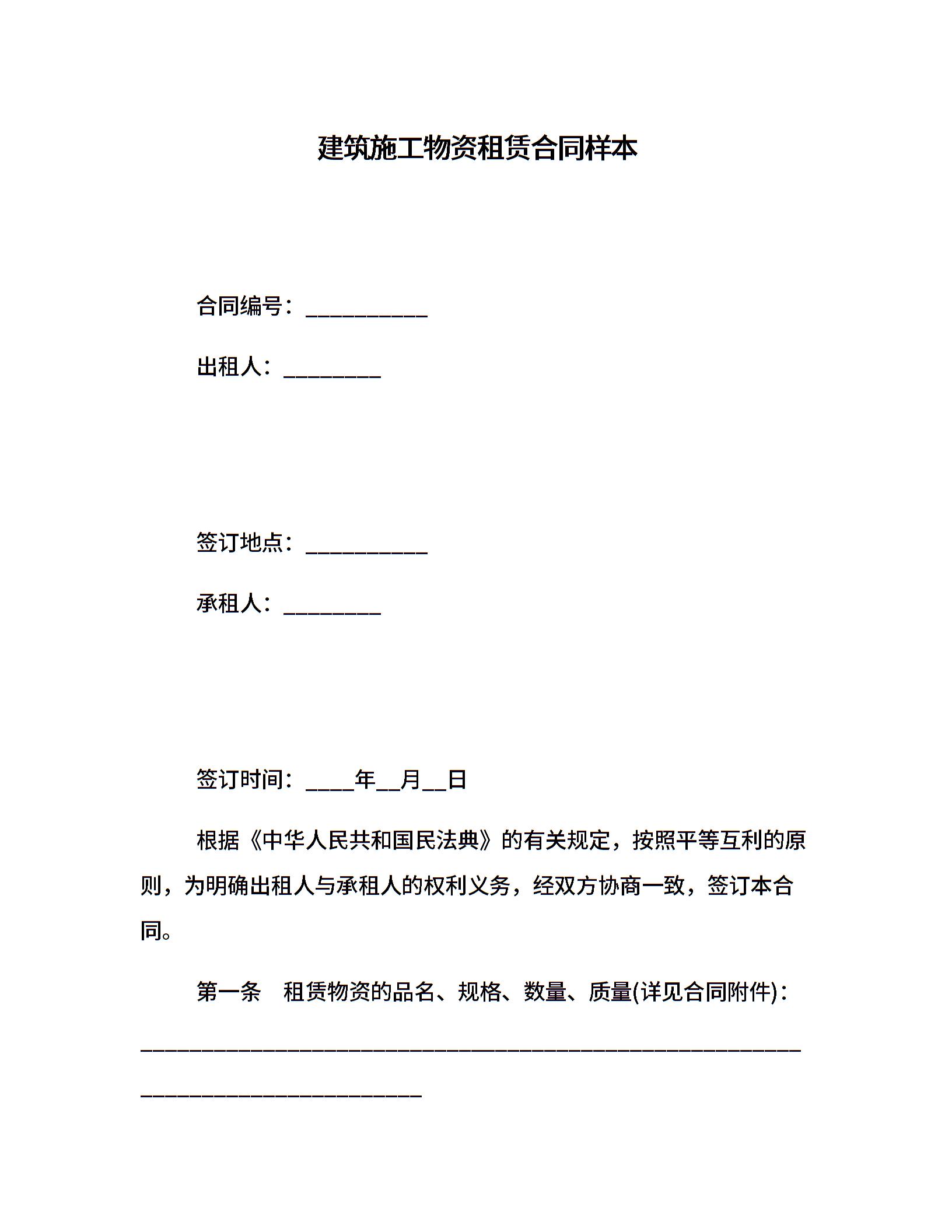 建筑施工物资租赁合同样本