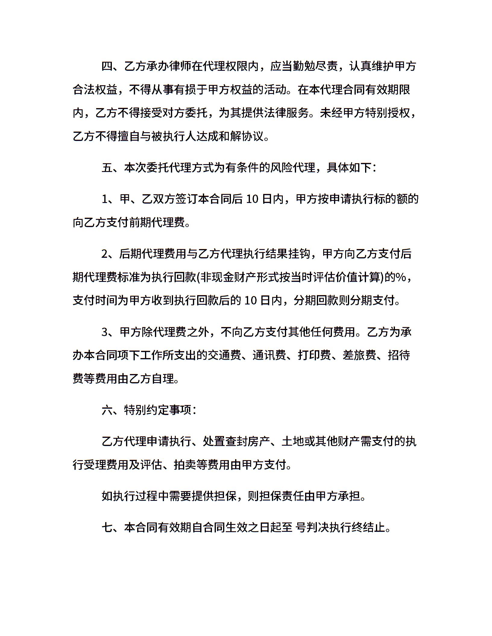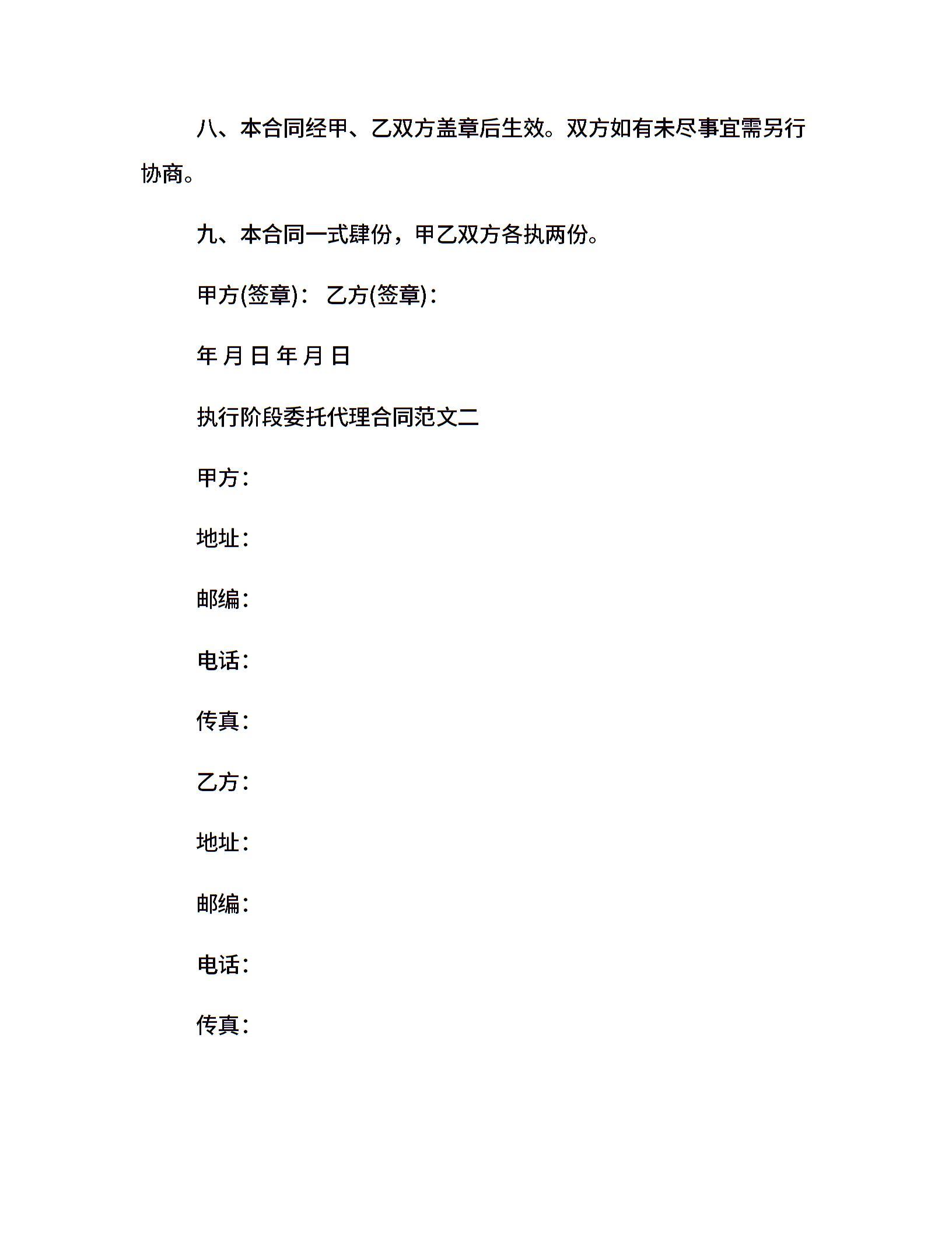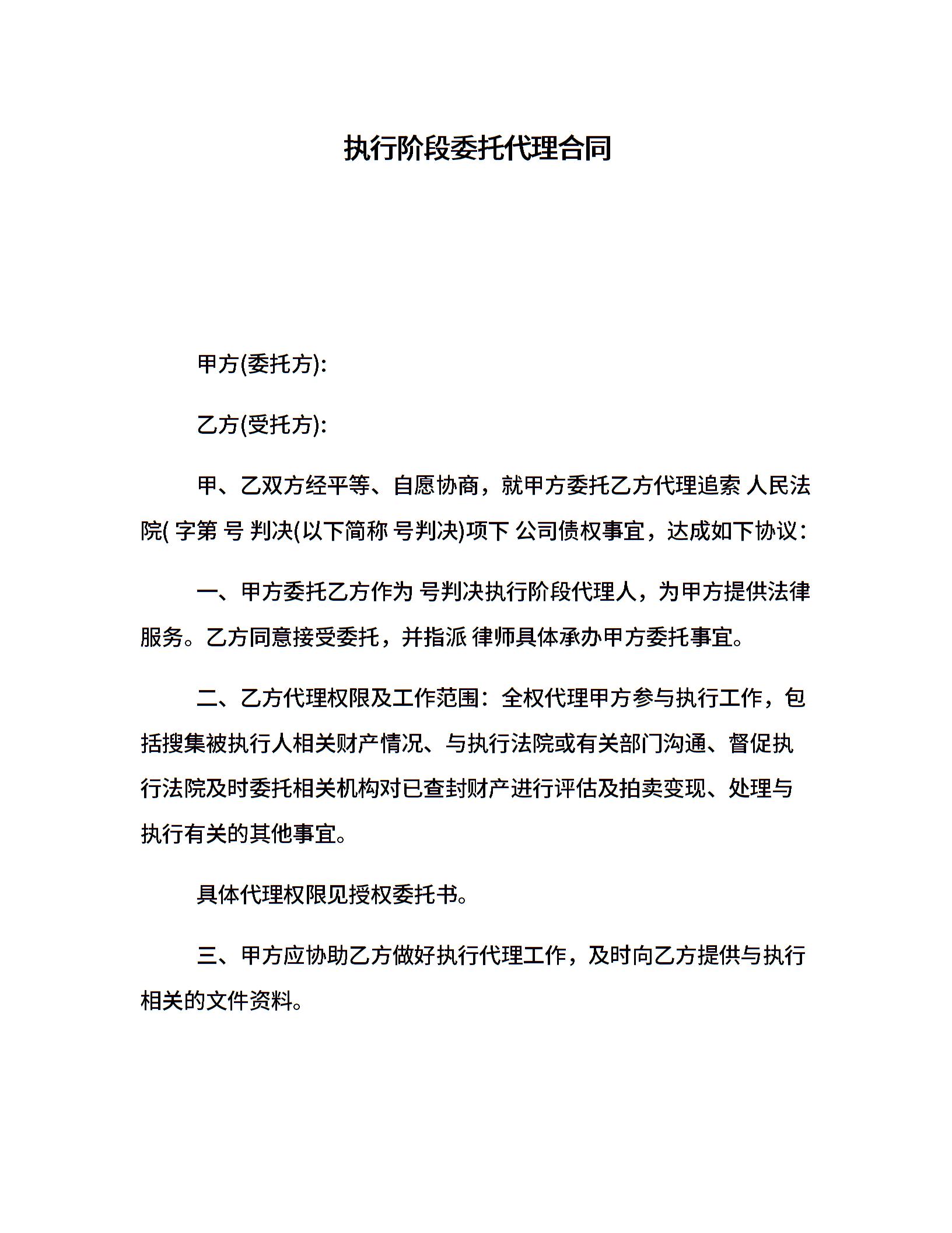 执行阶段委托代理合同