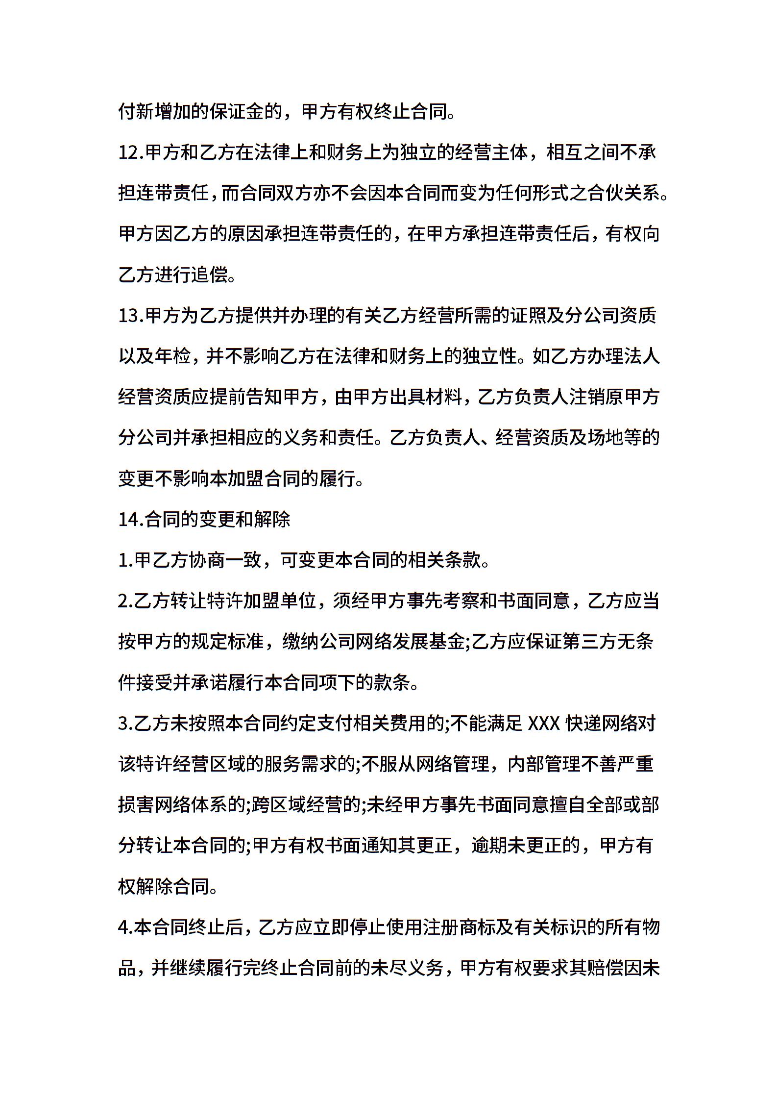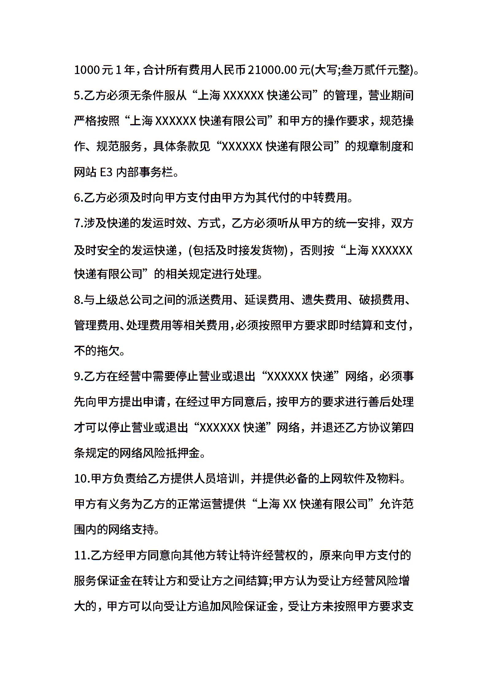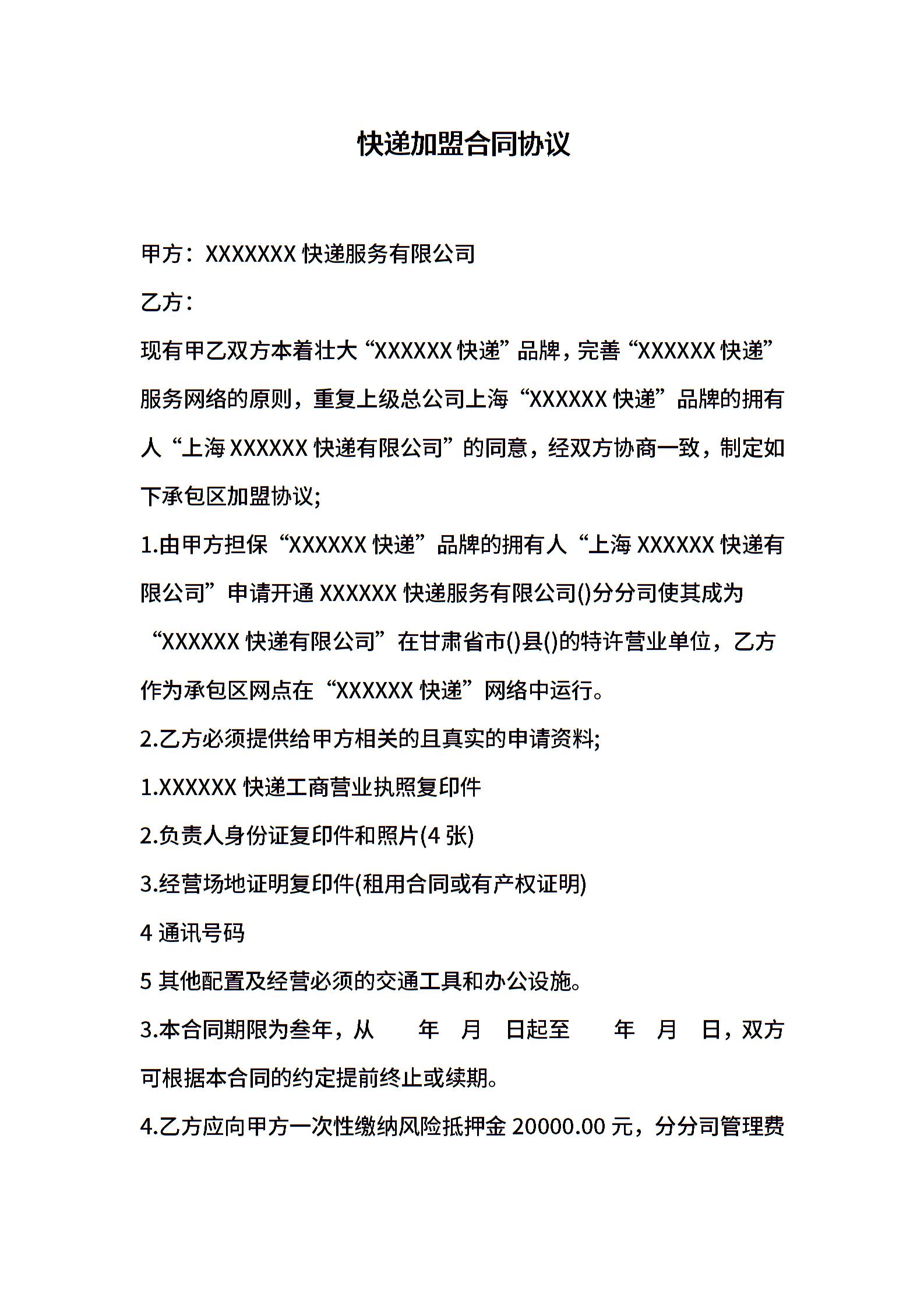 快递加盟合同协议