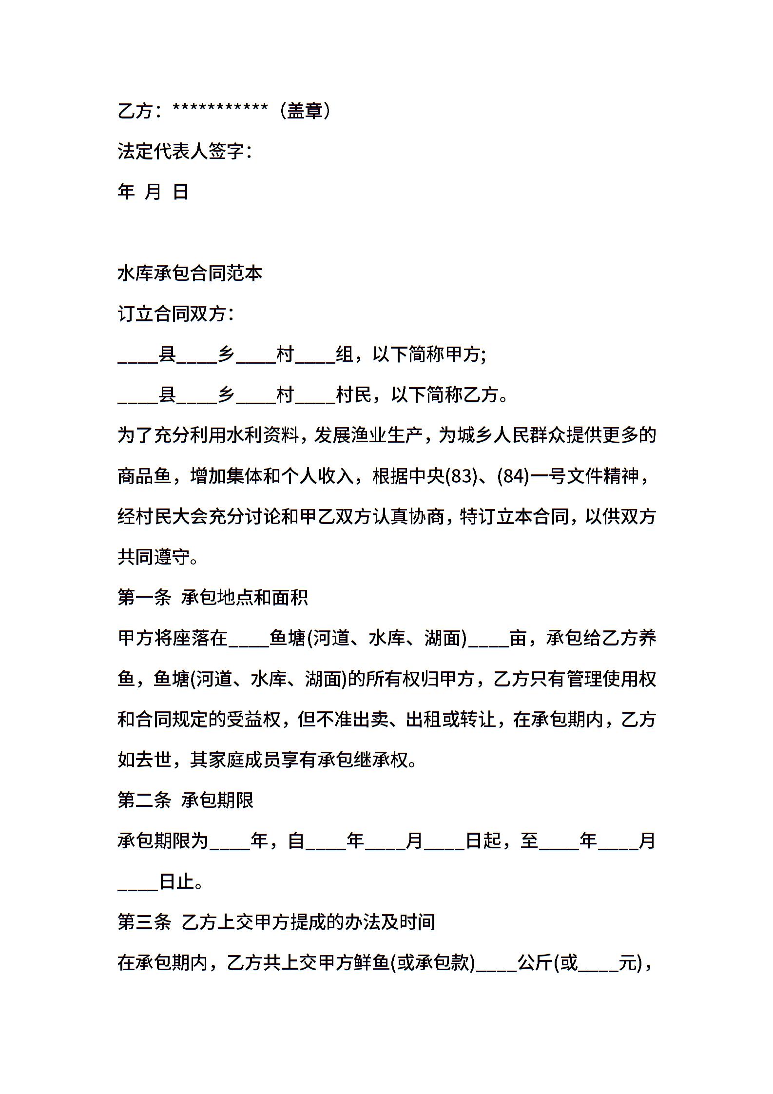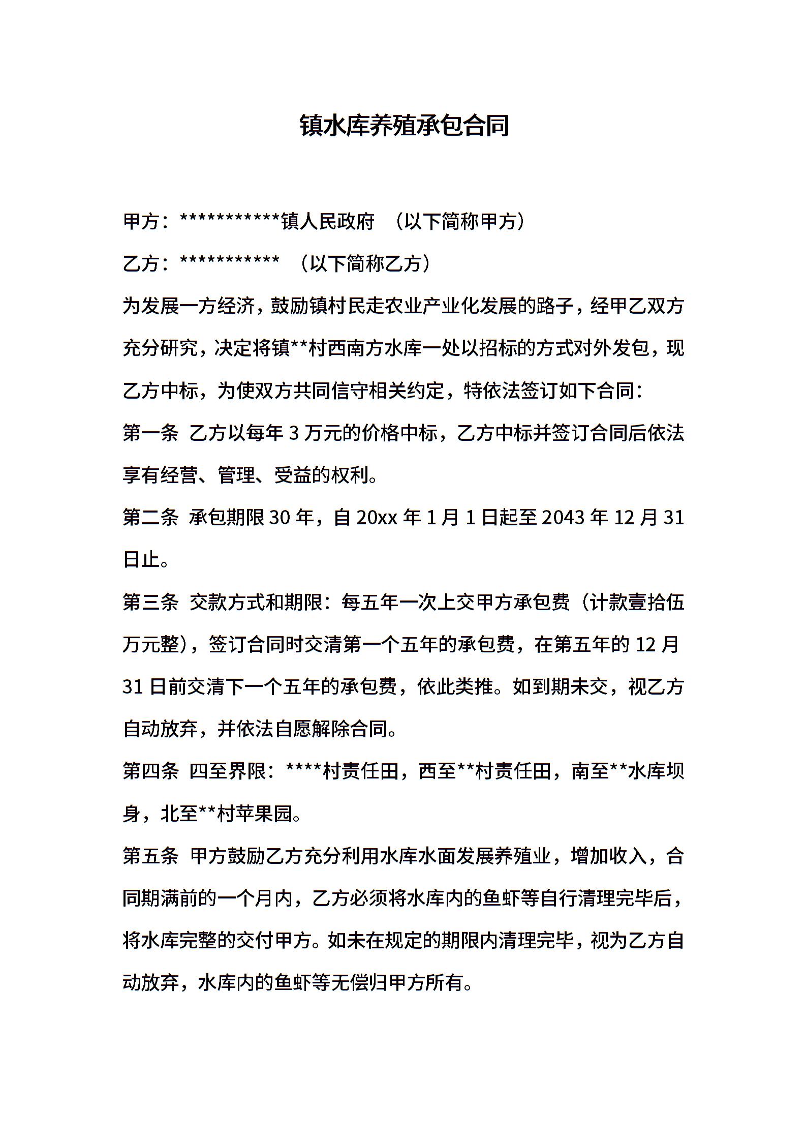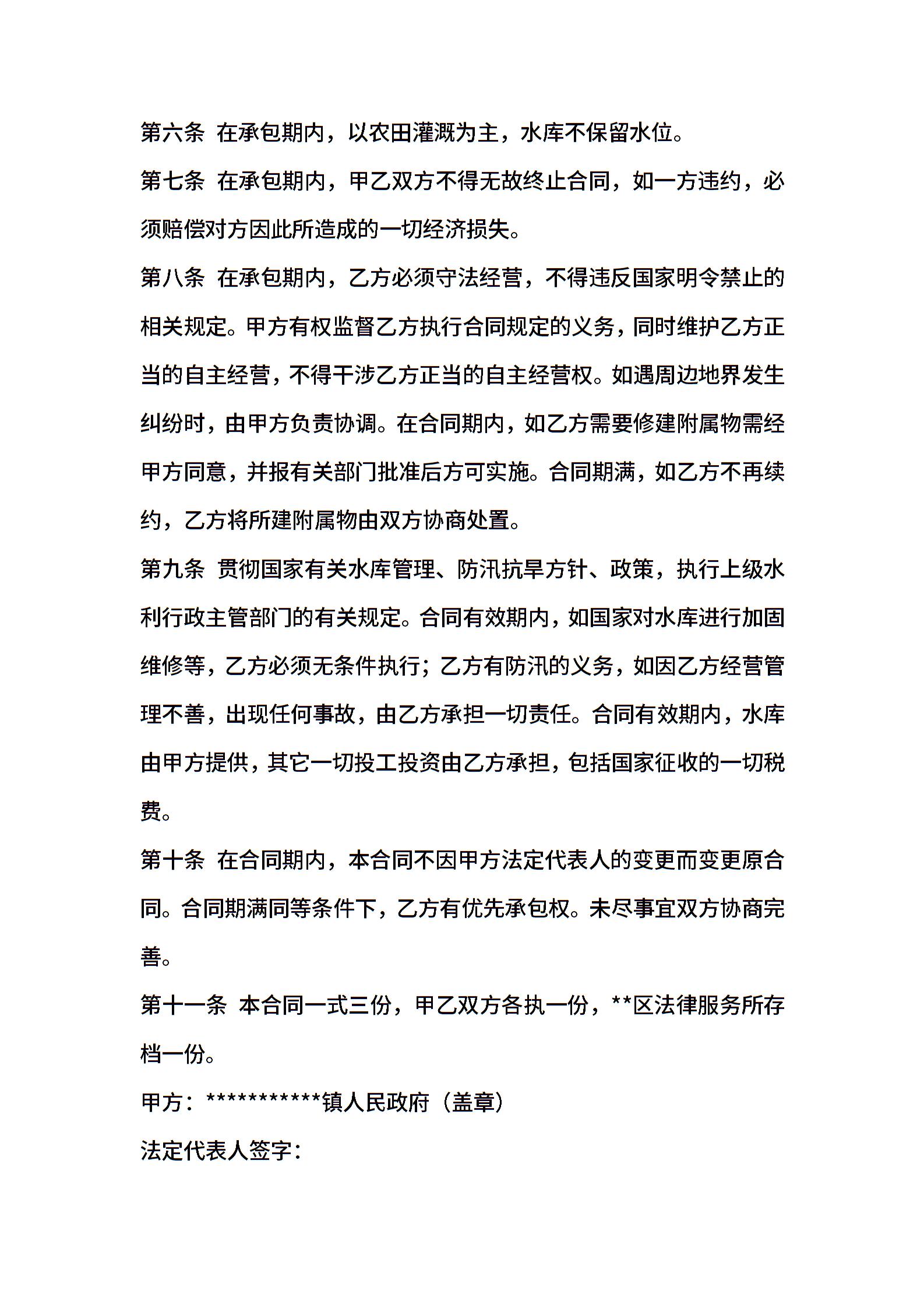 镇水库养殖承包合同