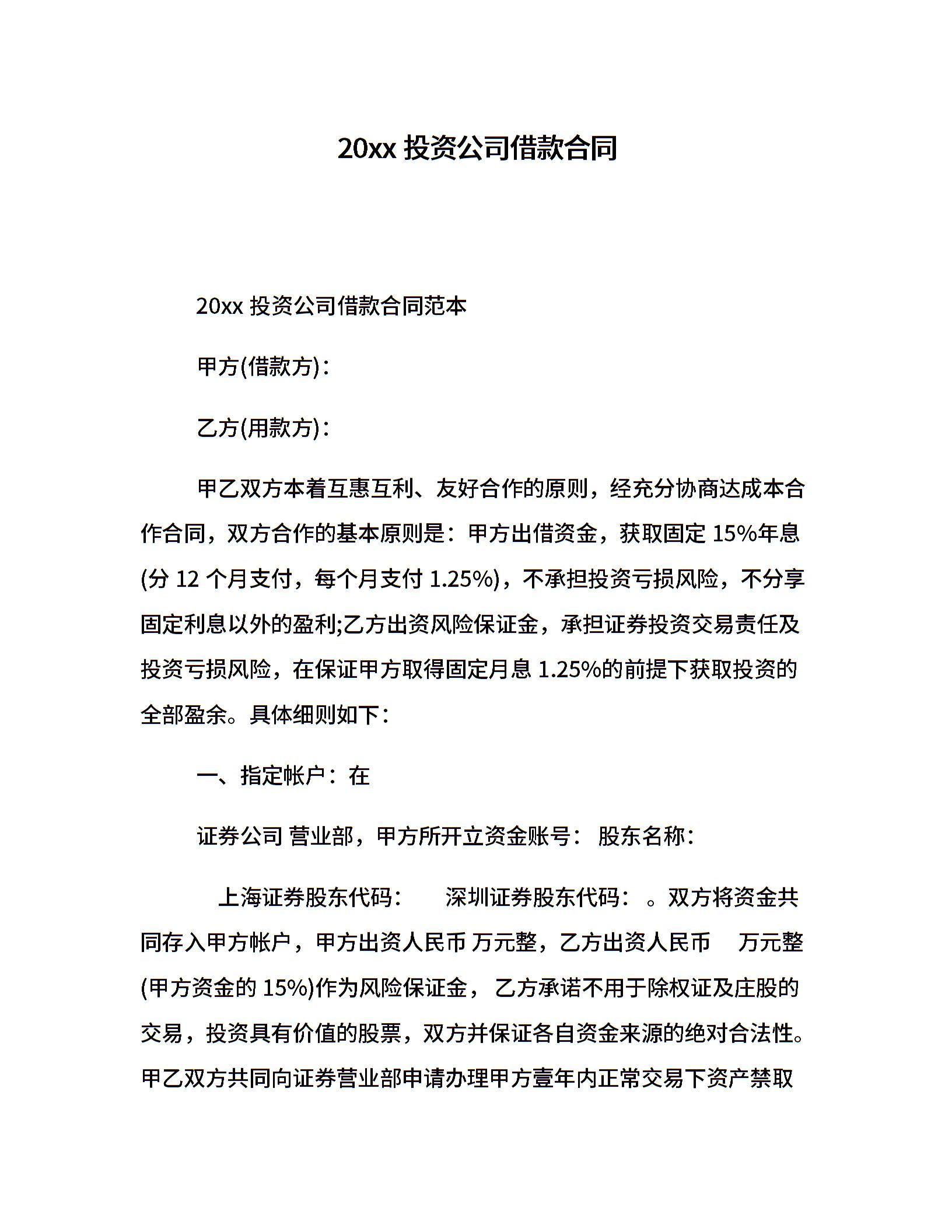 20xx投资公司借款合同