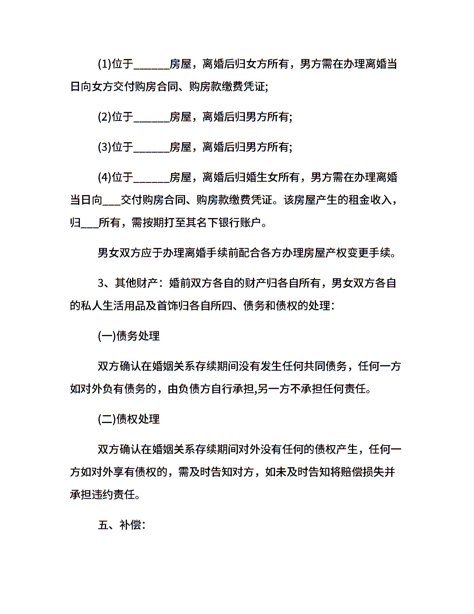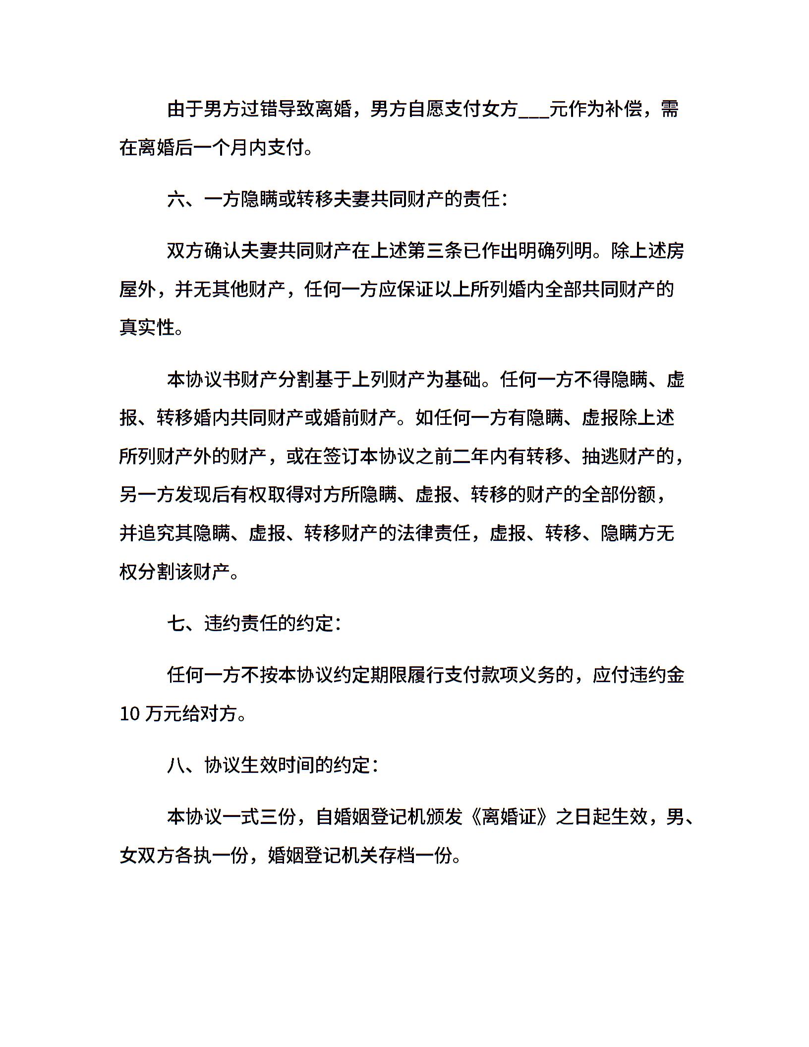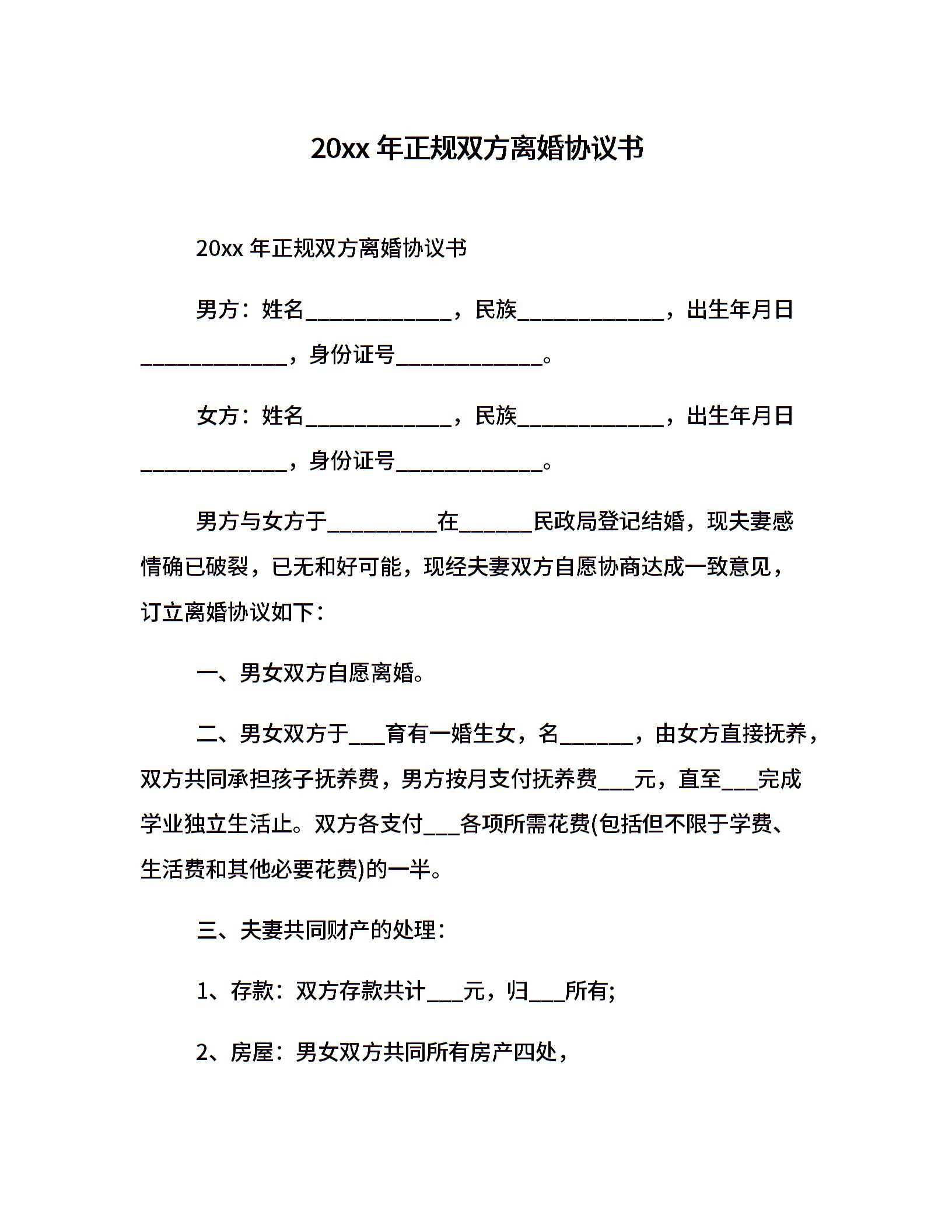 20xx年正规双方离婚协议书