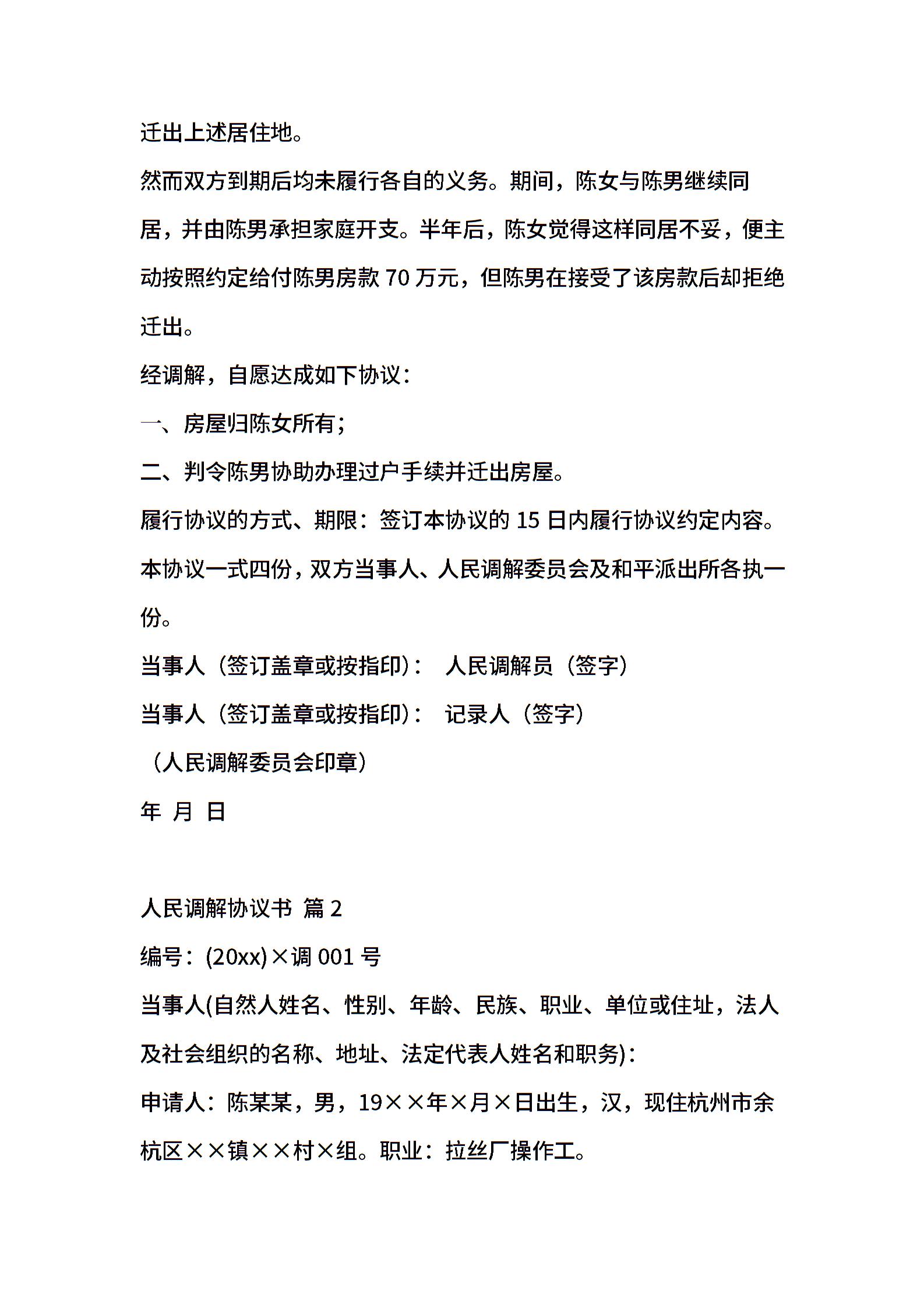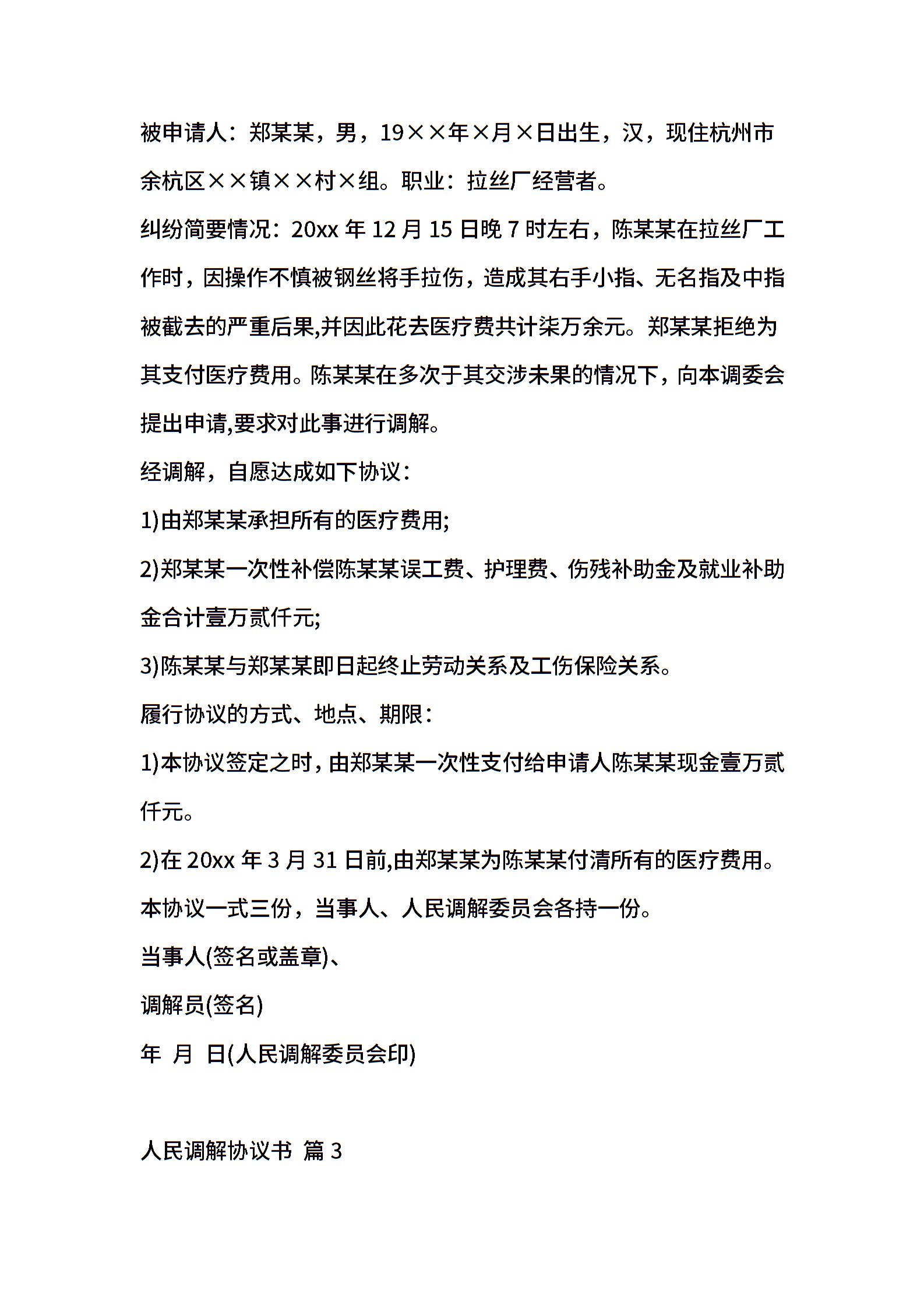 人民调解协议书