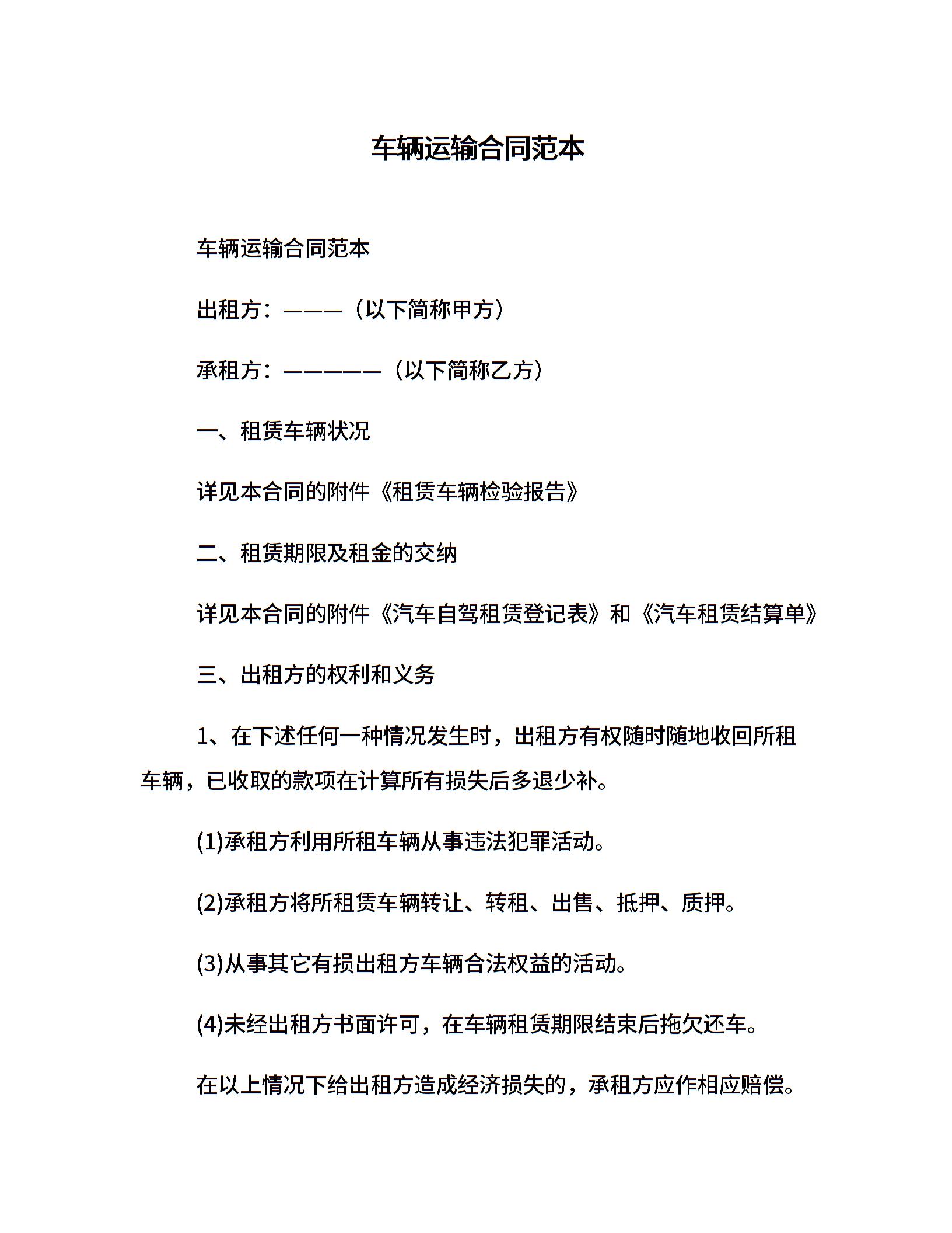 车辆运输合同范本
