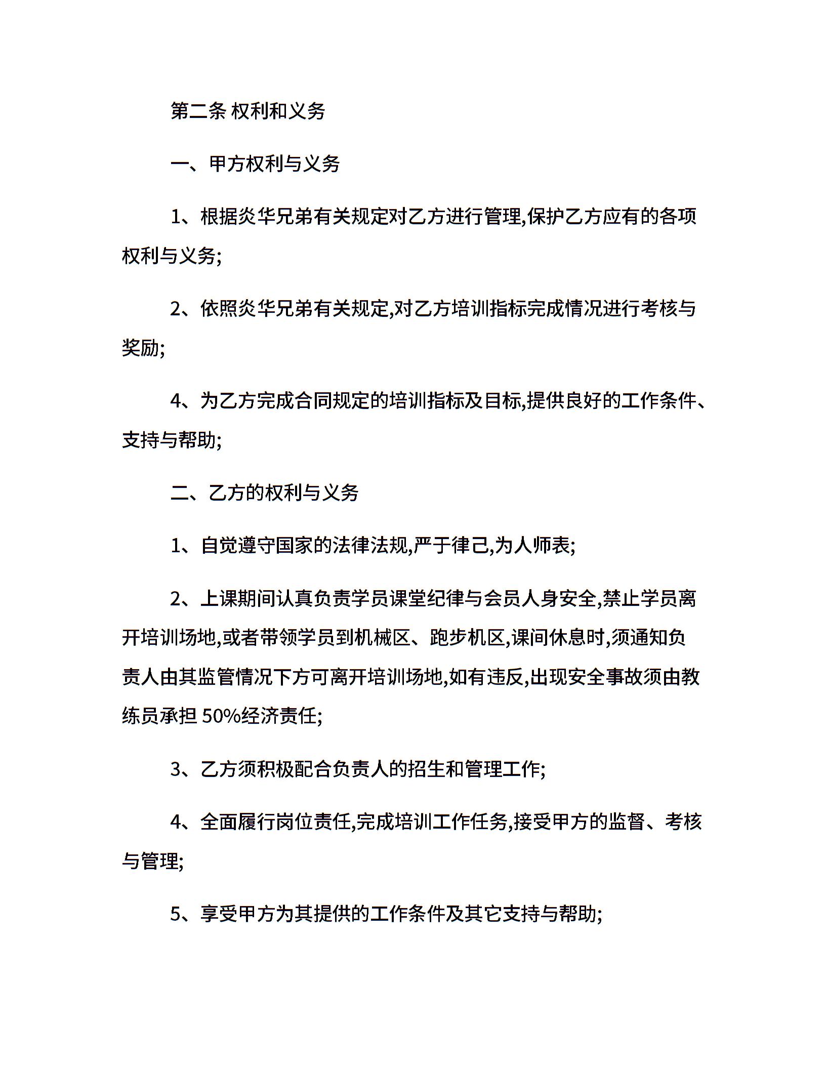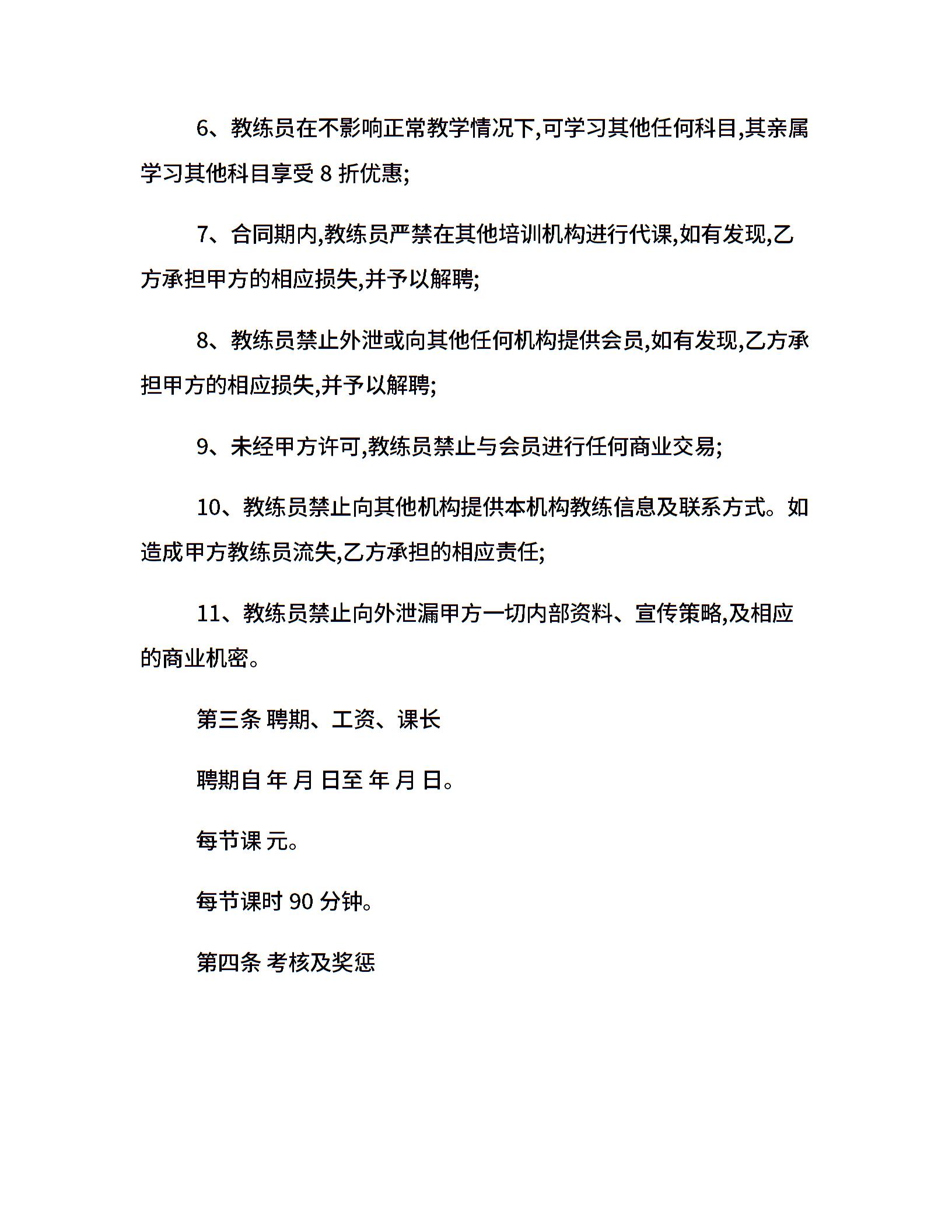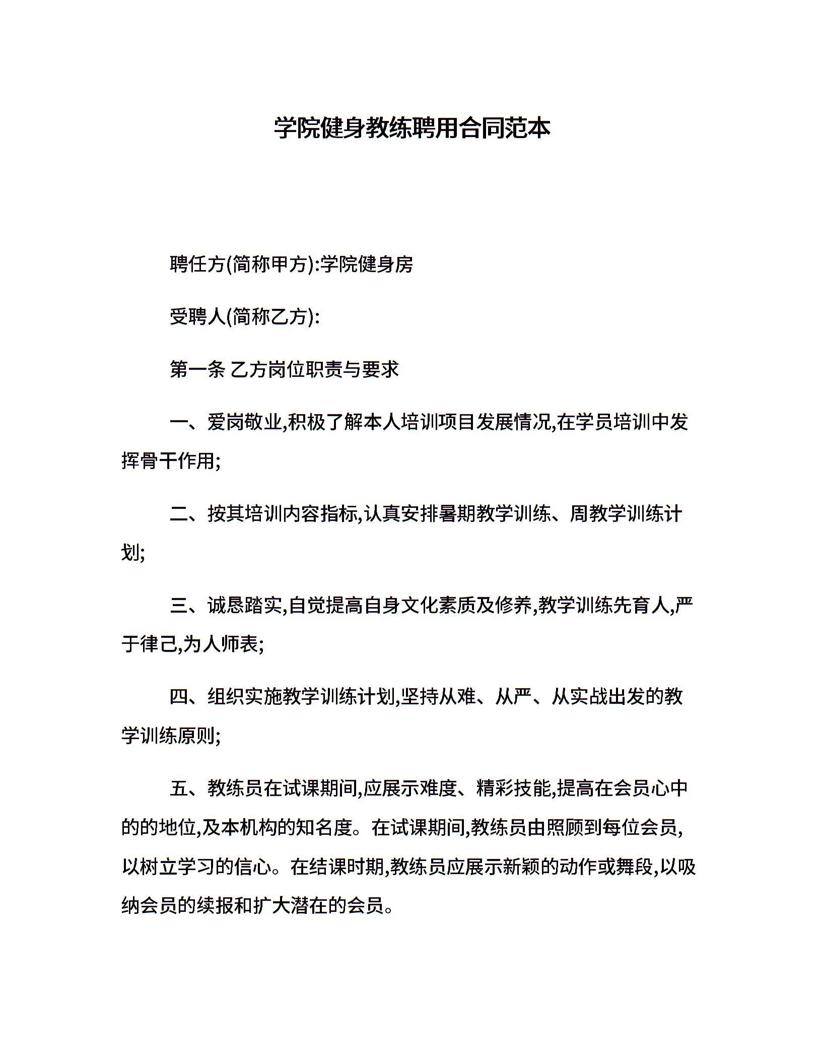 学院健身教练聘用合同范本