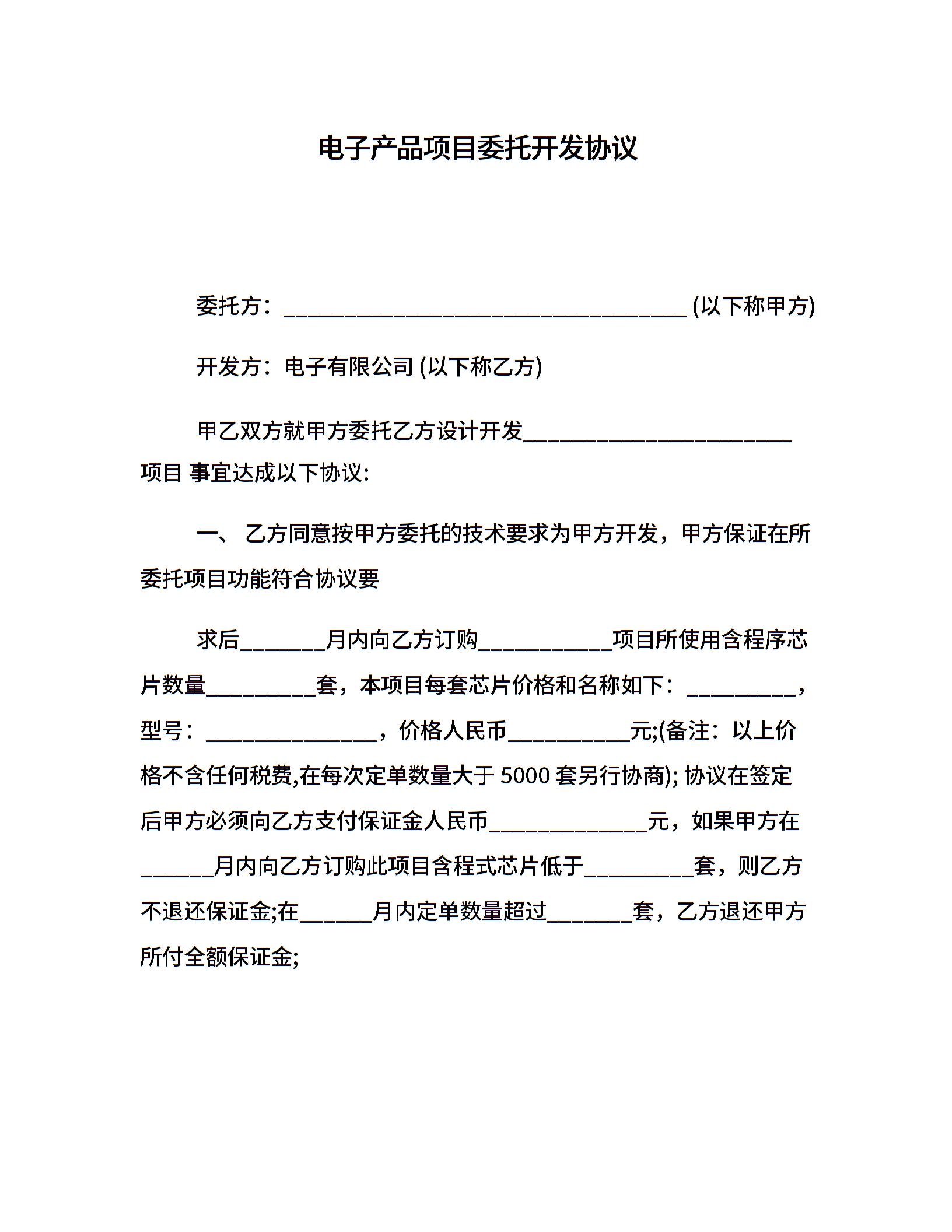 电子产品项目委托开发协议