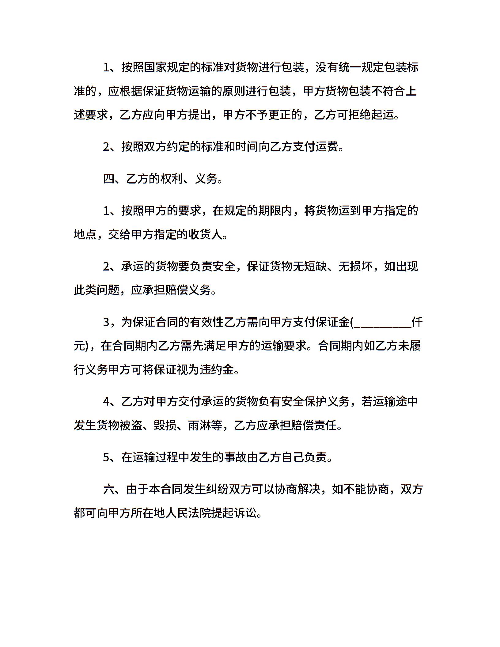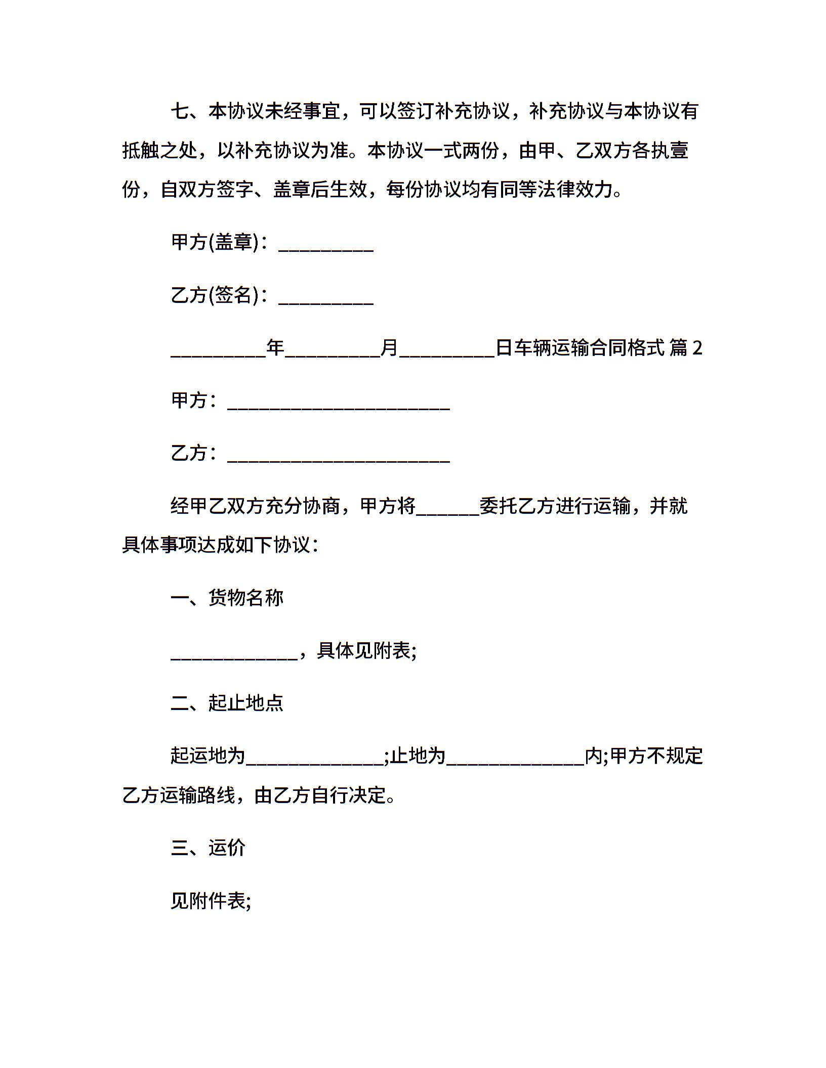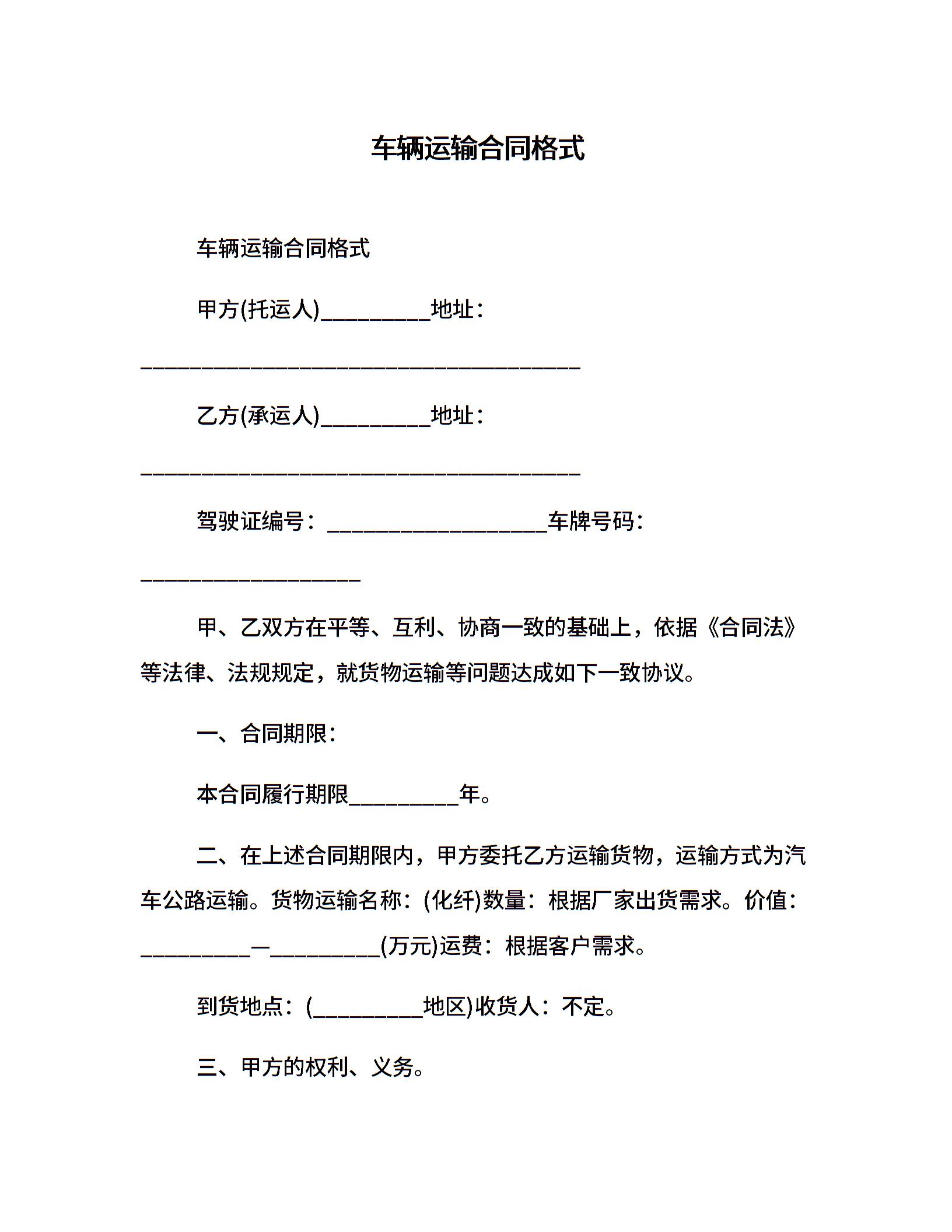 车辆运输合同格式