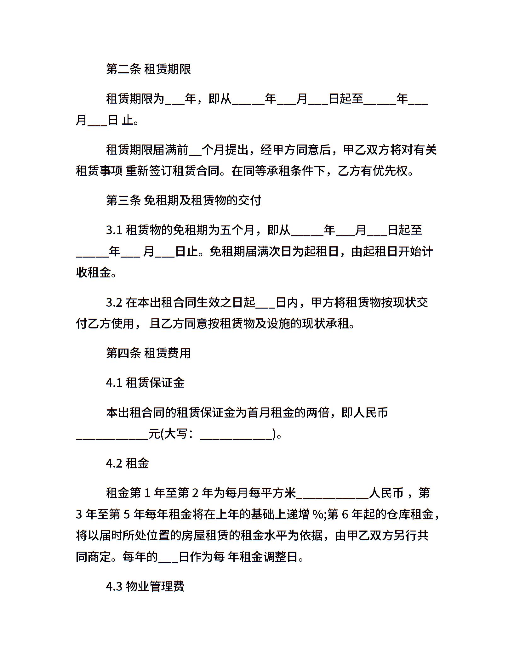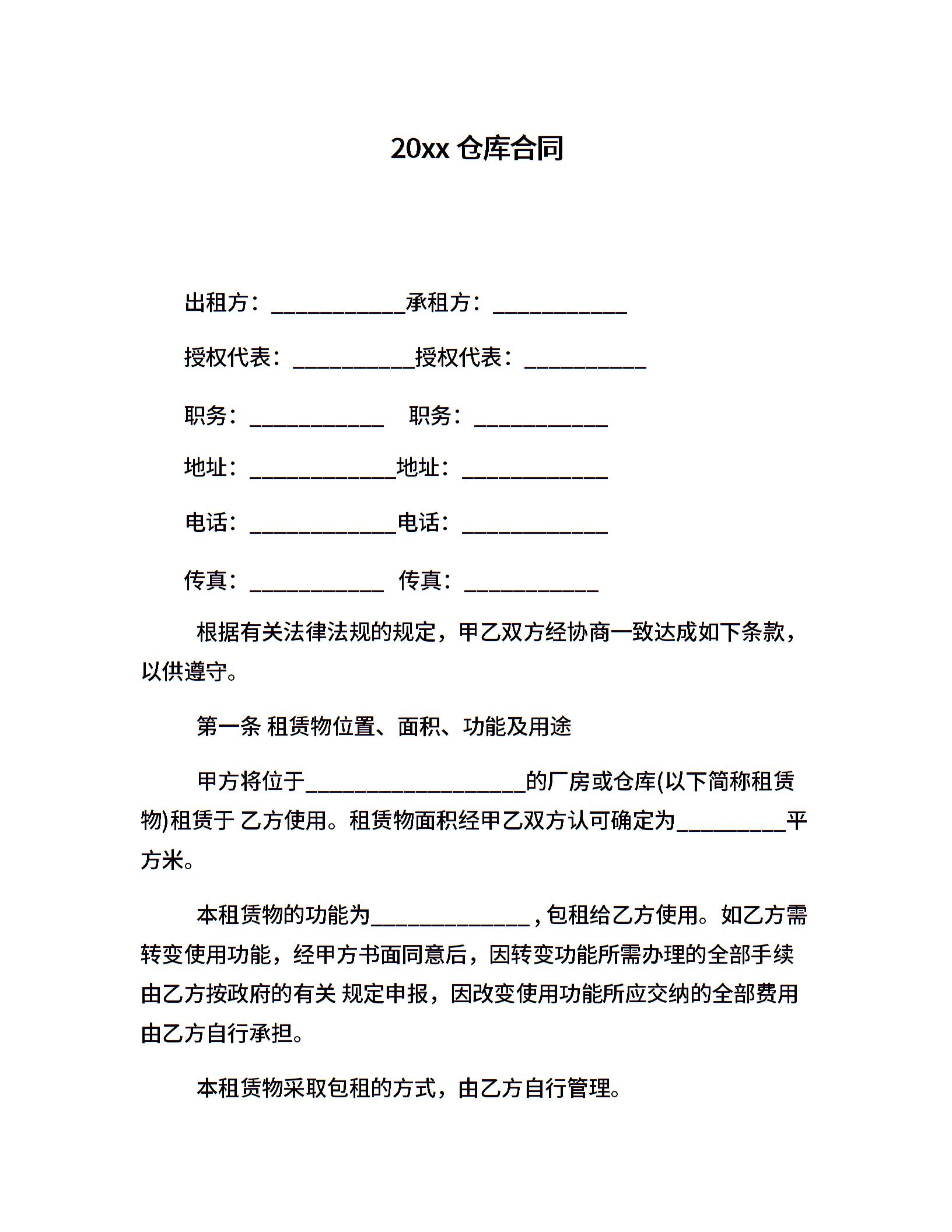 20xx仓库合同