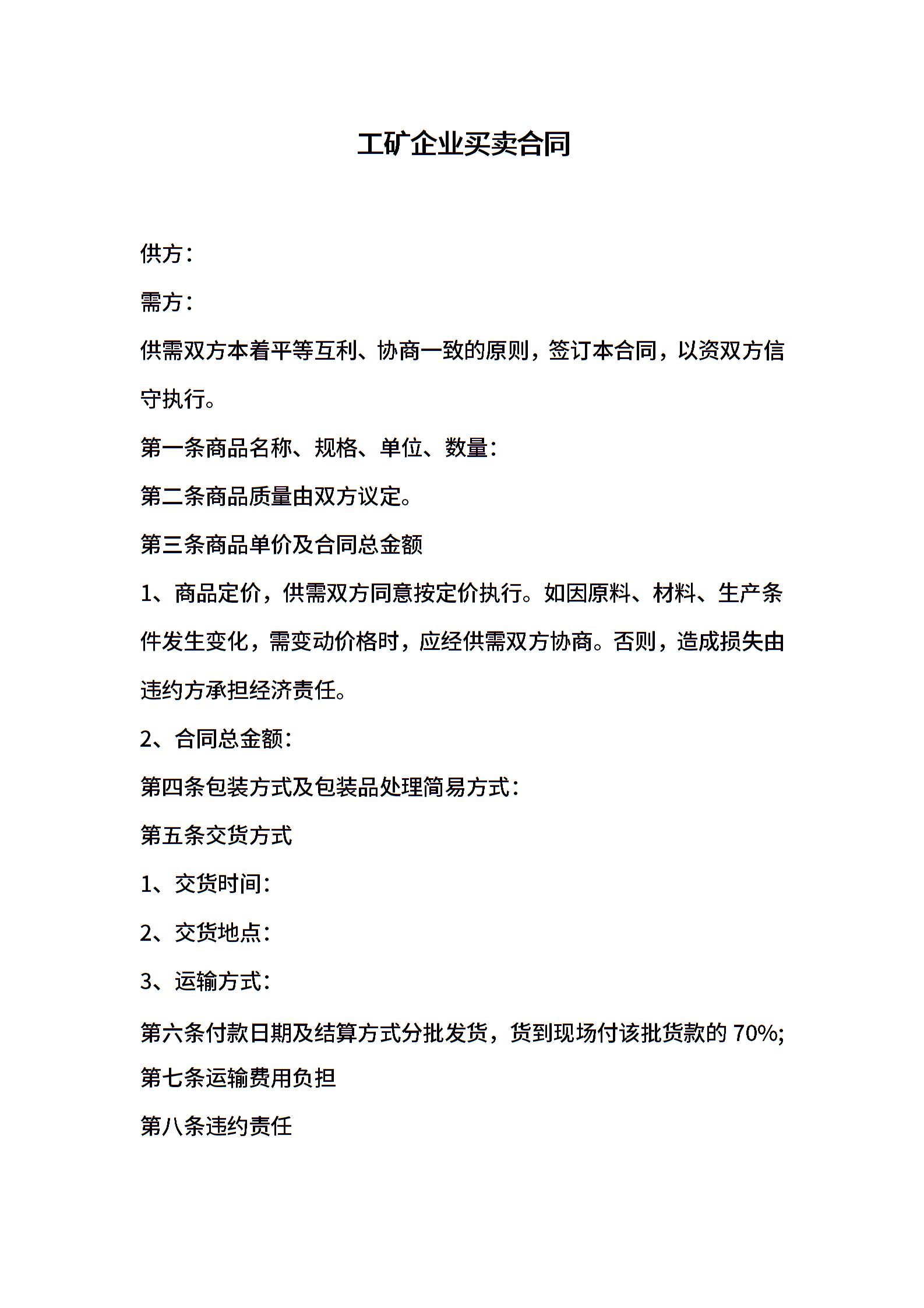 工矿企业买卖合同