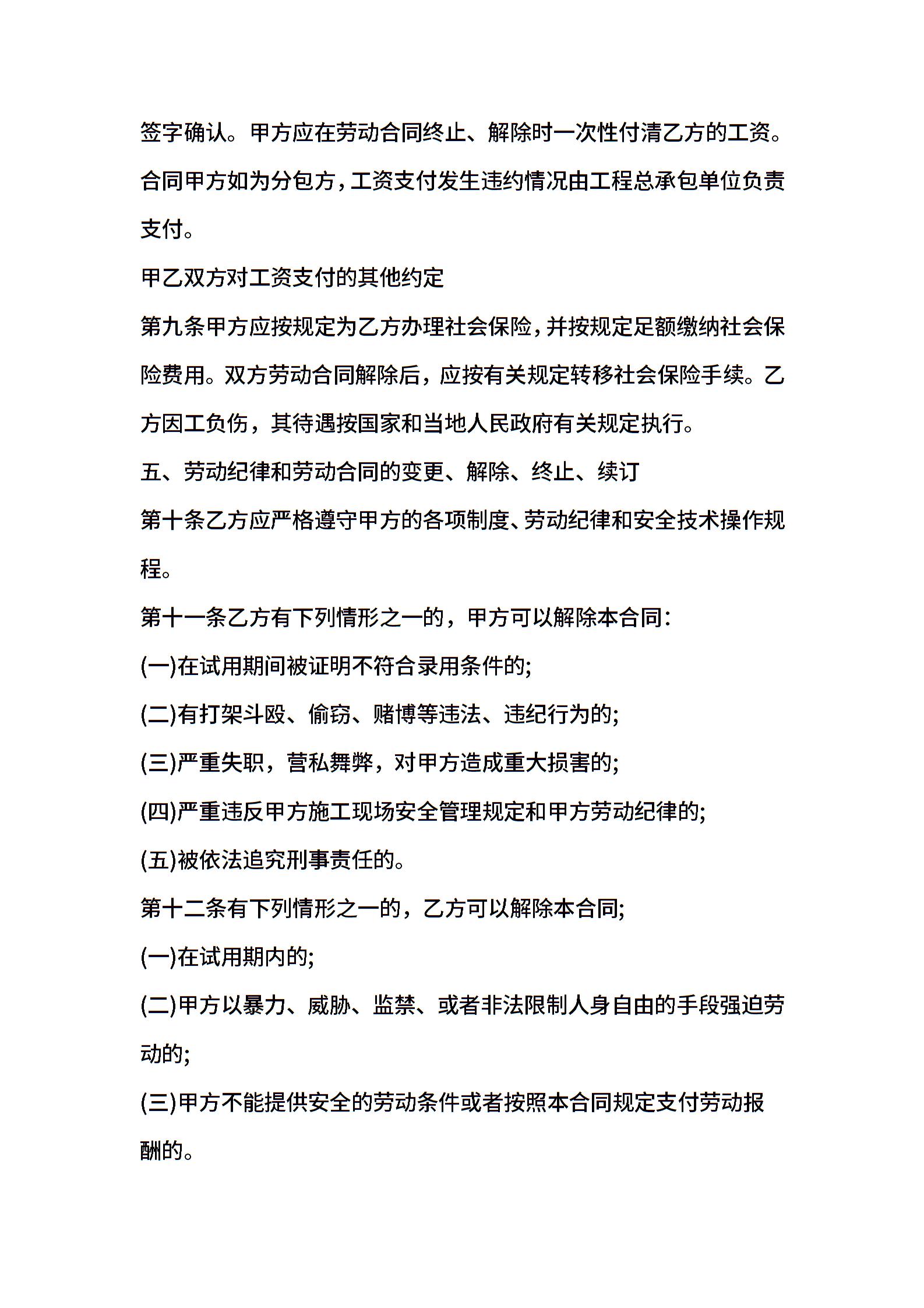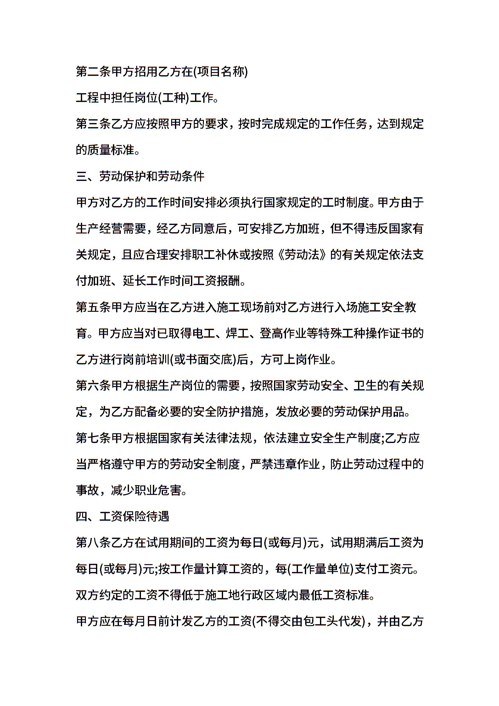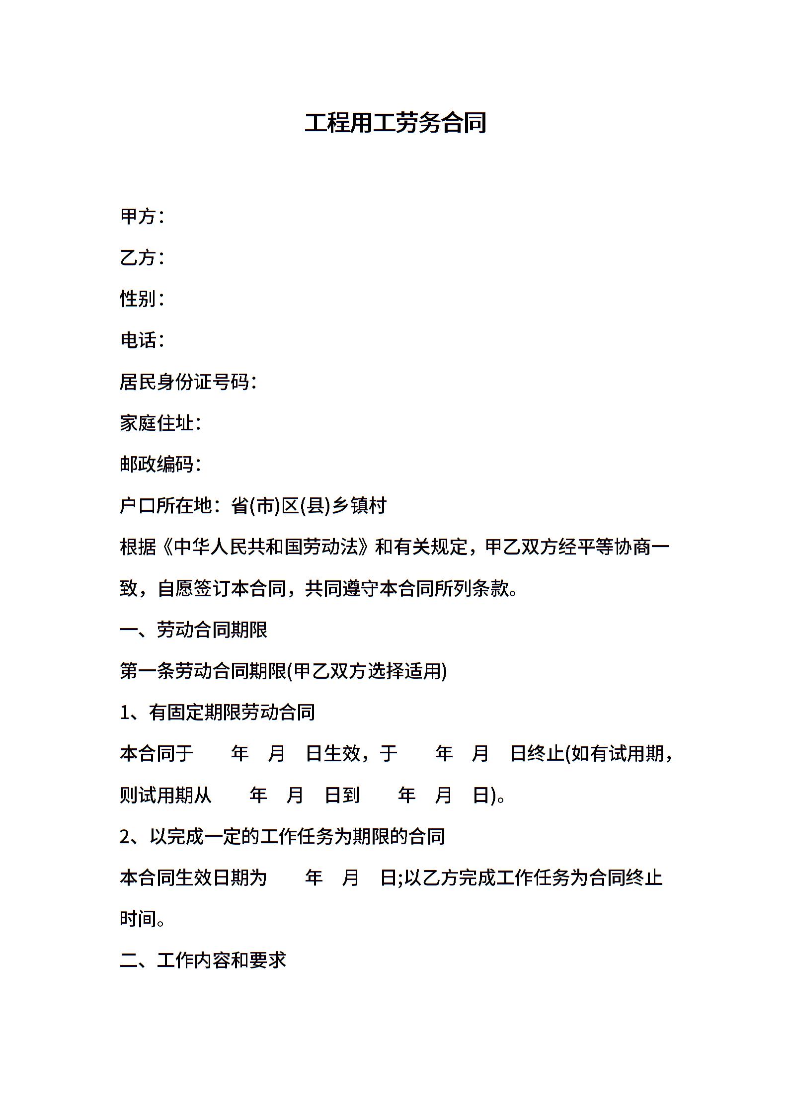 工程用工劳务合同