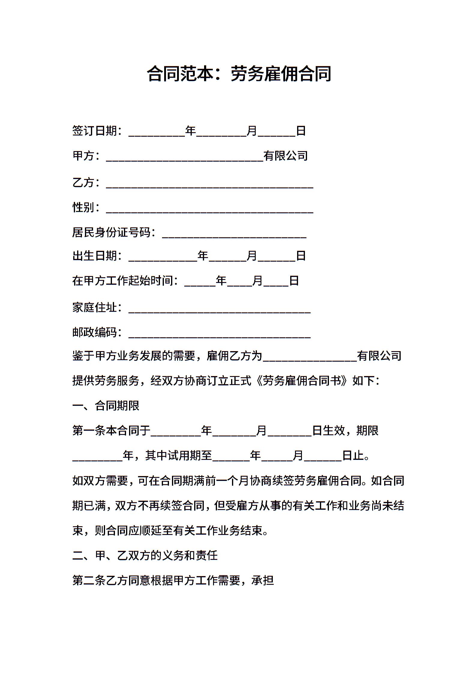 当前位置:量子办公 > 合同模板 > 劳务合同 >