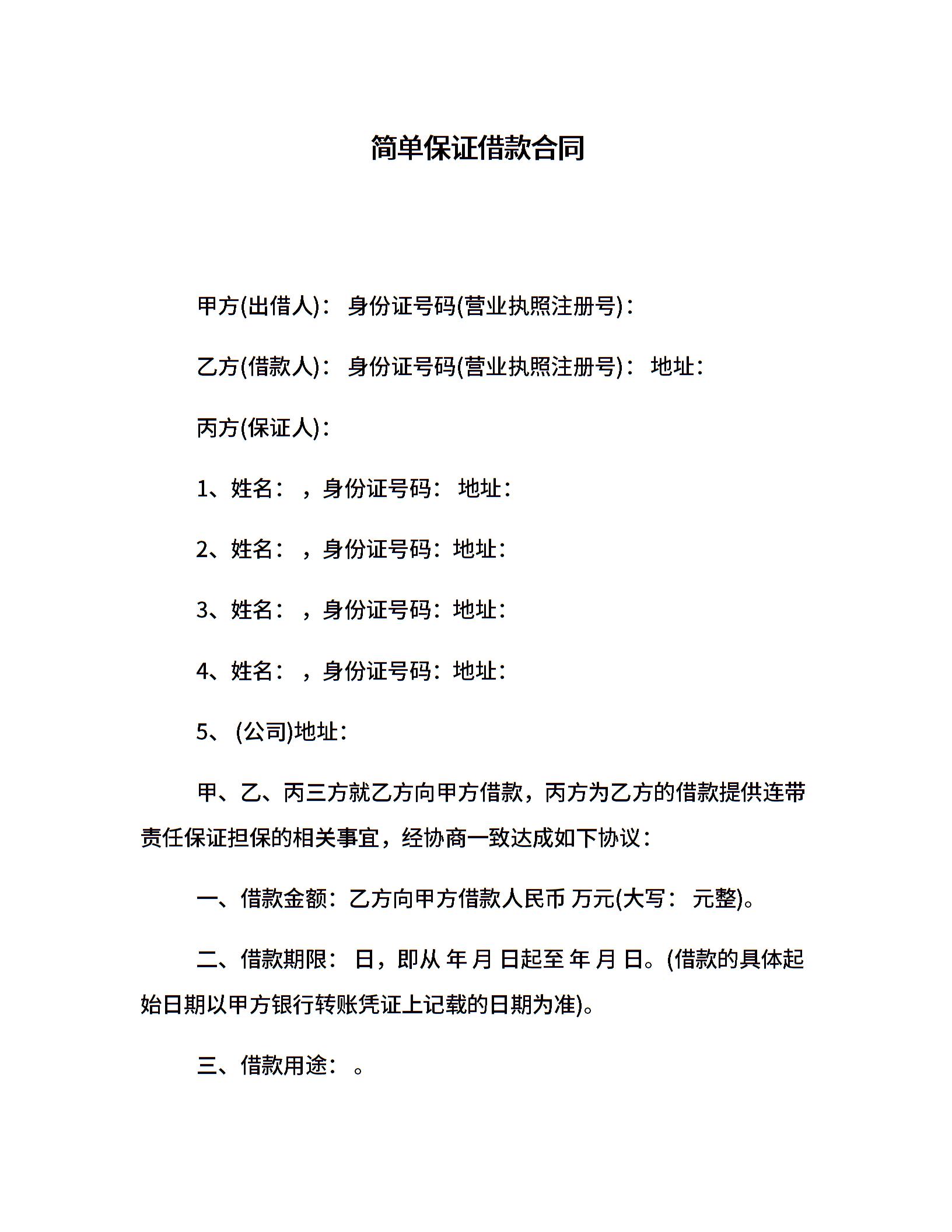 简单保证借款合同
