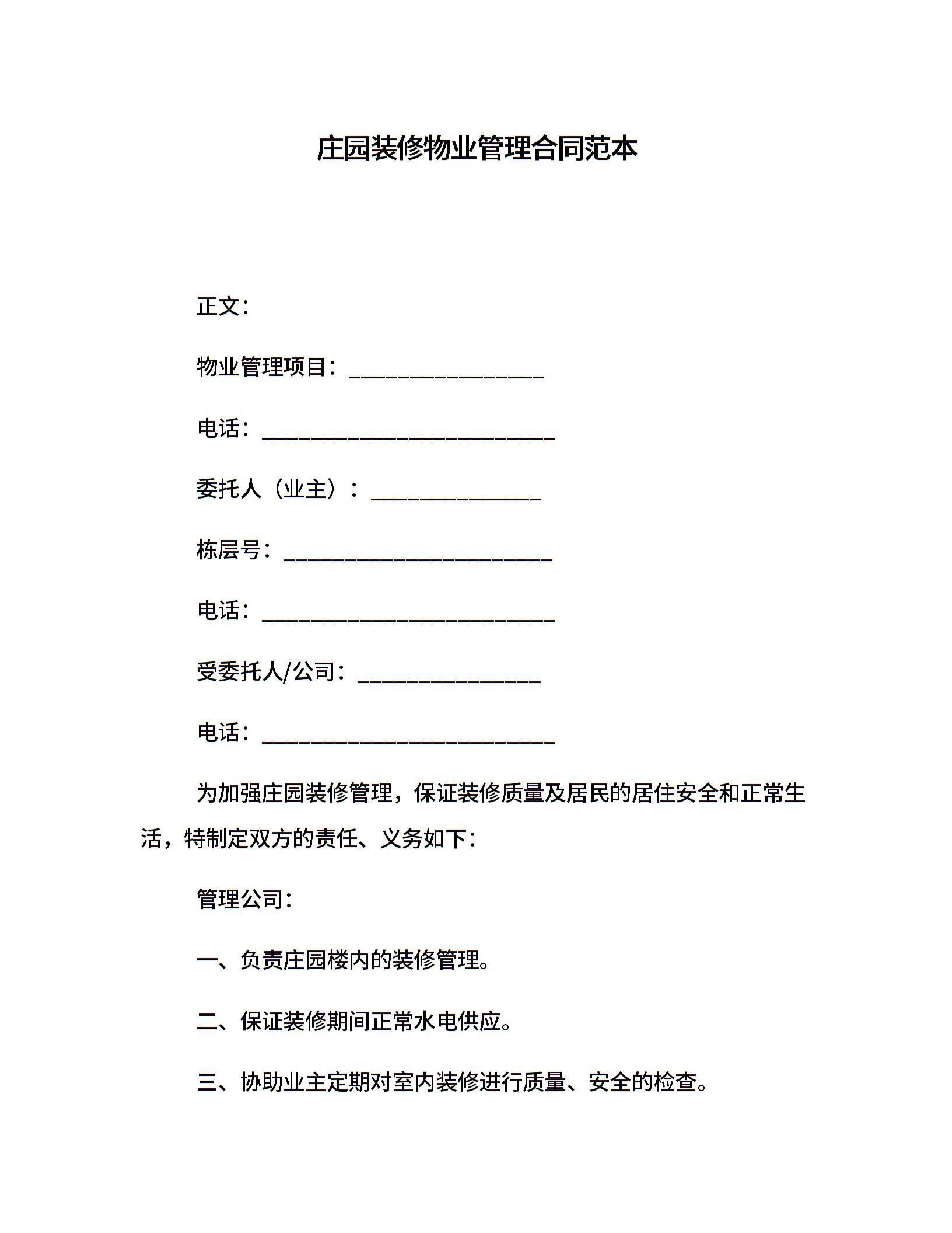 庄园装修物业管理合同范本