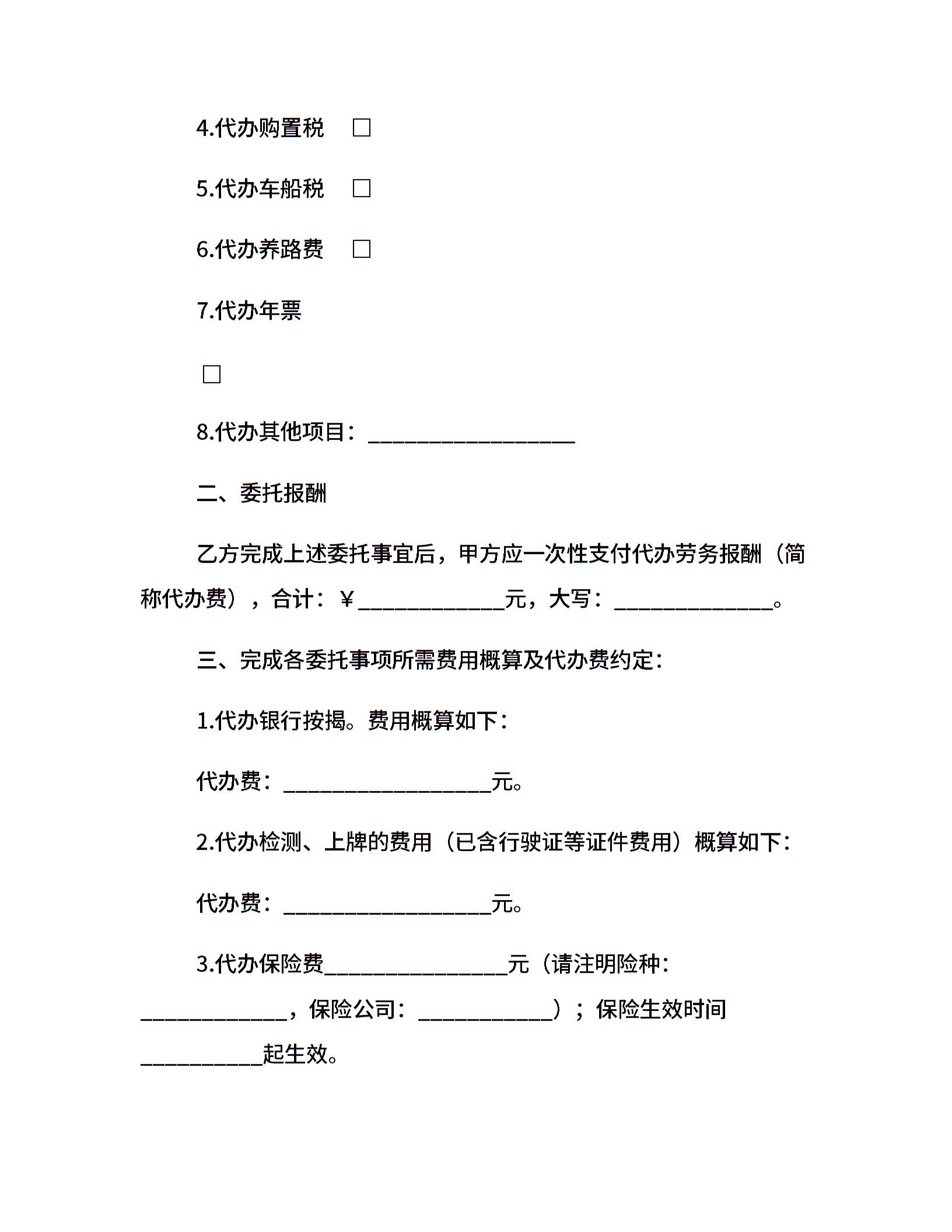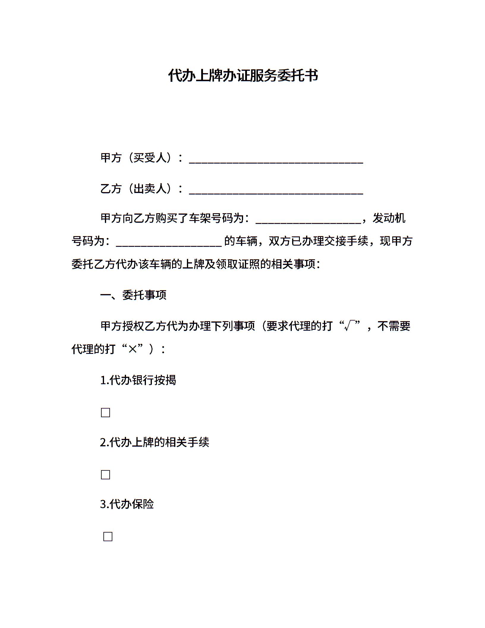 代办上牌办证服务委托书