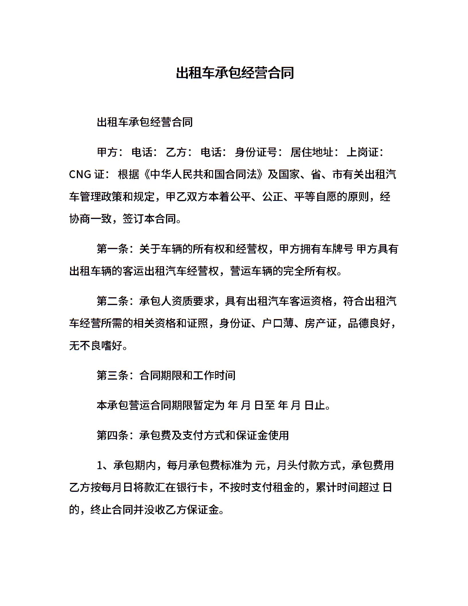 出租车承包经营合同