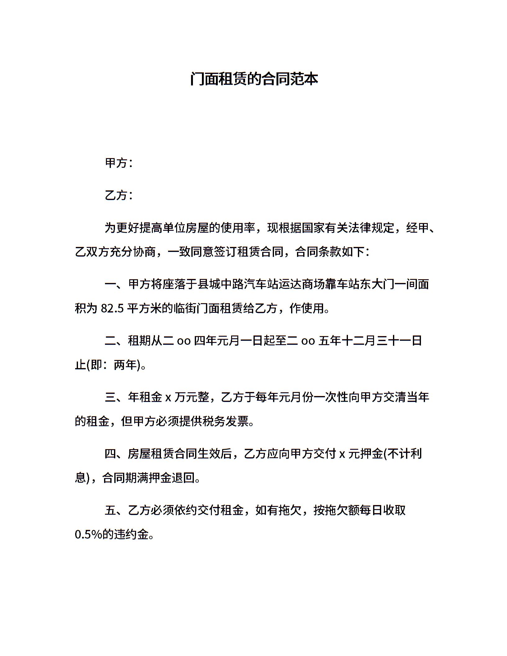 门面租赁的合同范本