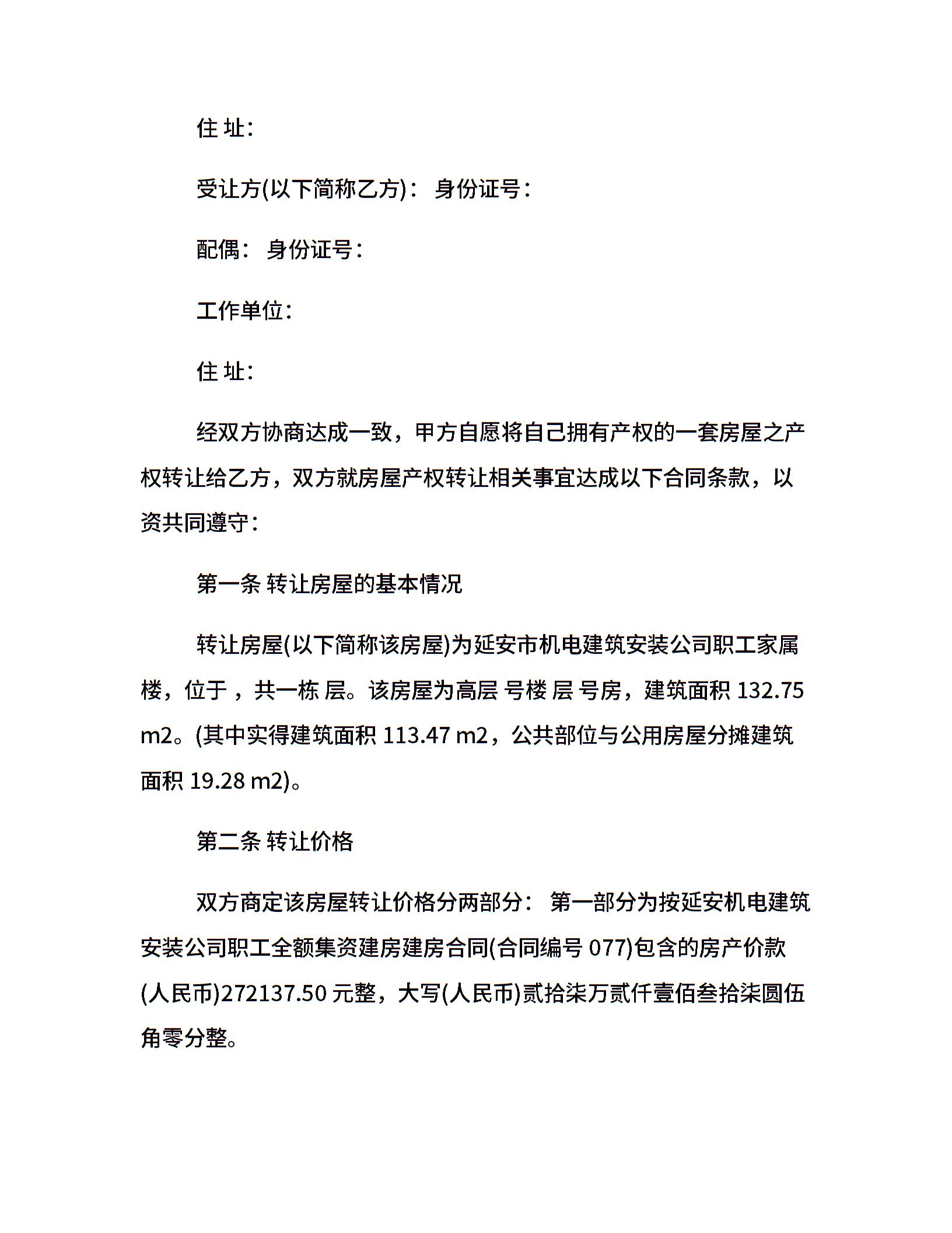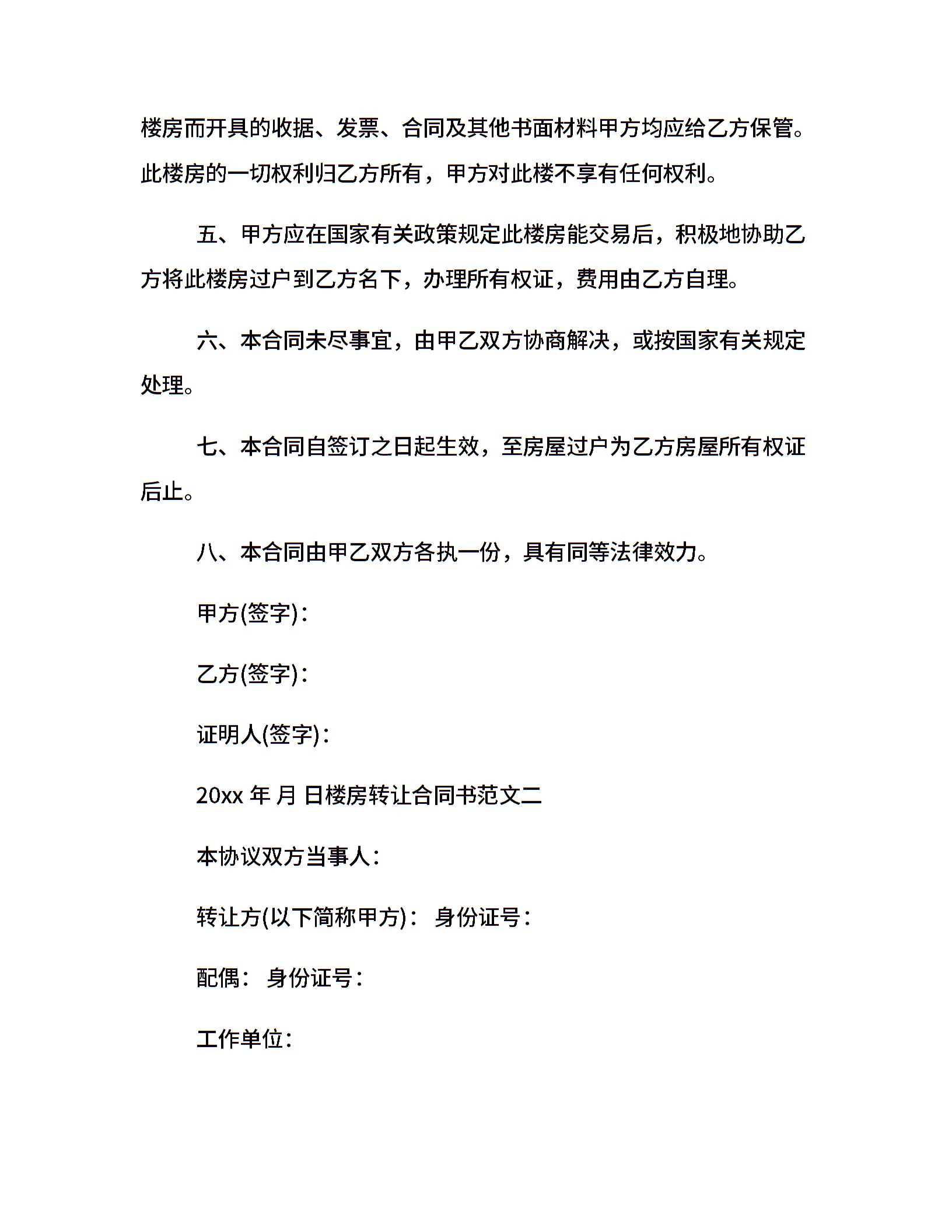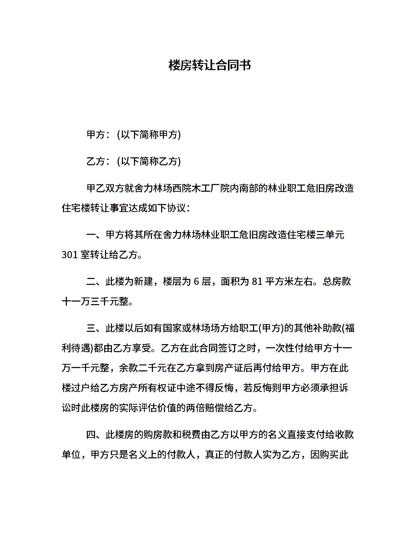 楼房转让合同书