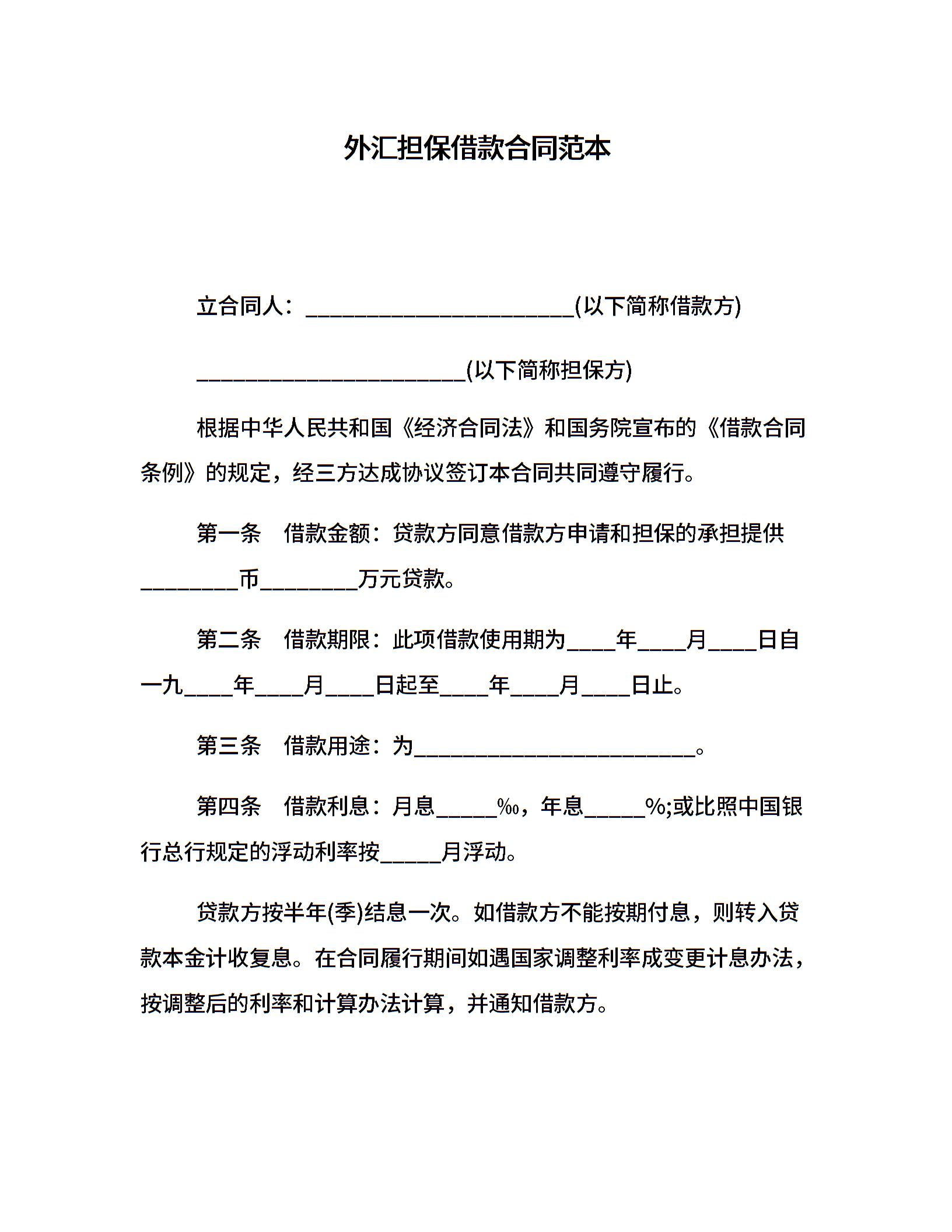 外汇担保借款合同范本