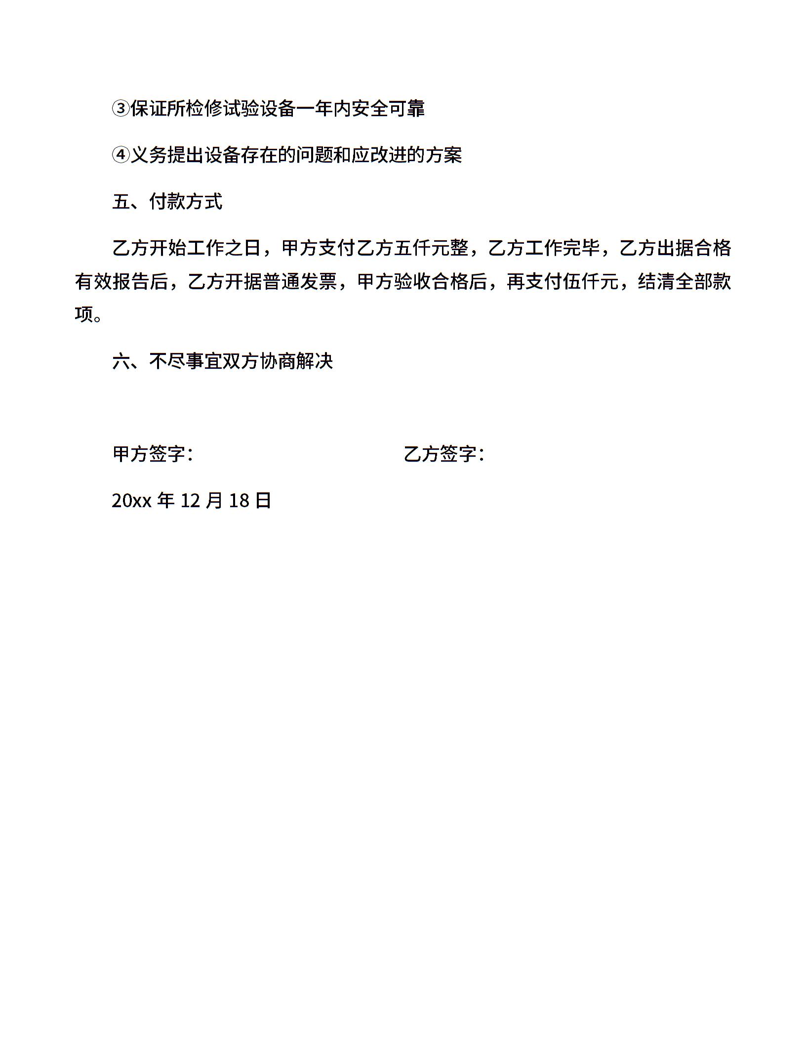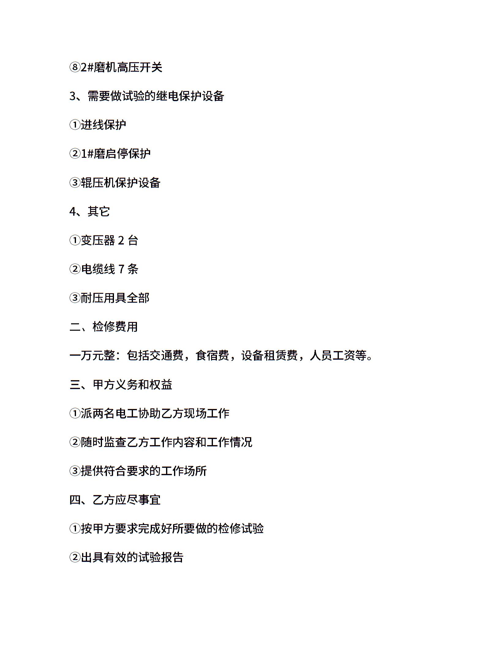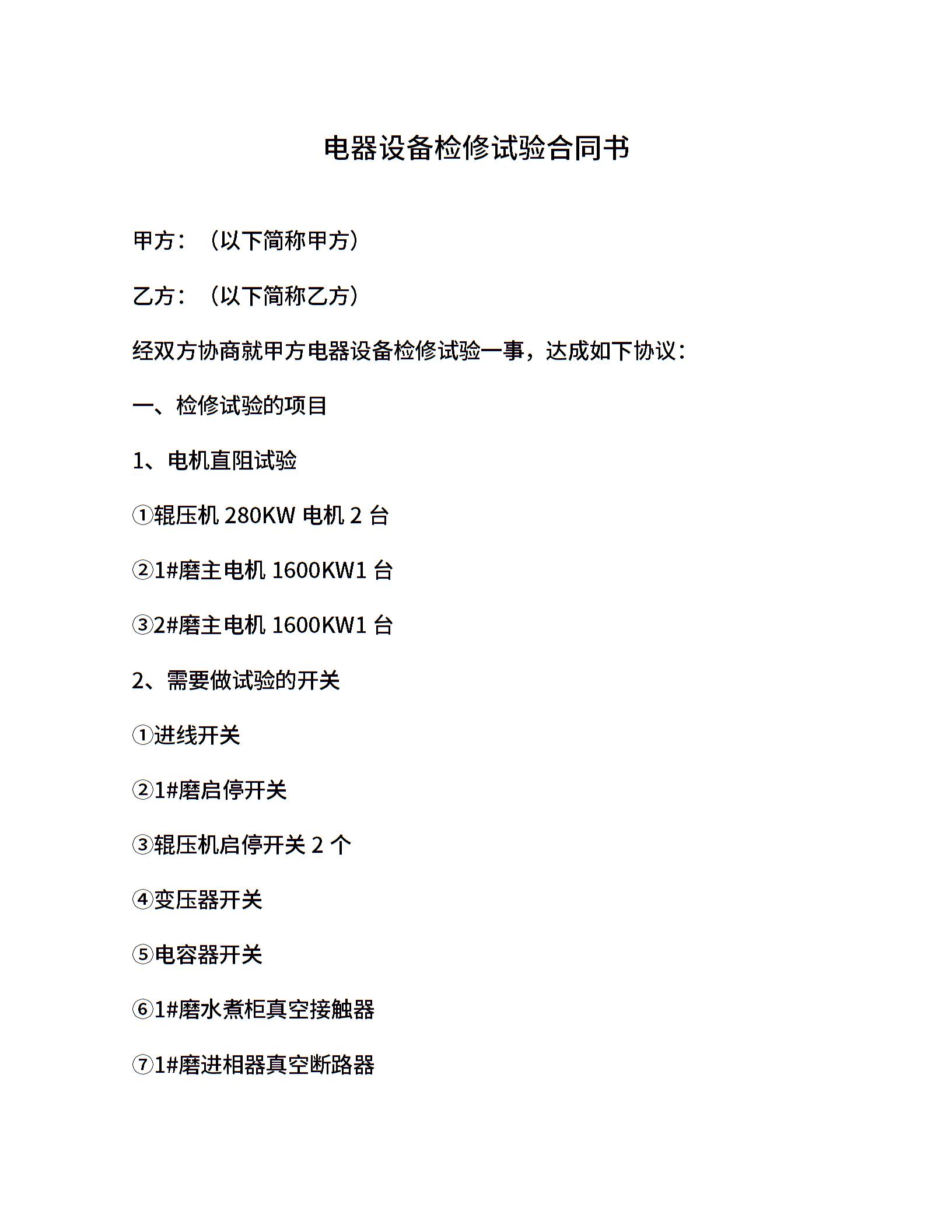 电器设备检修试验合同书