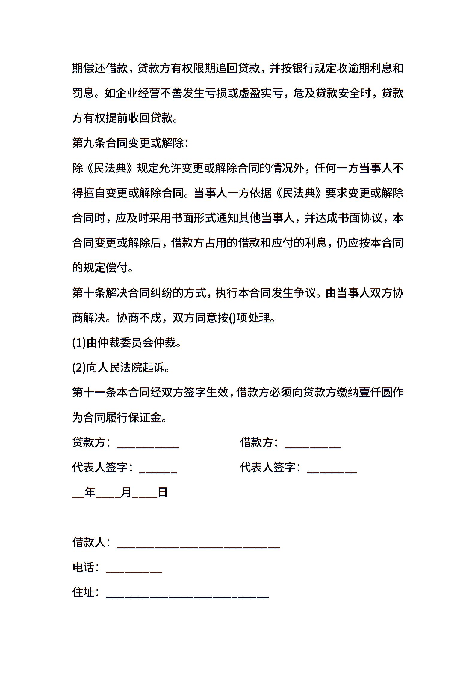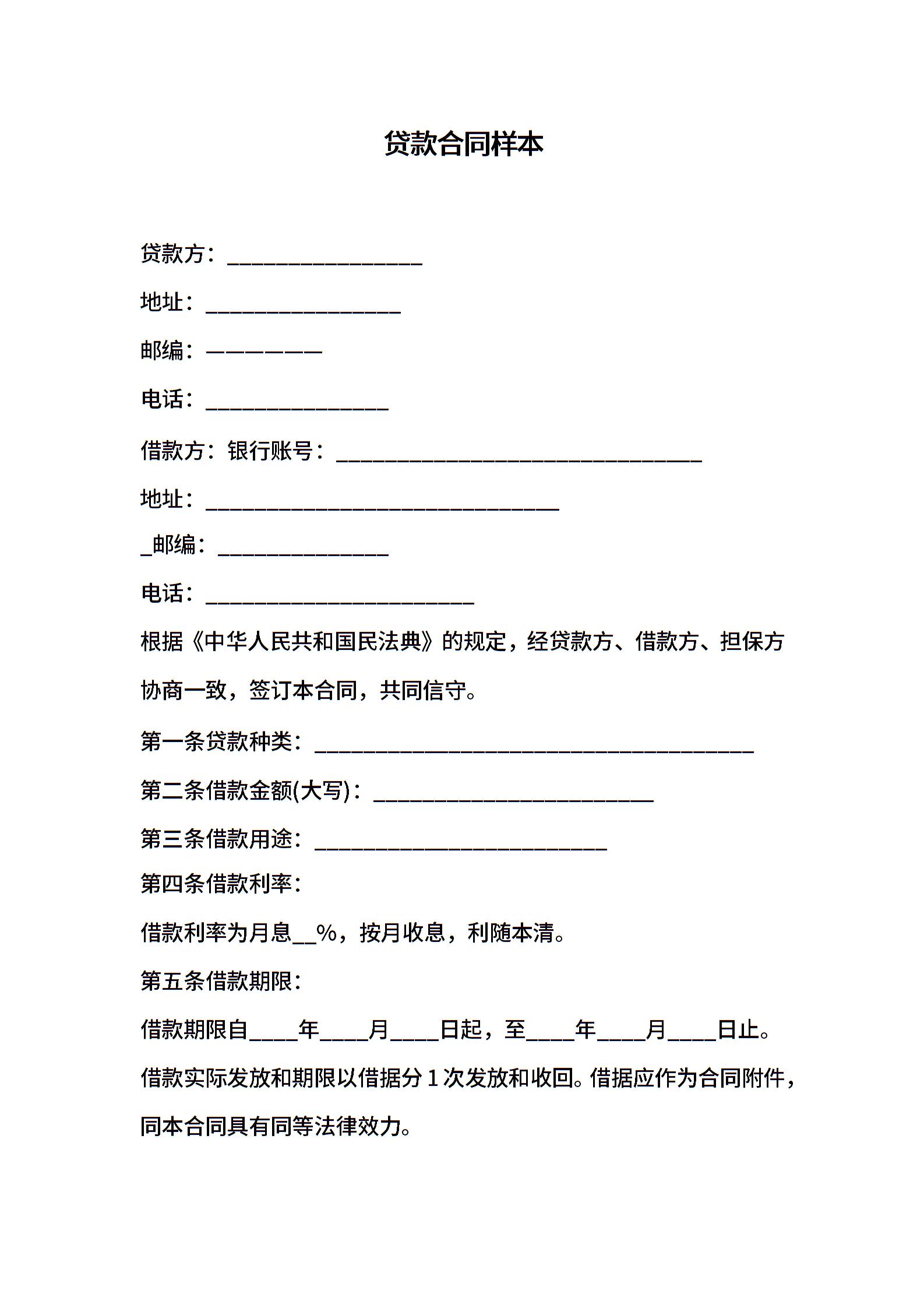 贷款合同样本