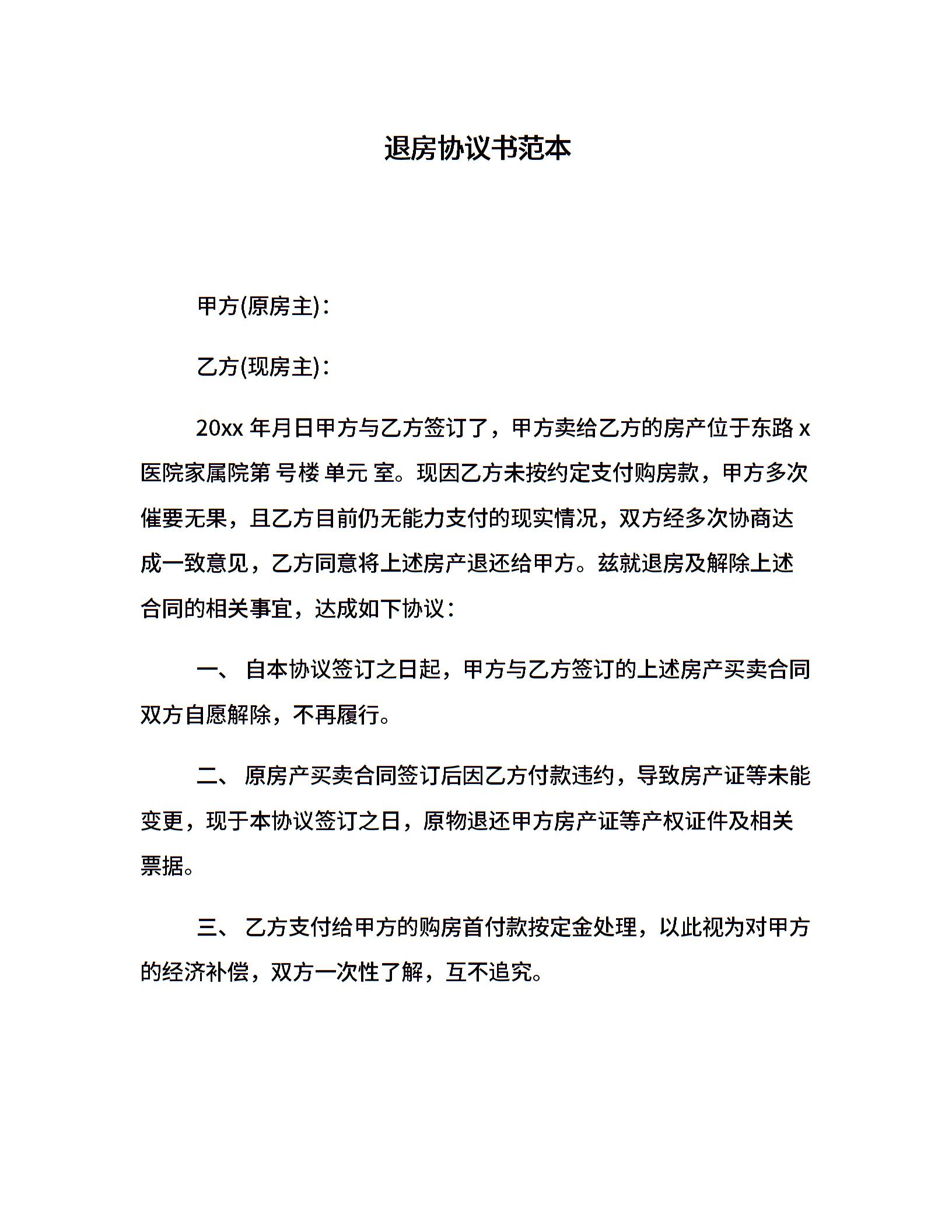 退房协议书范本