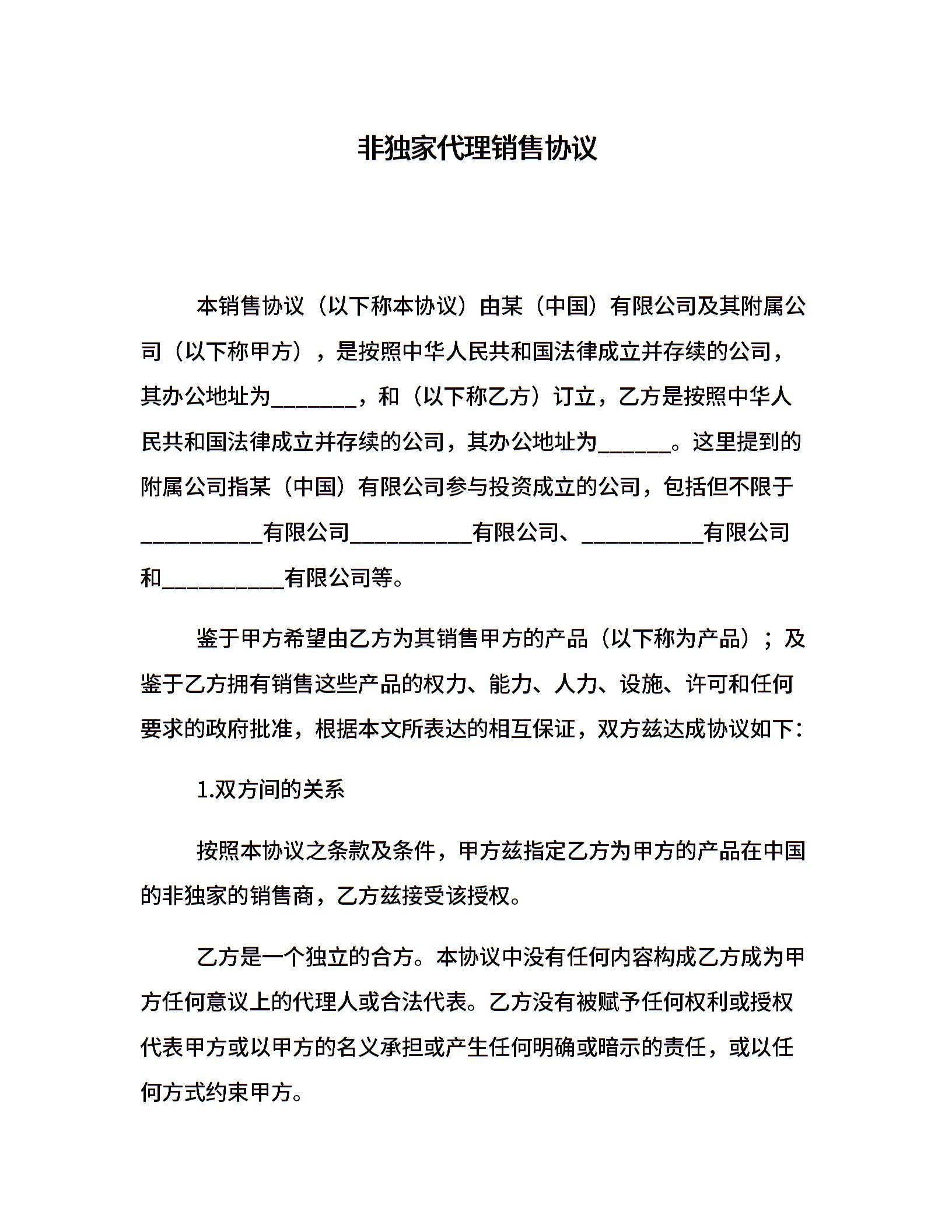 非独家代理销售协议