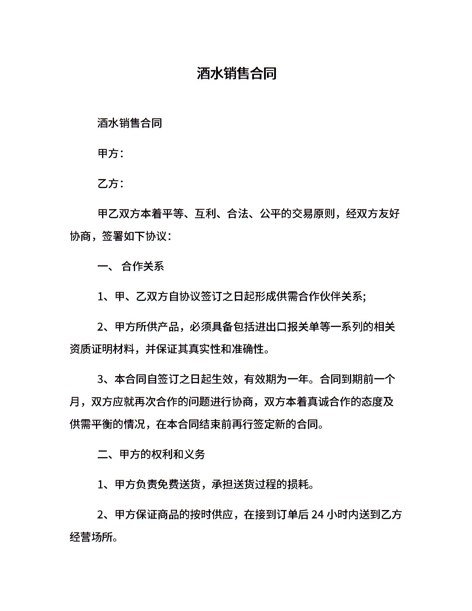 酒水销售合同