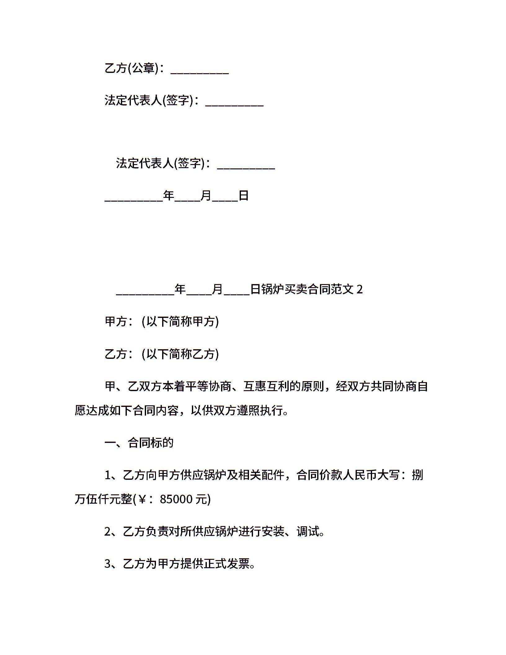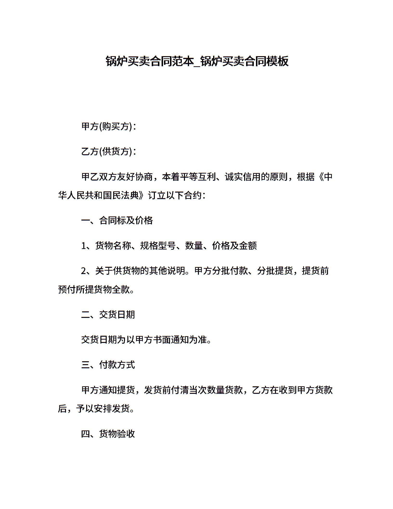 锅炉买卖合同范本_锅炉买卖合同模板