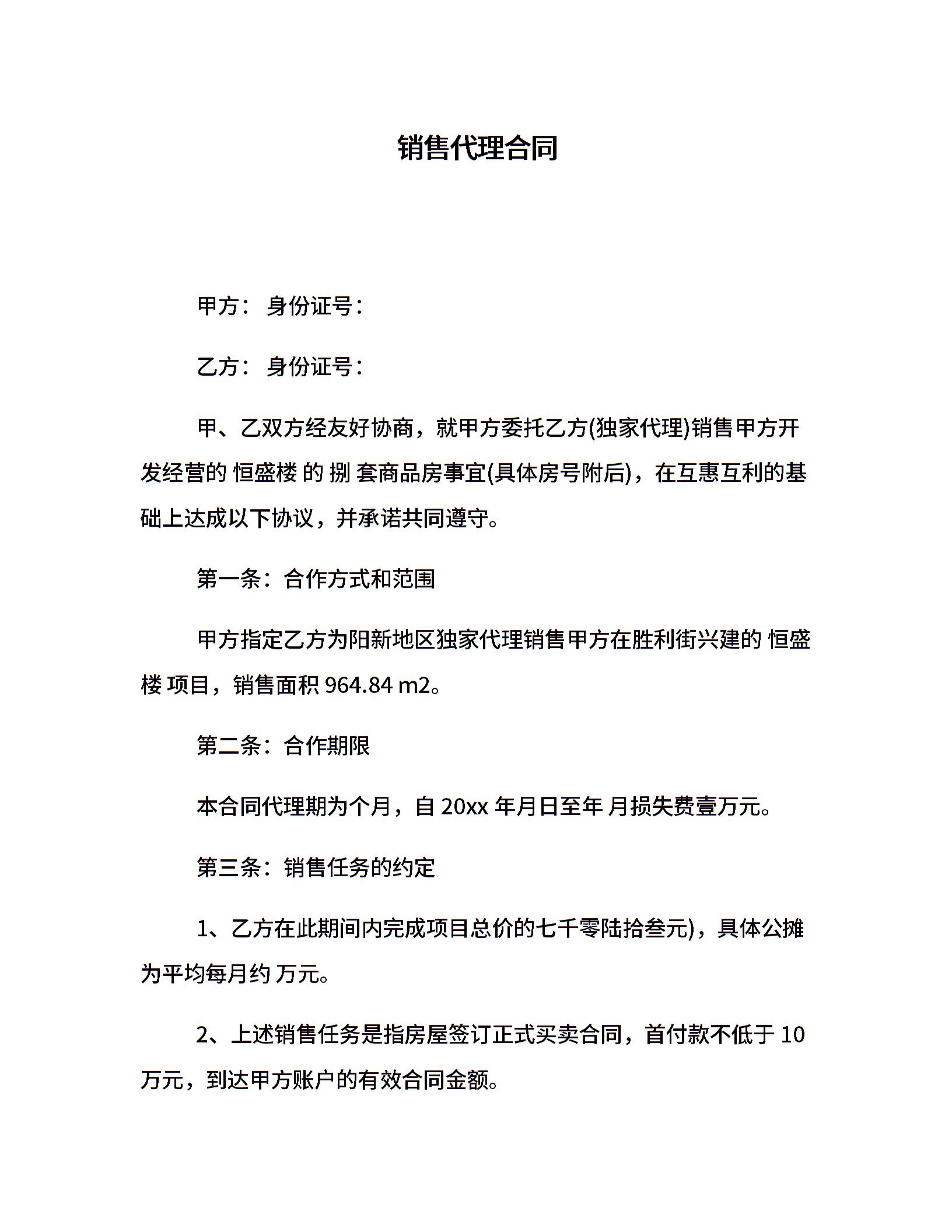 销售代理合同