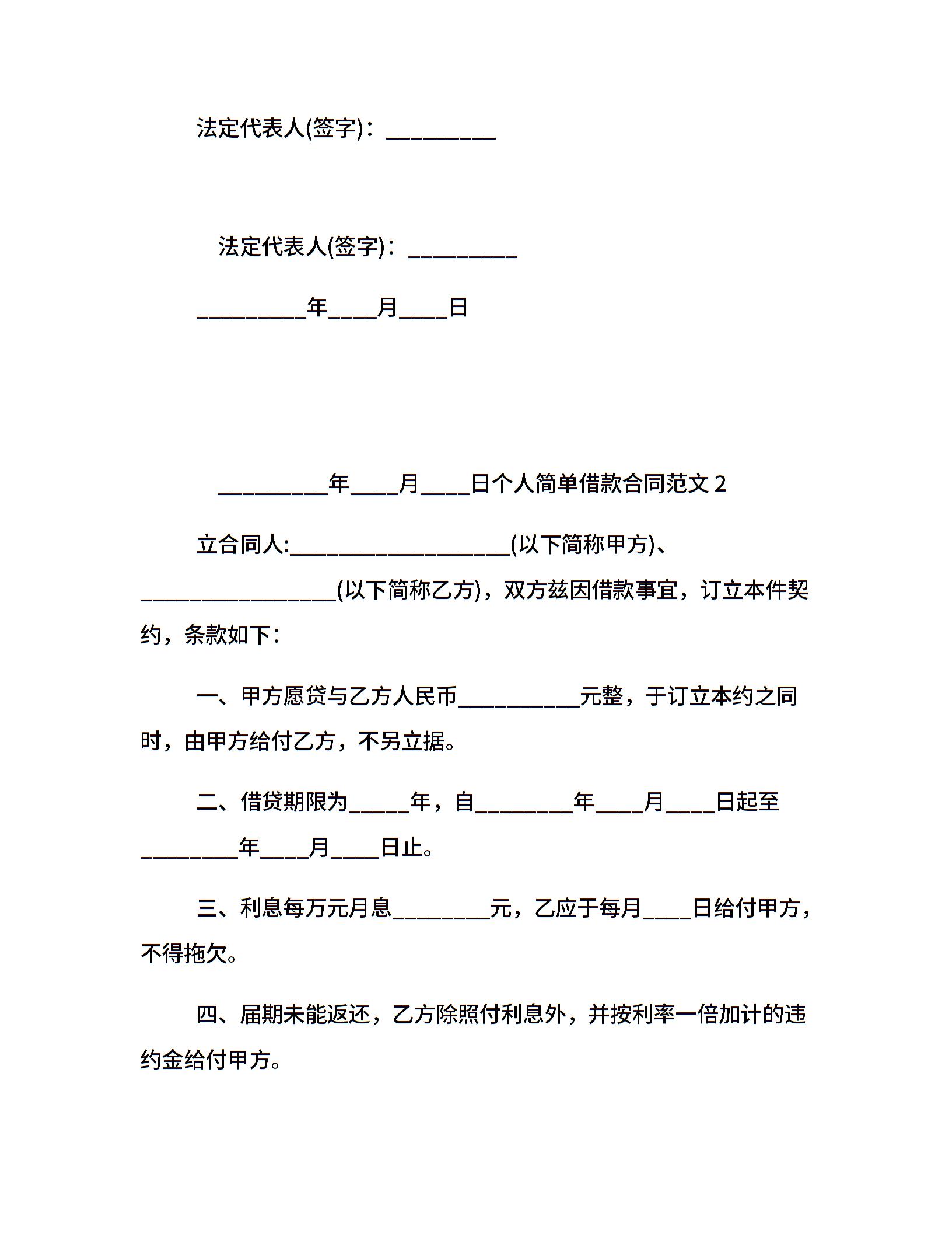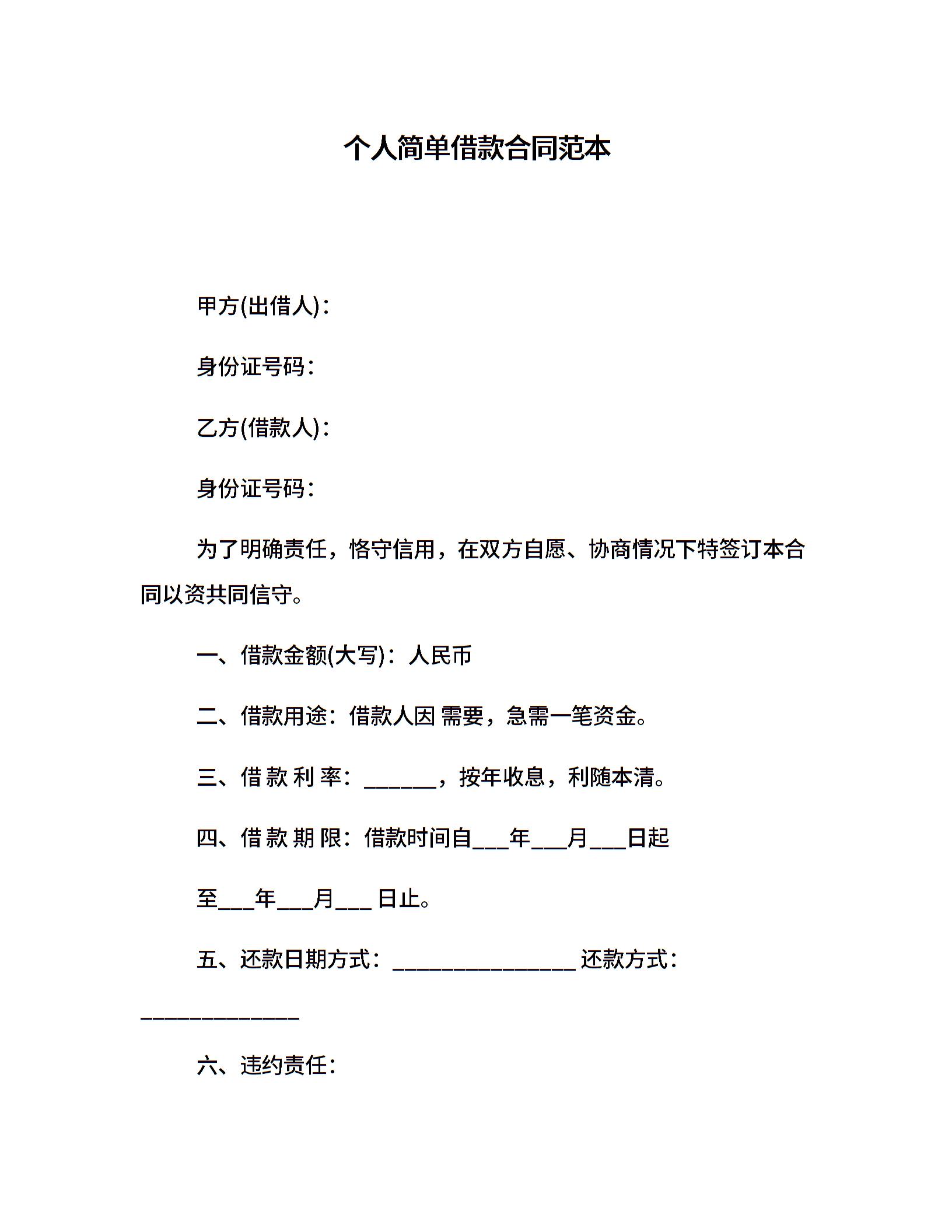 个人简单借款合同范本