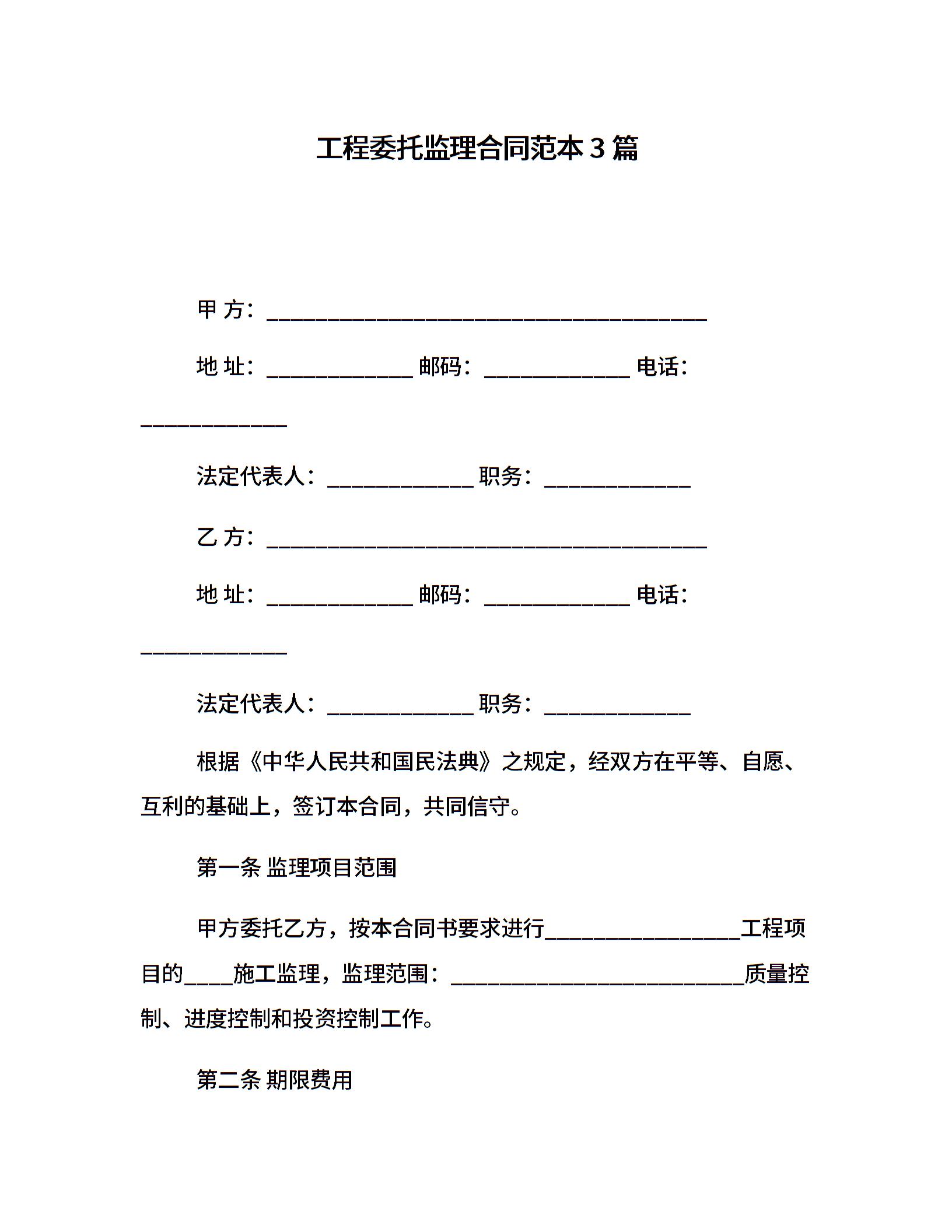 工程委托监理合同范本3篇