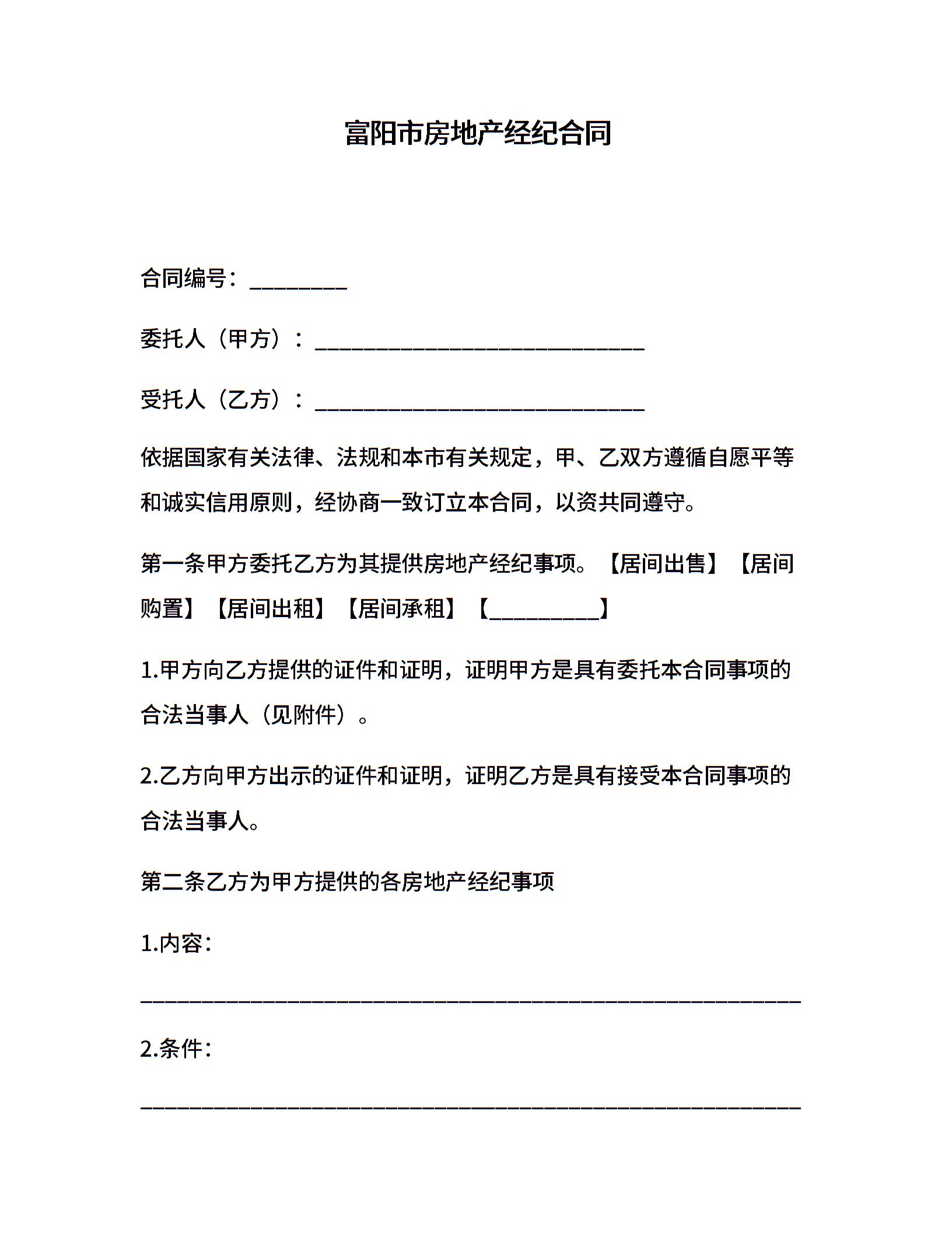 富阳市房地产经纪合同
