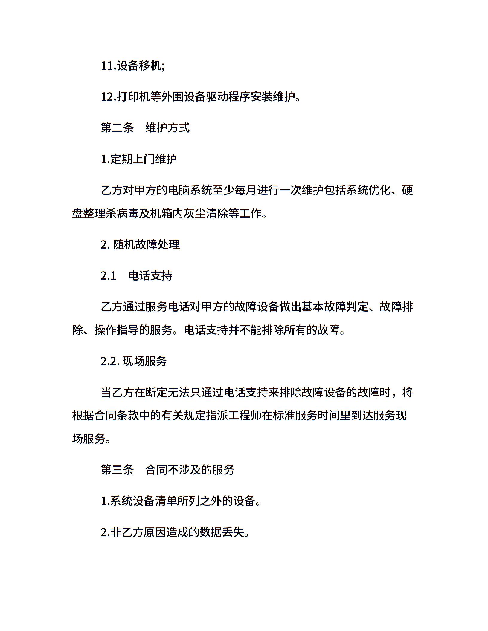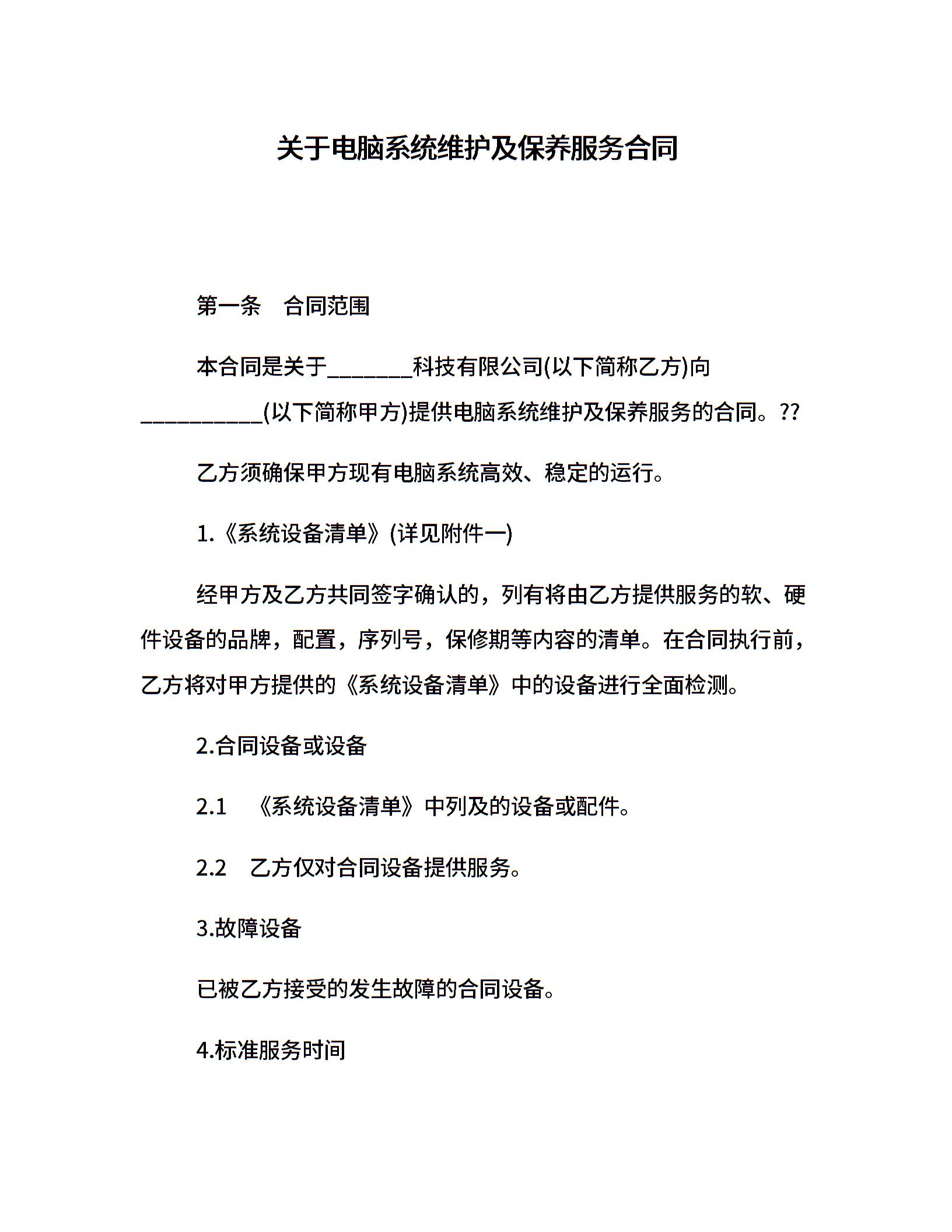 关于电脑系统维护及保养服务合同