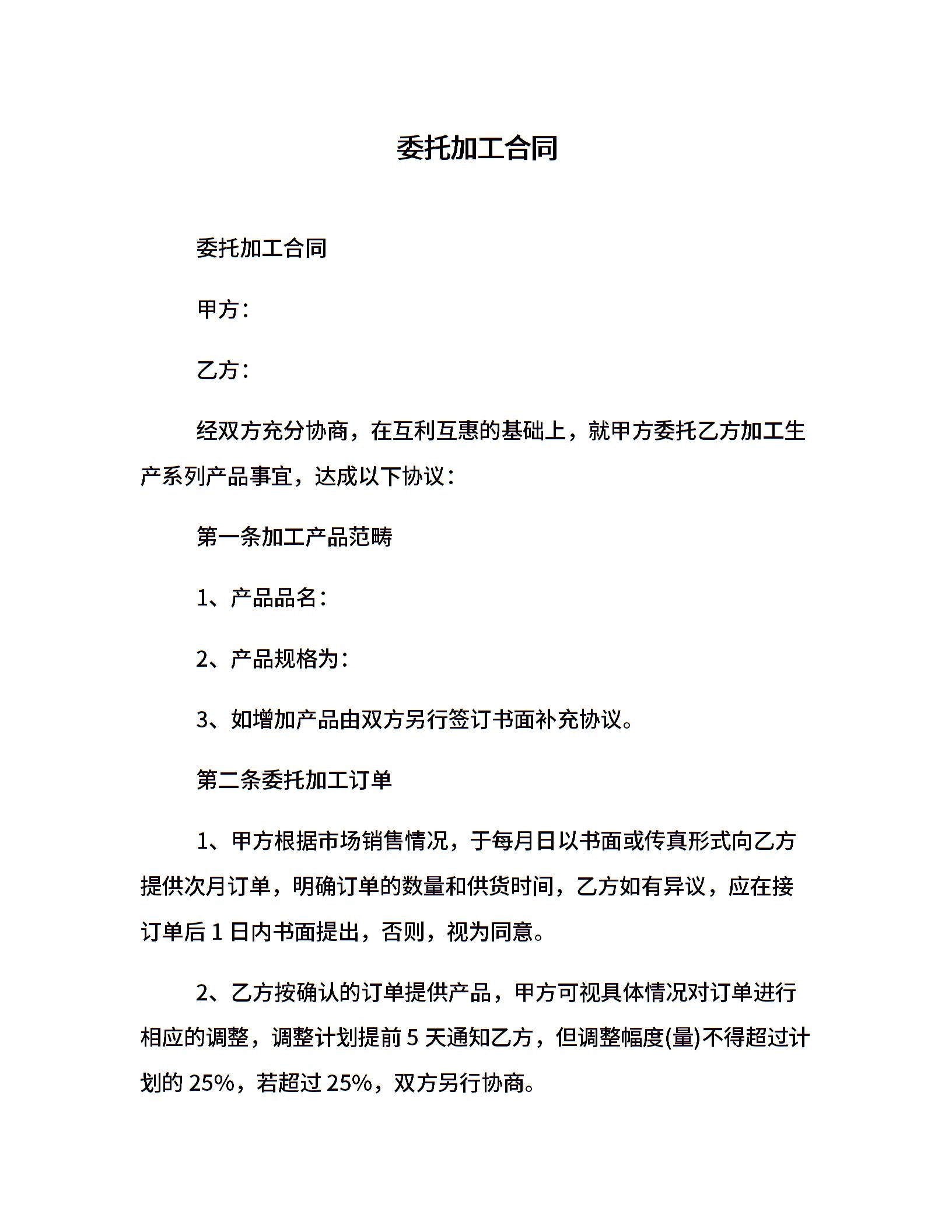 当前位置:量子办公 > 合同模板 > 加工合同 >