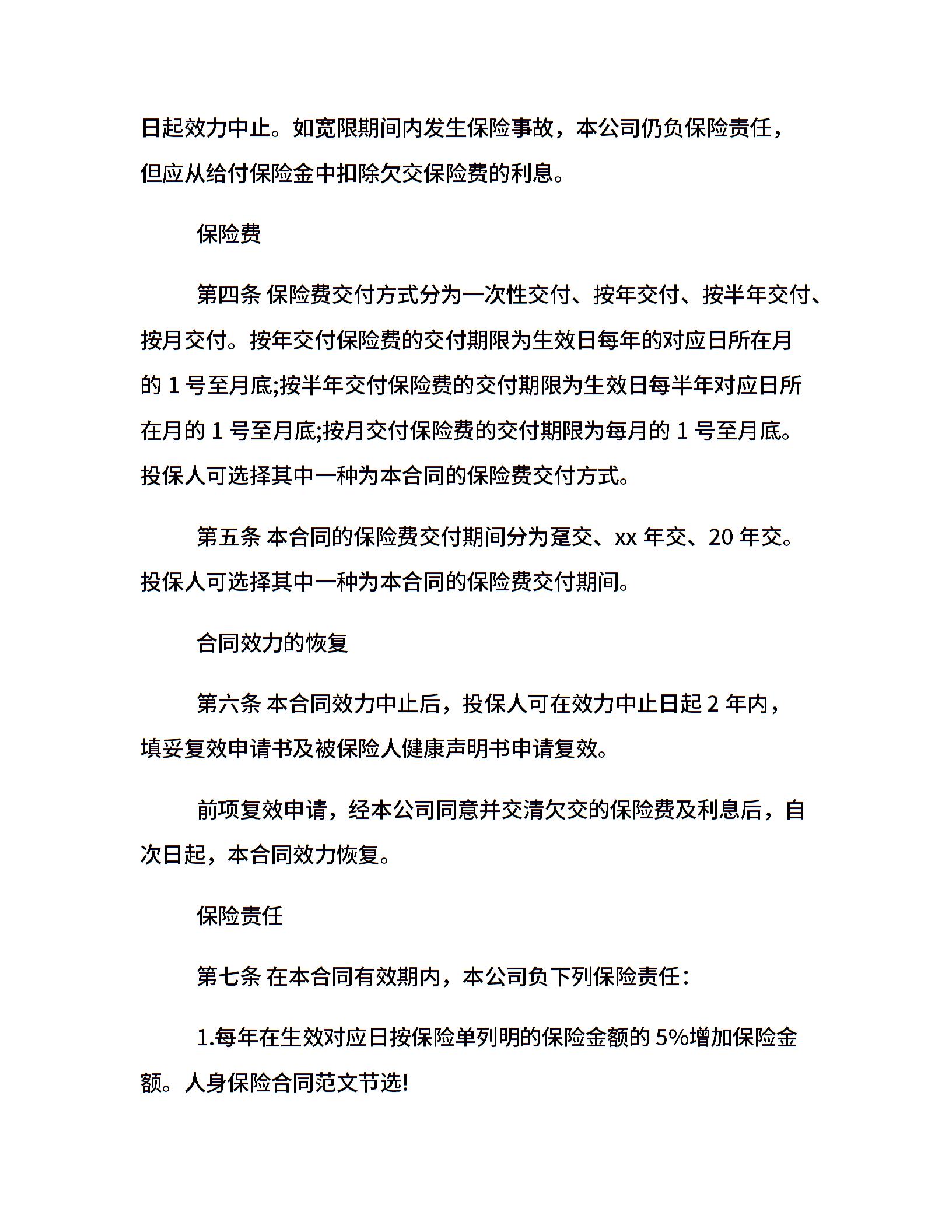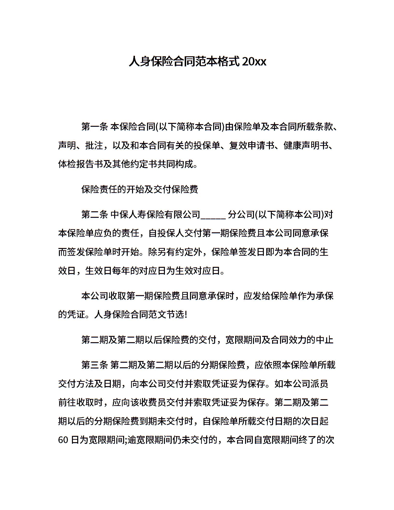 人身保险合同范本格式20xx