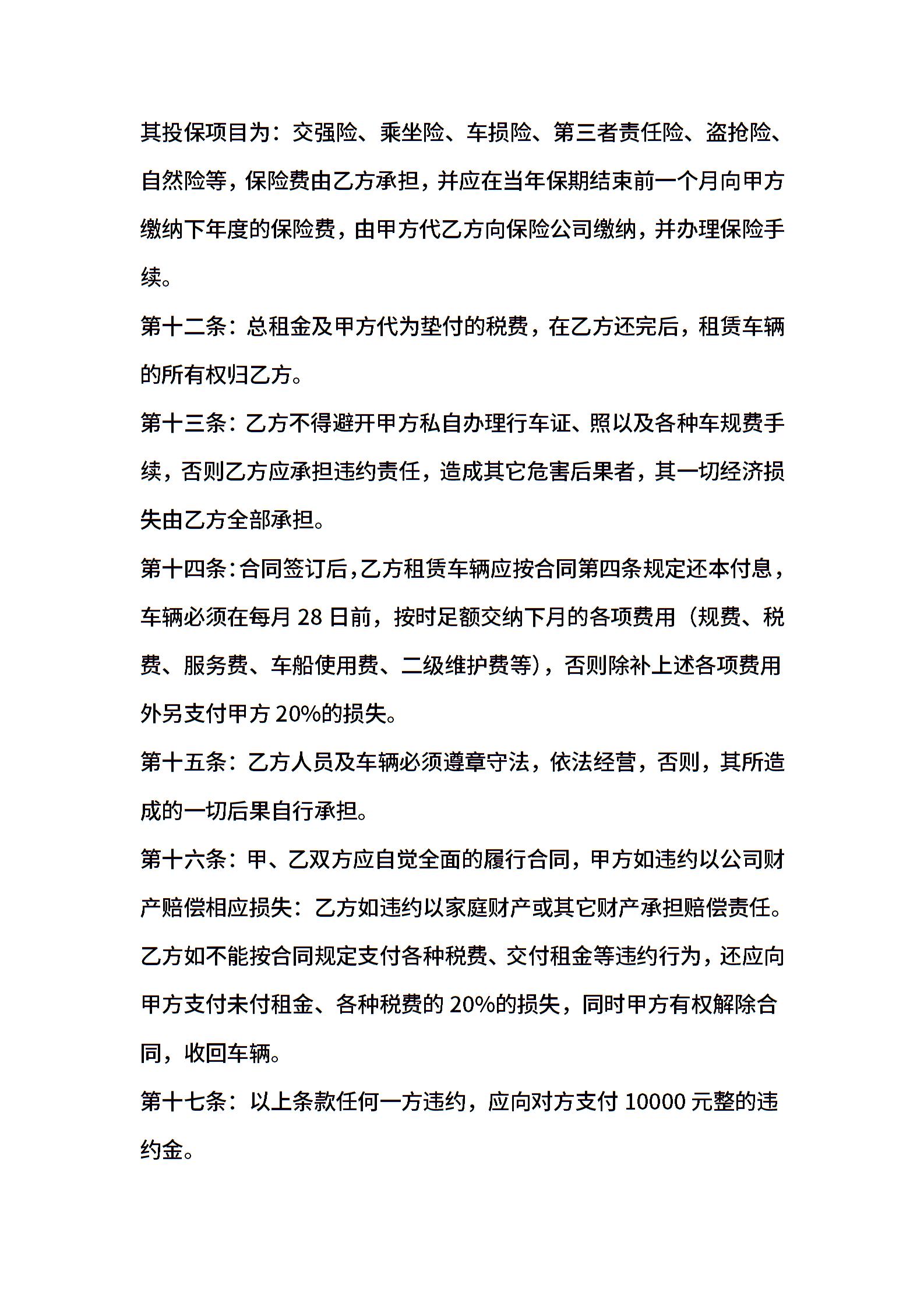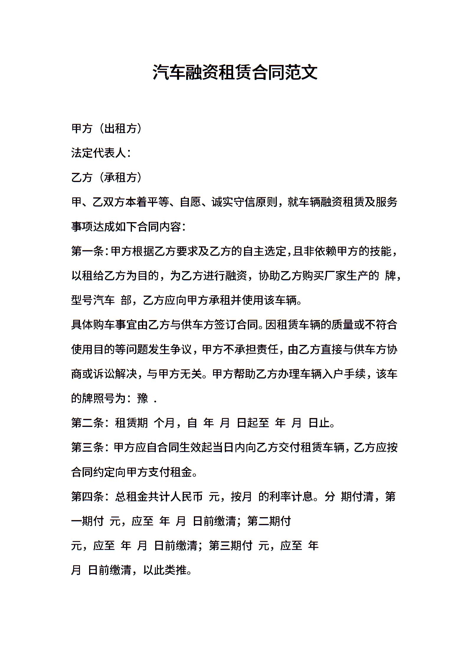 汽车融资租赁合同范文
