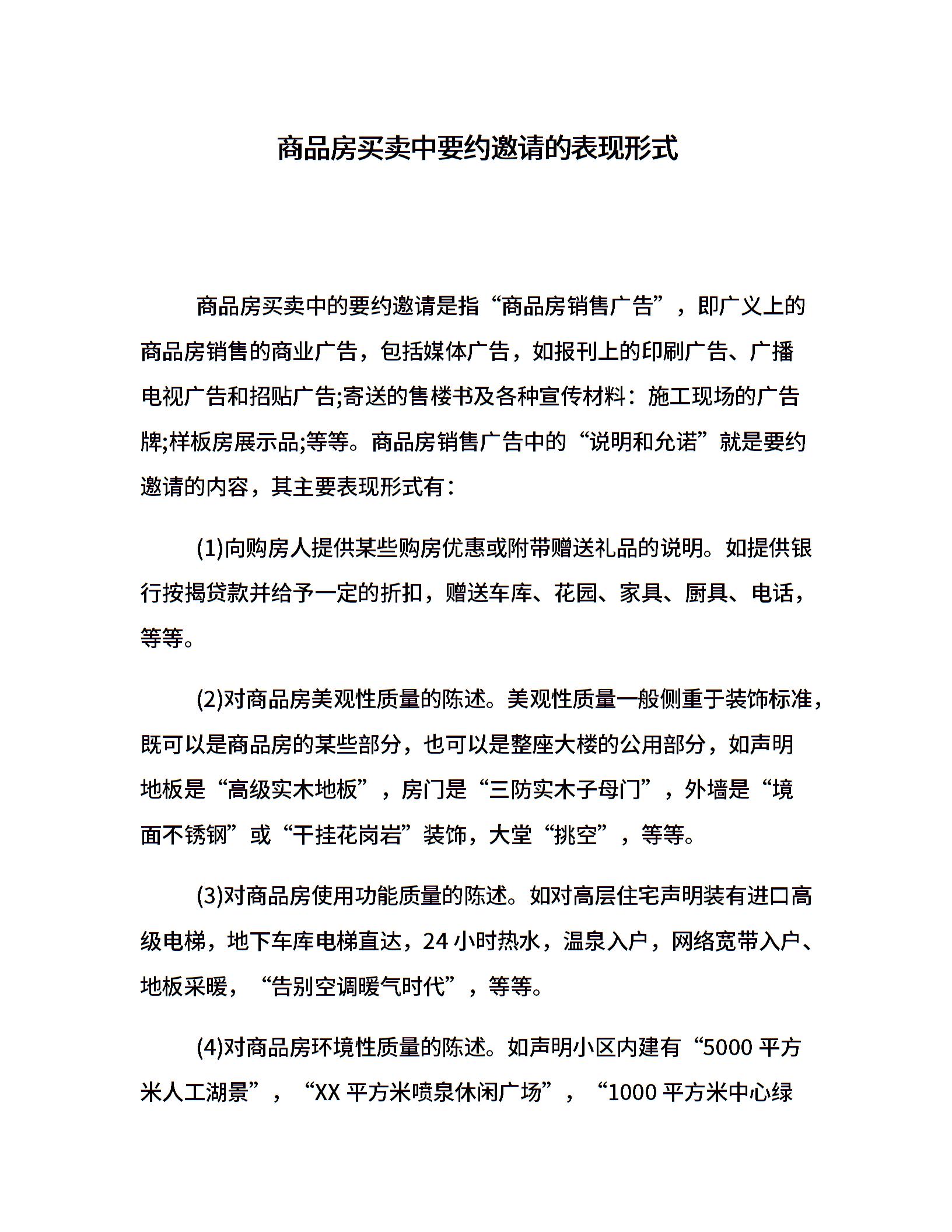 商品房买卖中要约邀请的表现形式